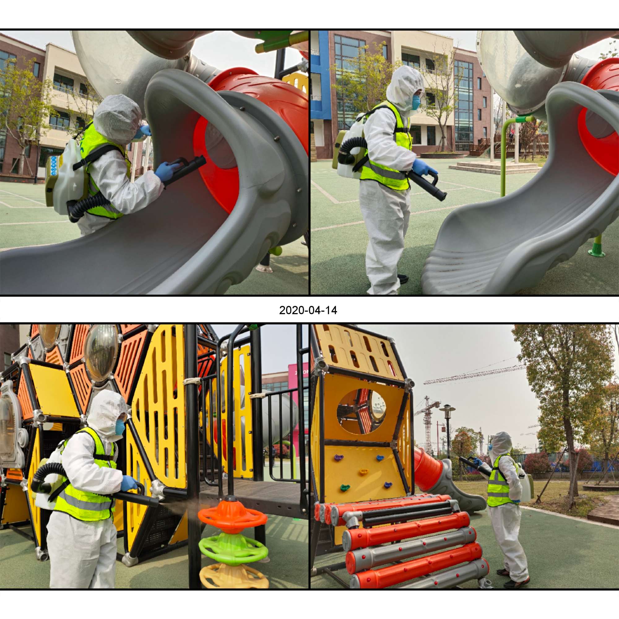 室外的大型游戏是小朋友户外活动经常玩的地方,更加要严格进行消杀工作,里里外外都不放过。