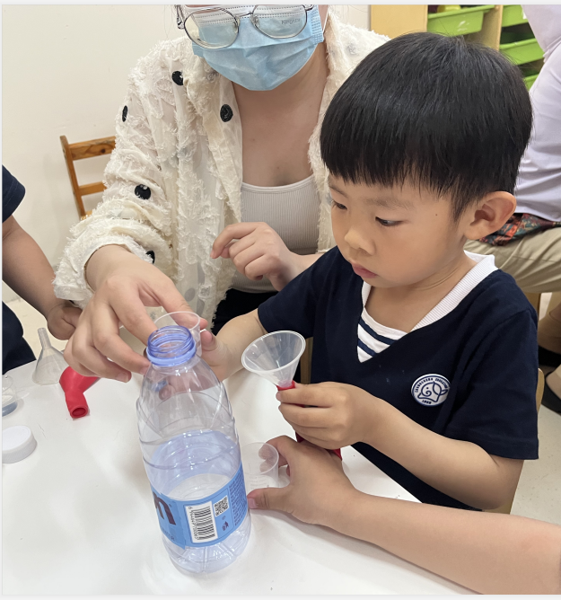3.将气球套在塑料瓶口上。