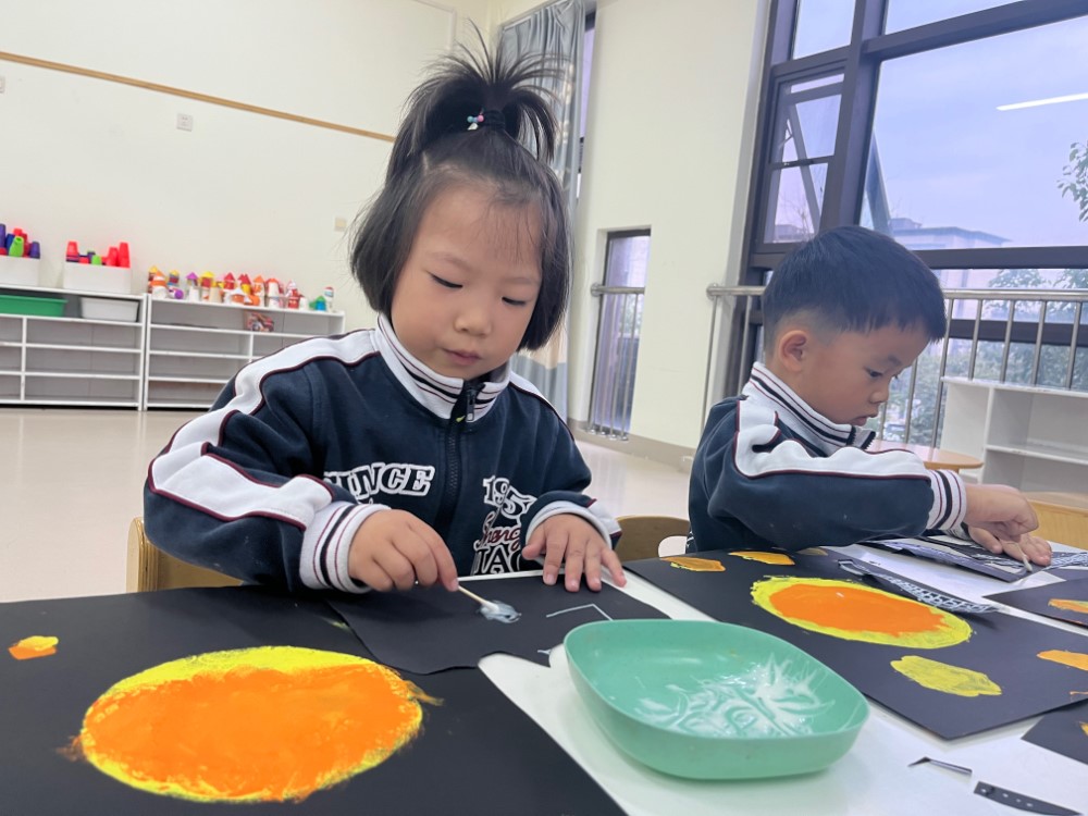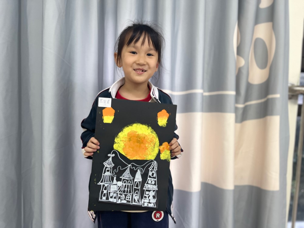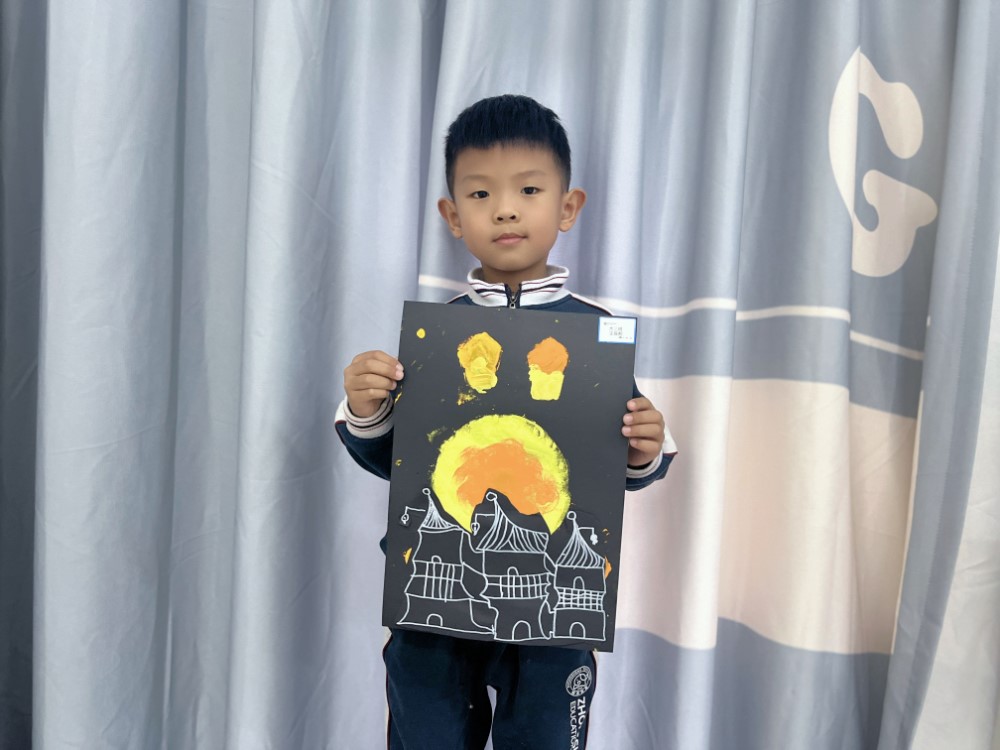 方法:1.用漏印的方法感受水粉颜料的色彩与肌理。用漏印的方法表现出月亮和许愿灯的形状,掌握漏印简单有趣的方法。同时在印的过程中观察颜料的色彩变化和肌理变化,表现出圆月和许愿灯明亮温暖的色彩,体现出暖色过渡与渐变的色彩魅力。