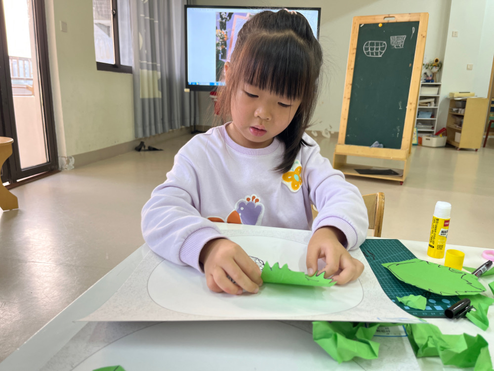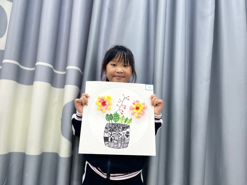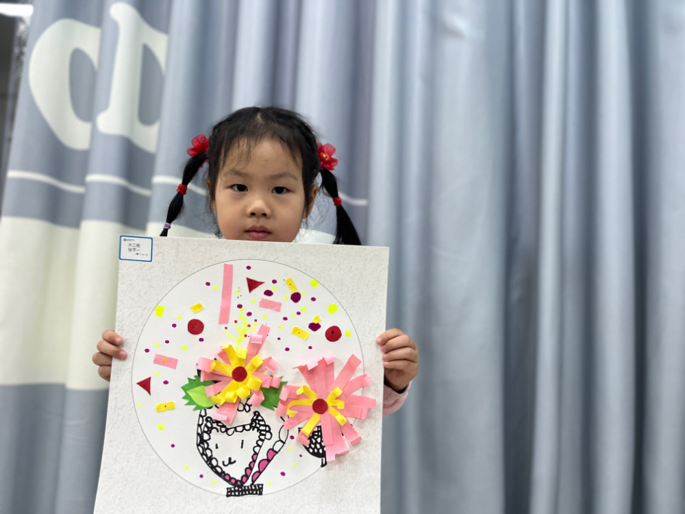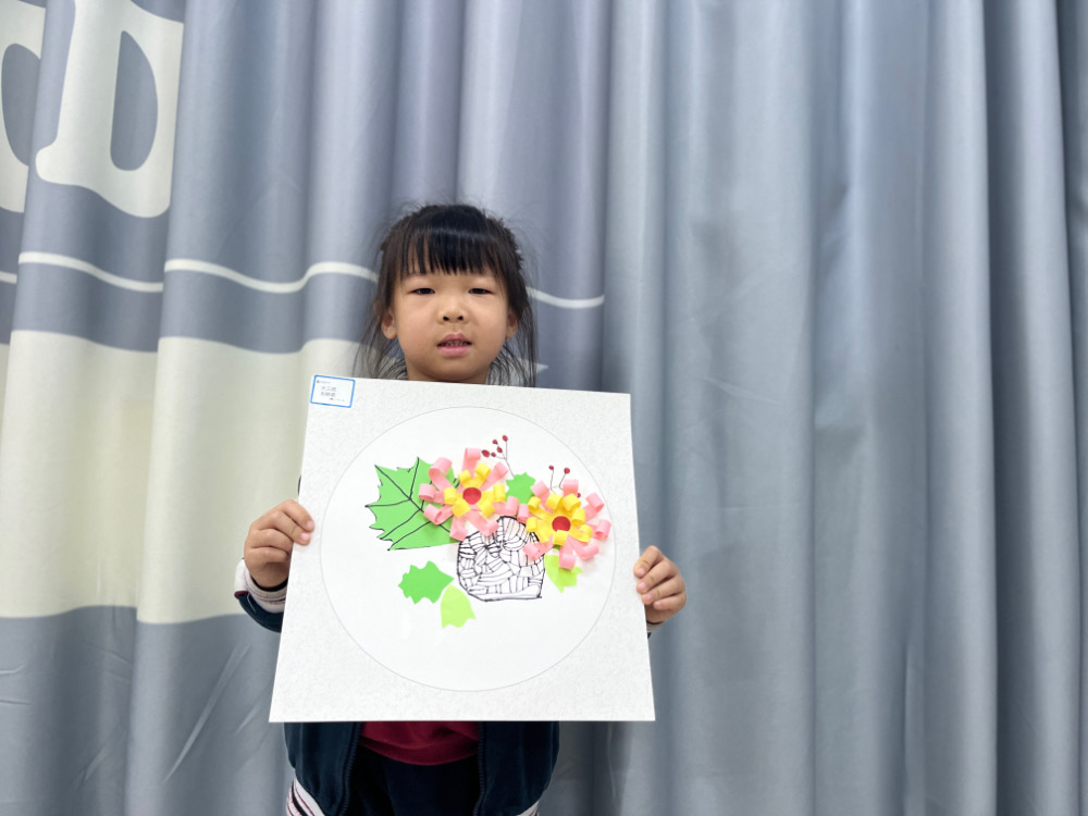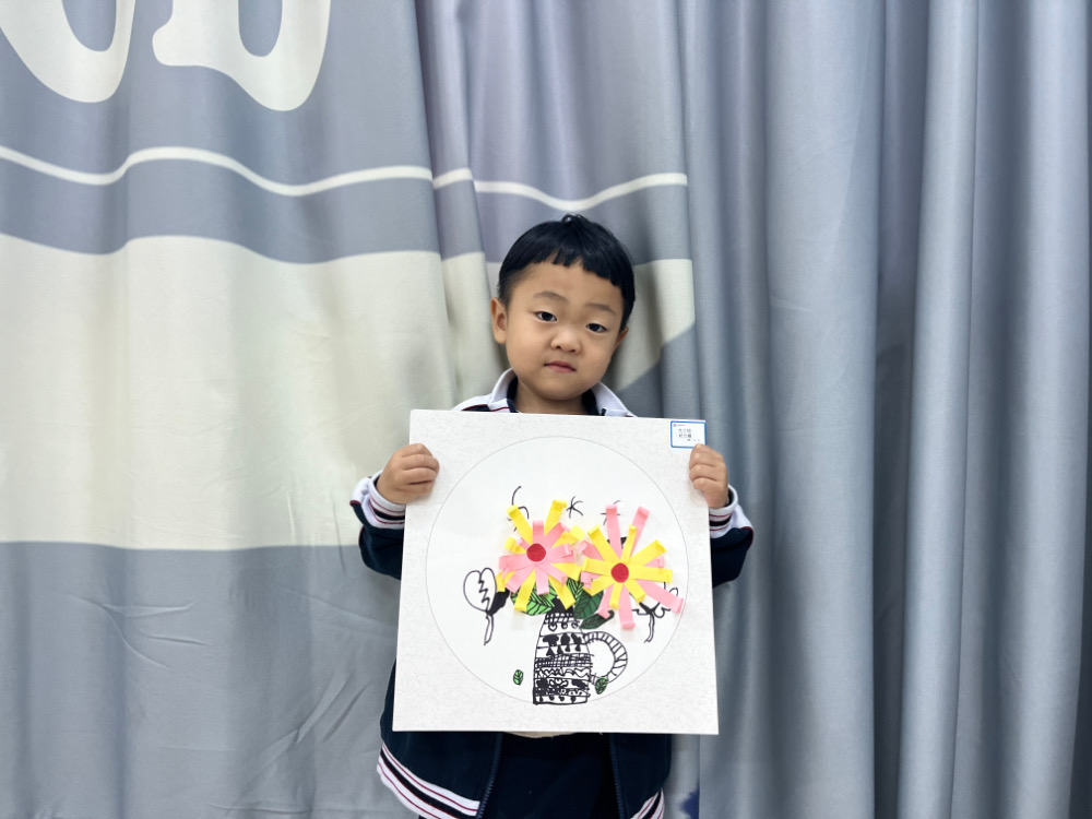 4.手工折叠菊花粘贴在花篮上,花瓣用铅笔卷一下,使其弯曲。