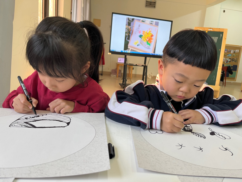 2.线条画出花篮(花篮形状随意)