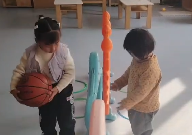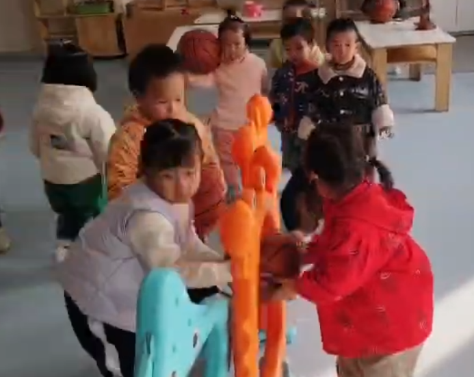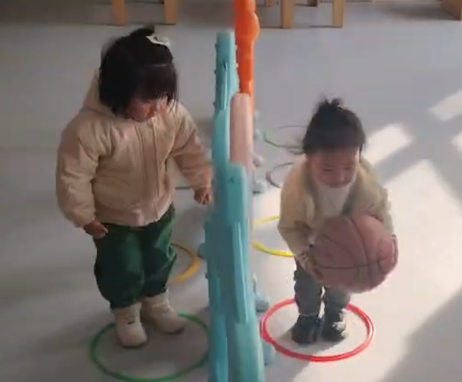 这个游戏培养宝贝们腿部力量和手眼协调能力。