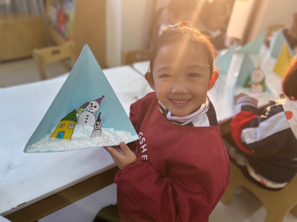 2.尝试立体的创作,围绕主体雪人展开了大胆的创作,丰富画面的细节烘托出浓郁的冬季氛围,充分锻炼了小朋友们的想象力和综合创作能力