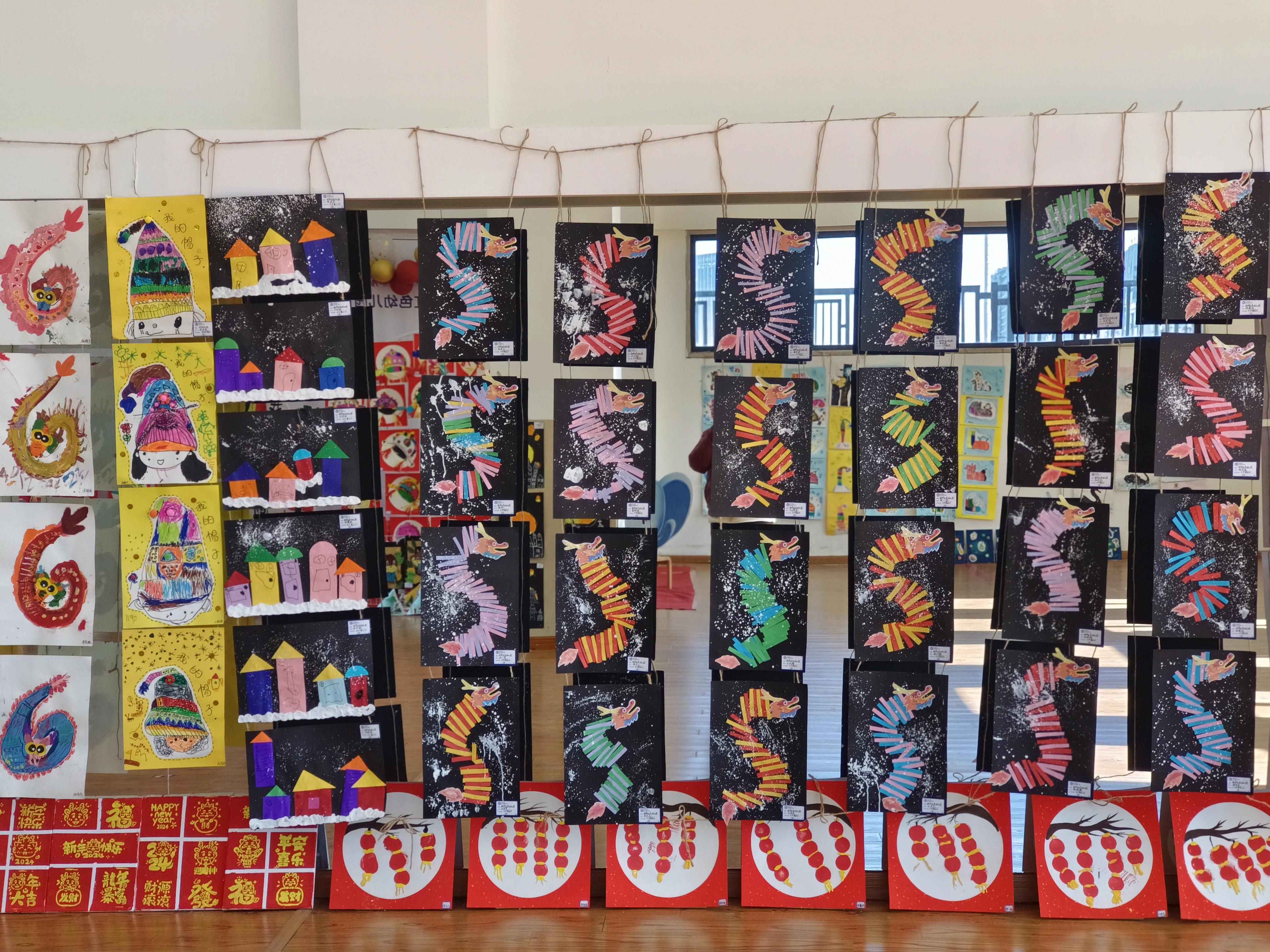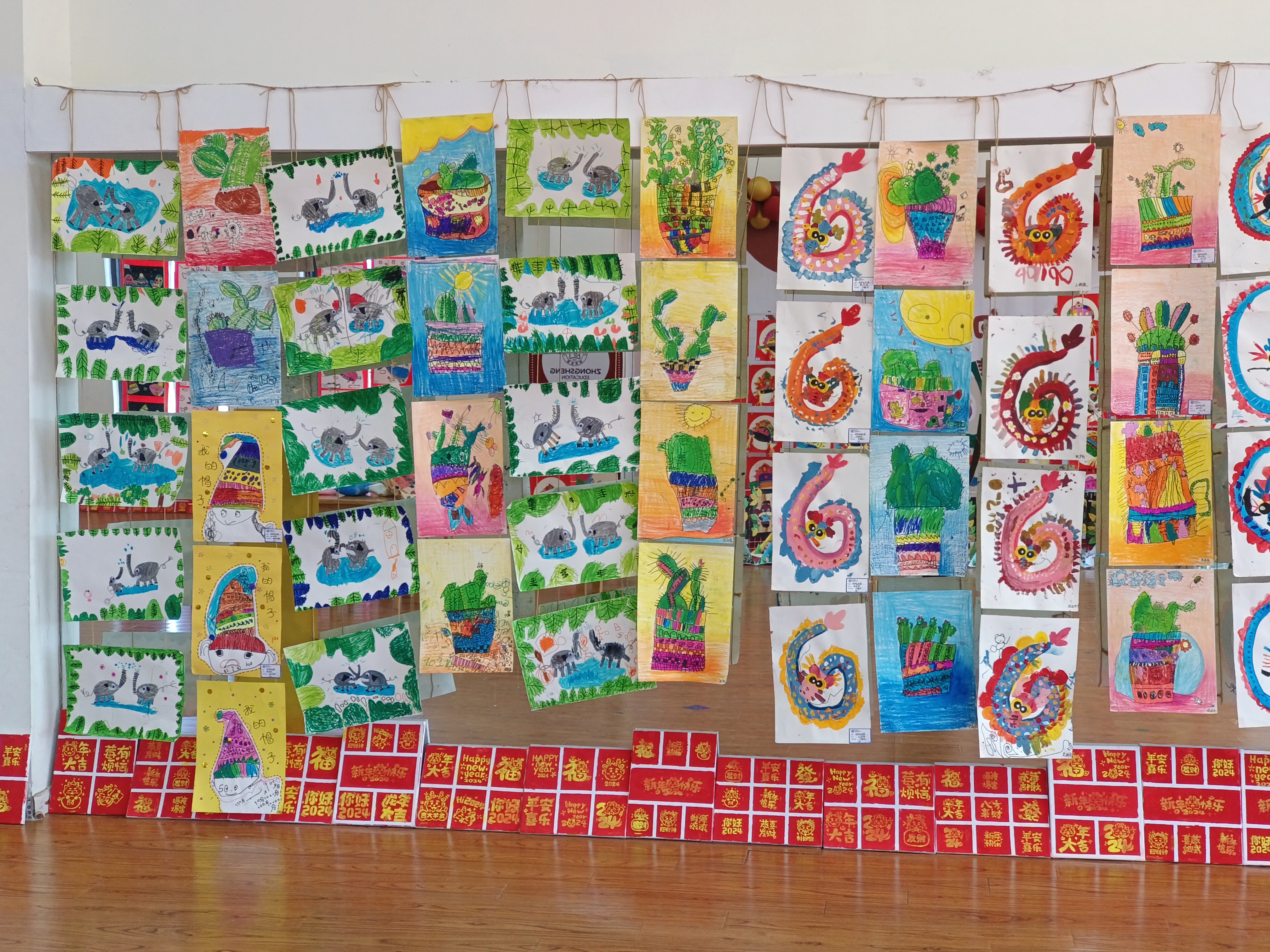 学期末的美术作品展示中,