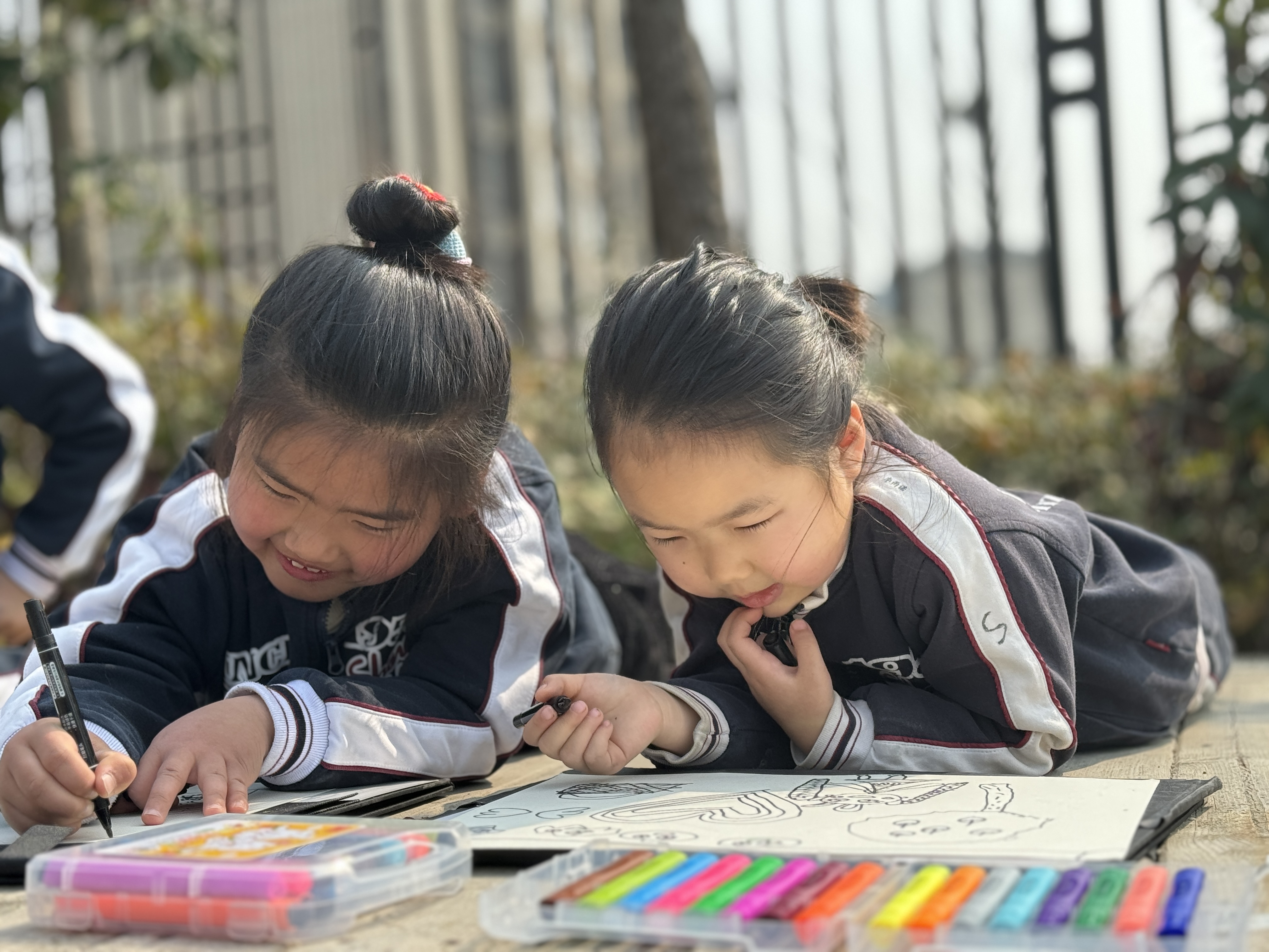 小朋友们沐浴着阳光,