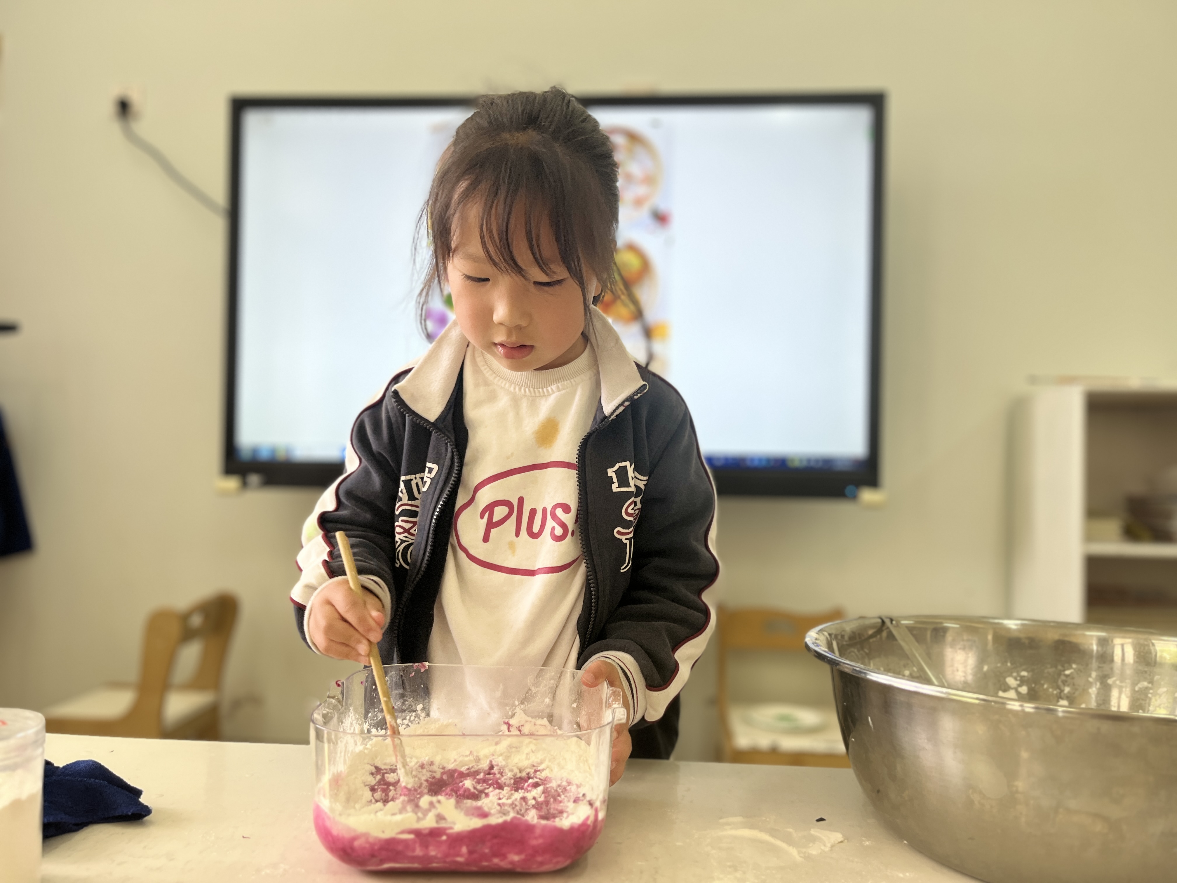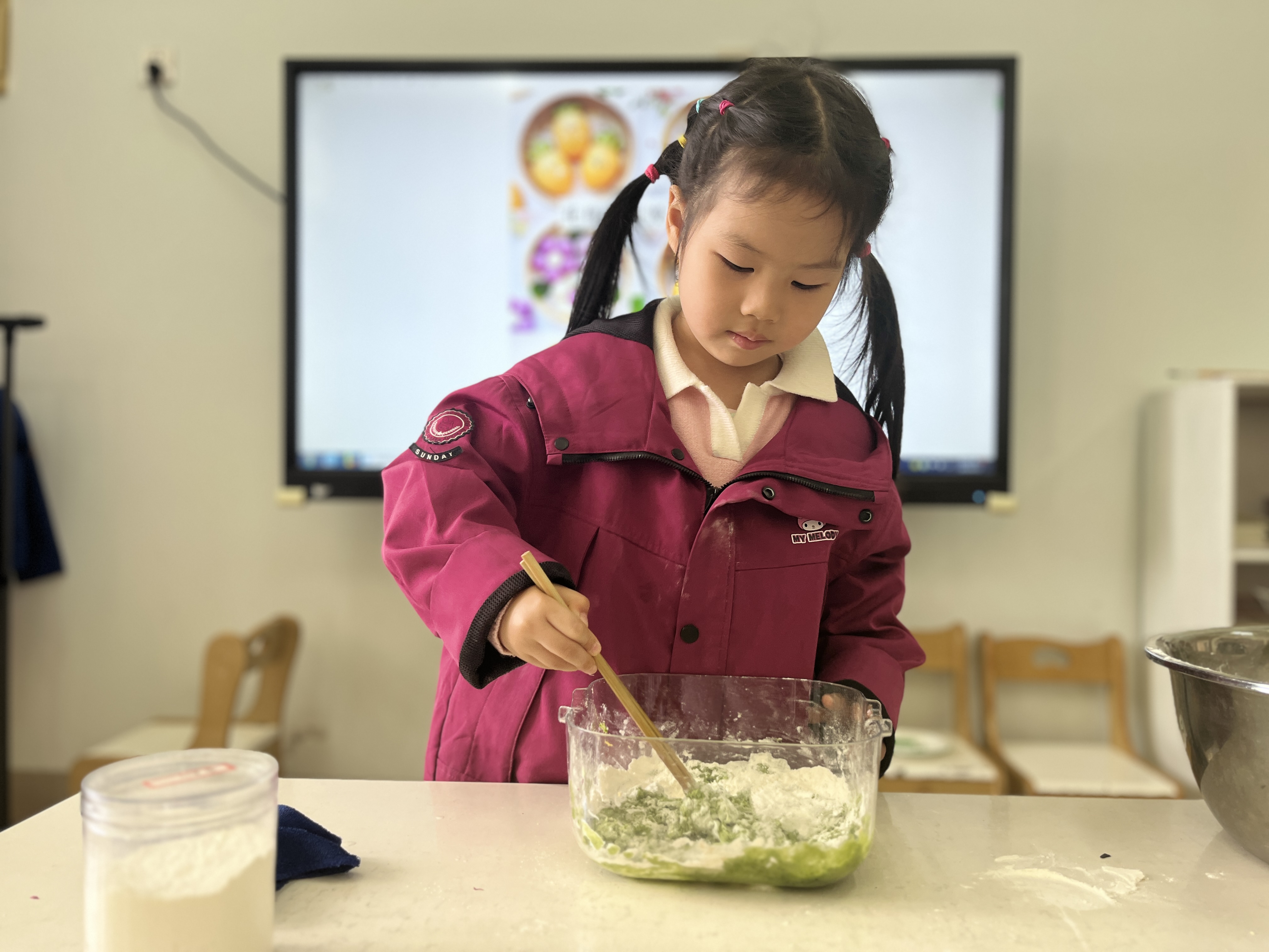 孩子们自己动手,通过视、听、嗅、触觉等多感官体验,直接获得生活经验;在制作过程中,孩子们去了解食材、感知食材、参与制作,并且体验食育课的快乐。
