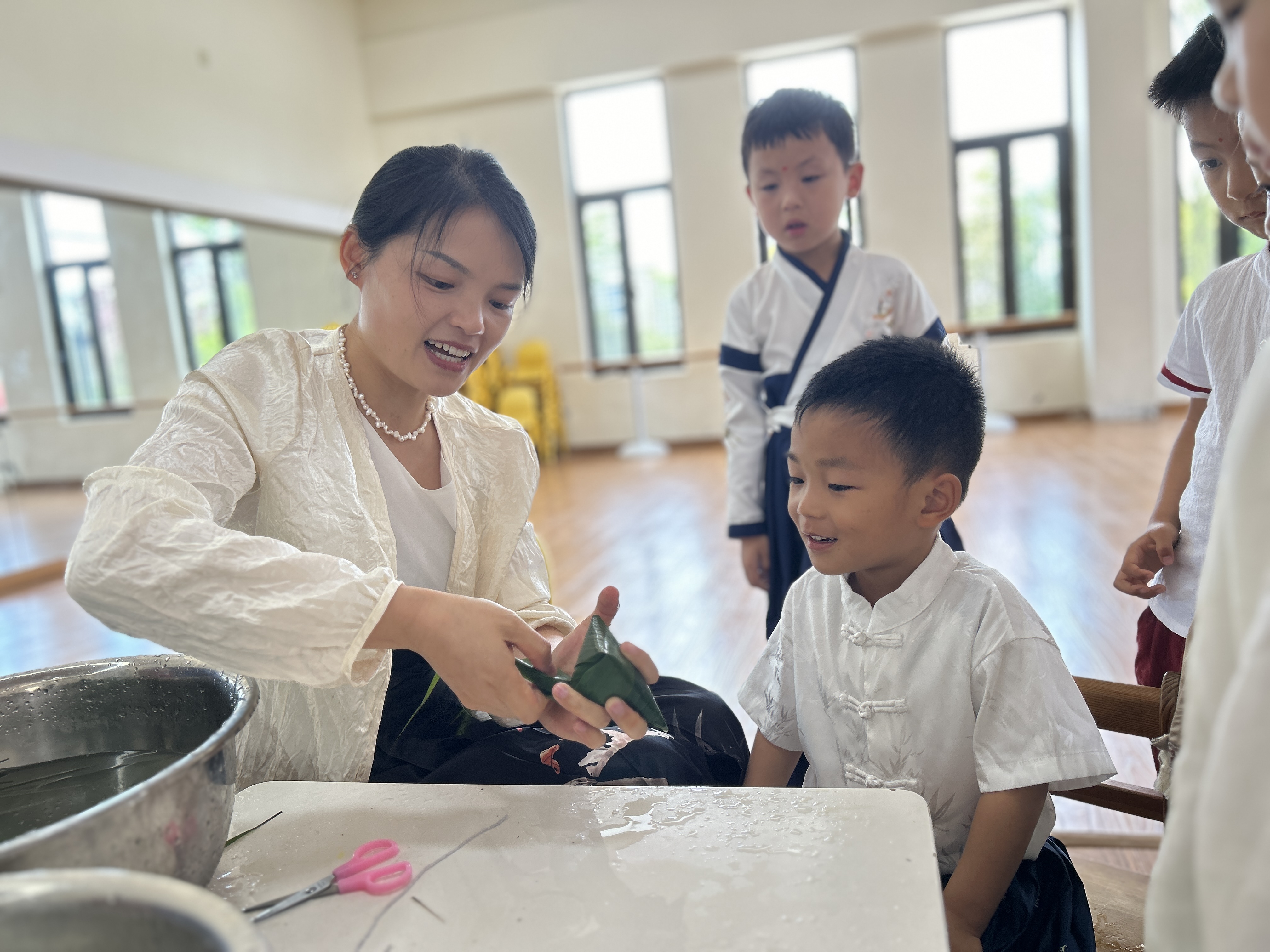 清晨,走进幼儿园,端午习俗的热闹气息扑面而来,孩子们闻艾香、品粽子,绘彩蛋、射五毒,体验着古老的端午习俗。这种身临其境的体验,让孩子们在轻松愉快的氛围中,感受并理解传统文化的内涵。