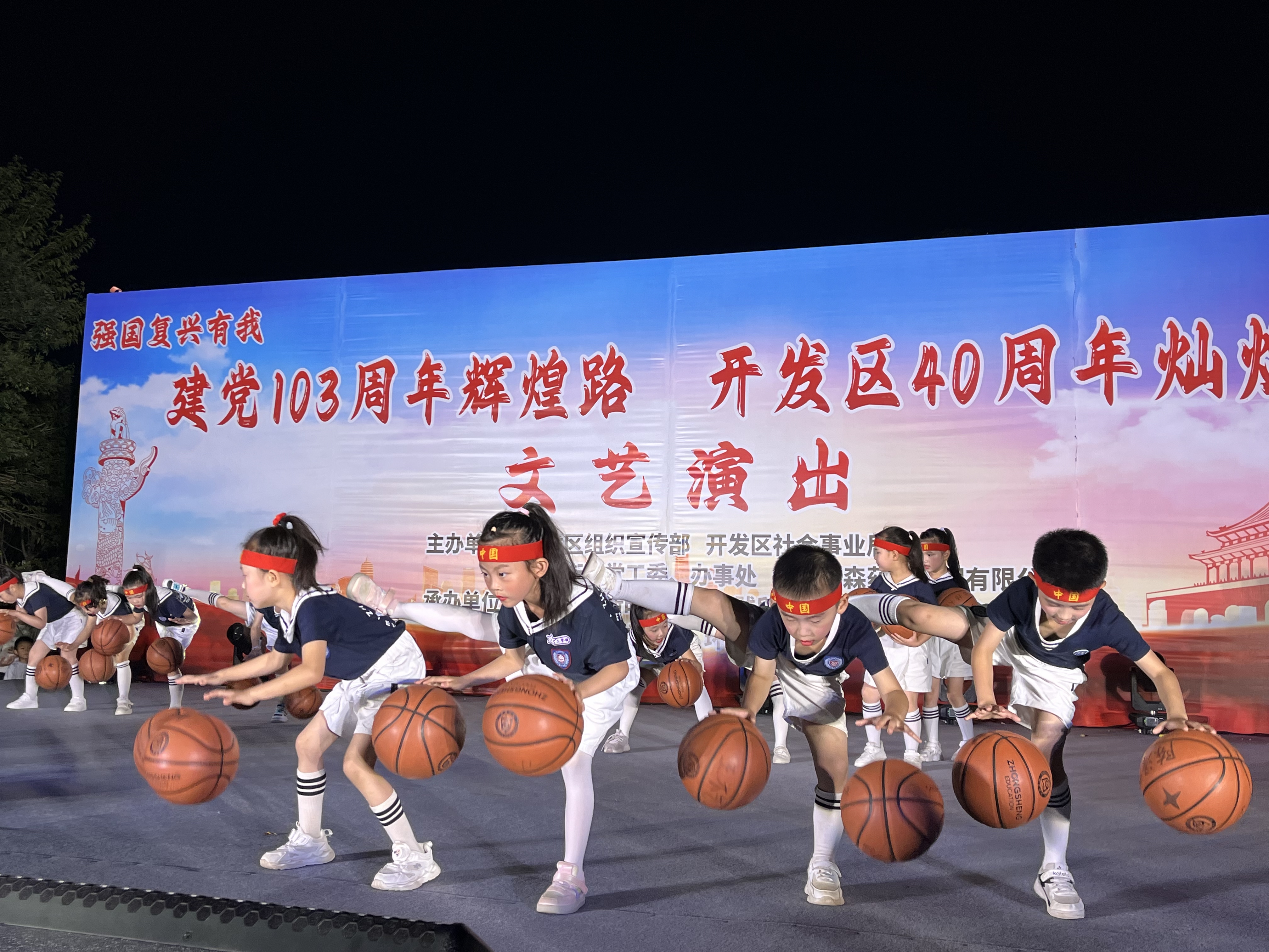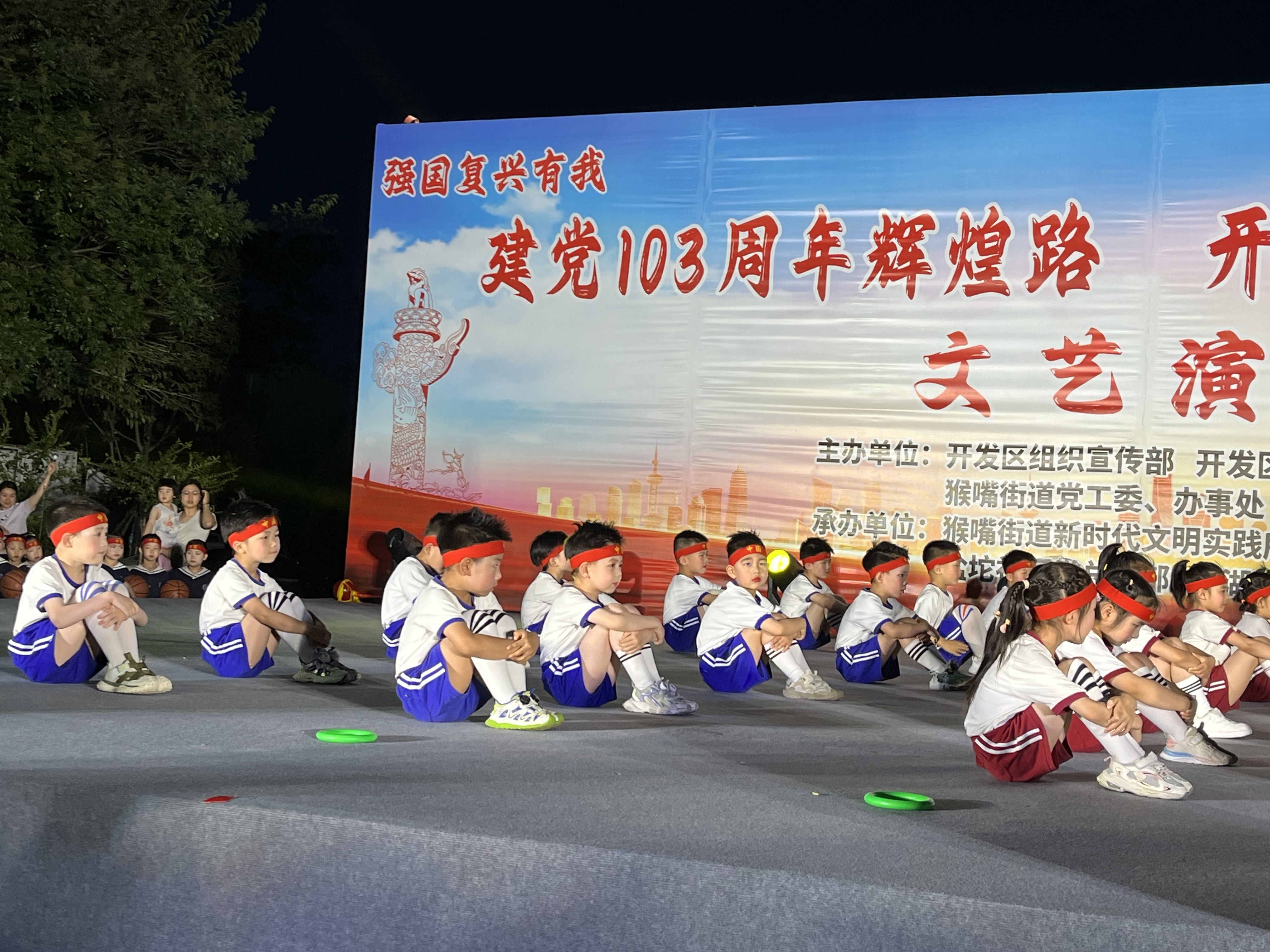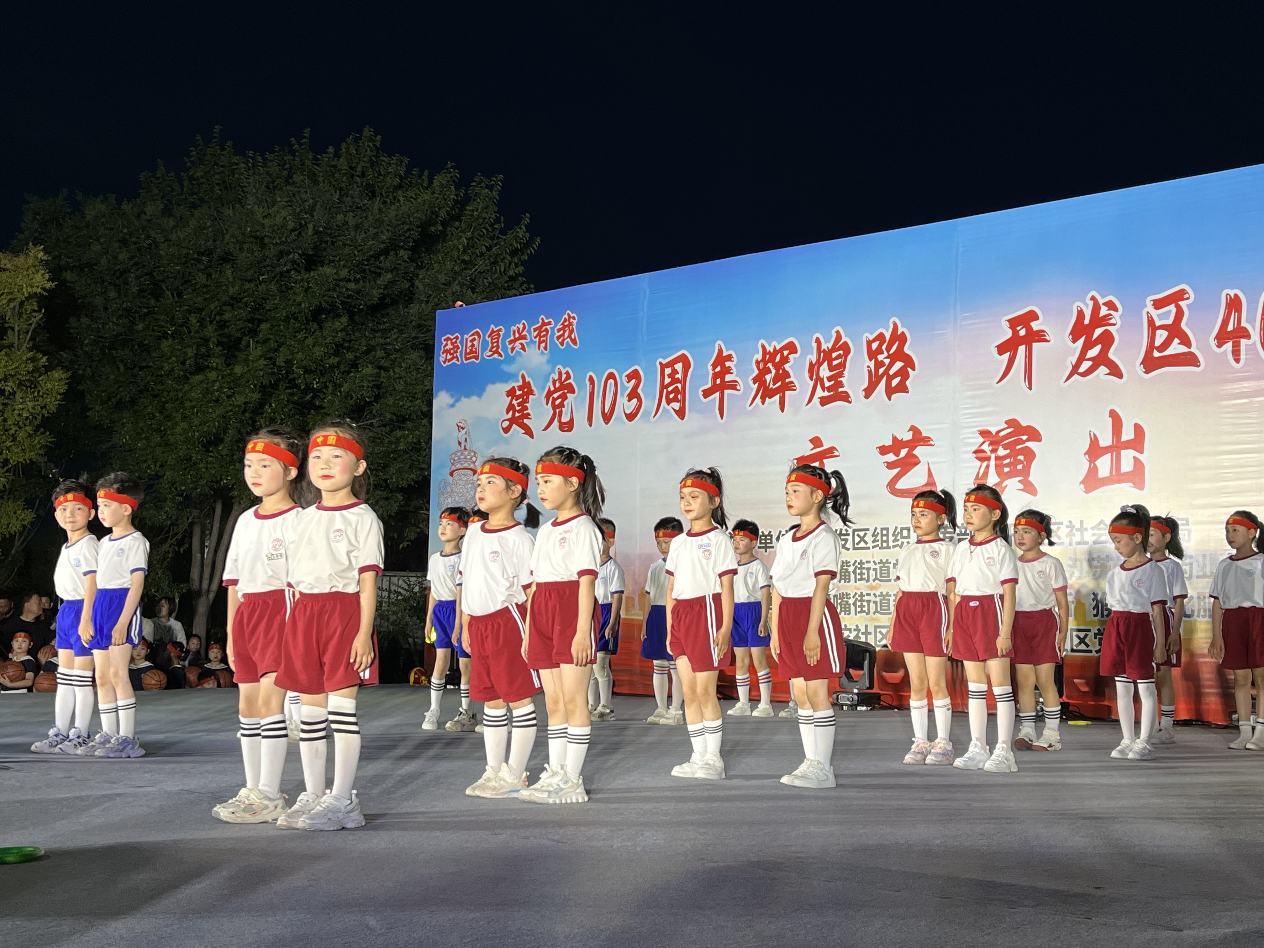 6月26日,钟声宝贝受邀参加社区“建党103周年辉煌路,开发区40周年灿烂程”文艺演出,为了准备此次演出,宝贝们在园进行多次排练,以求达到完美表现