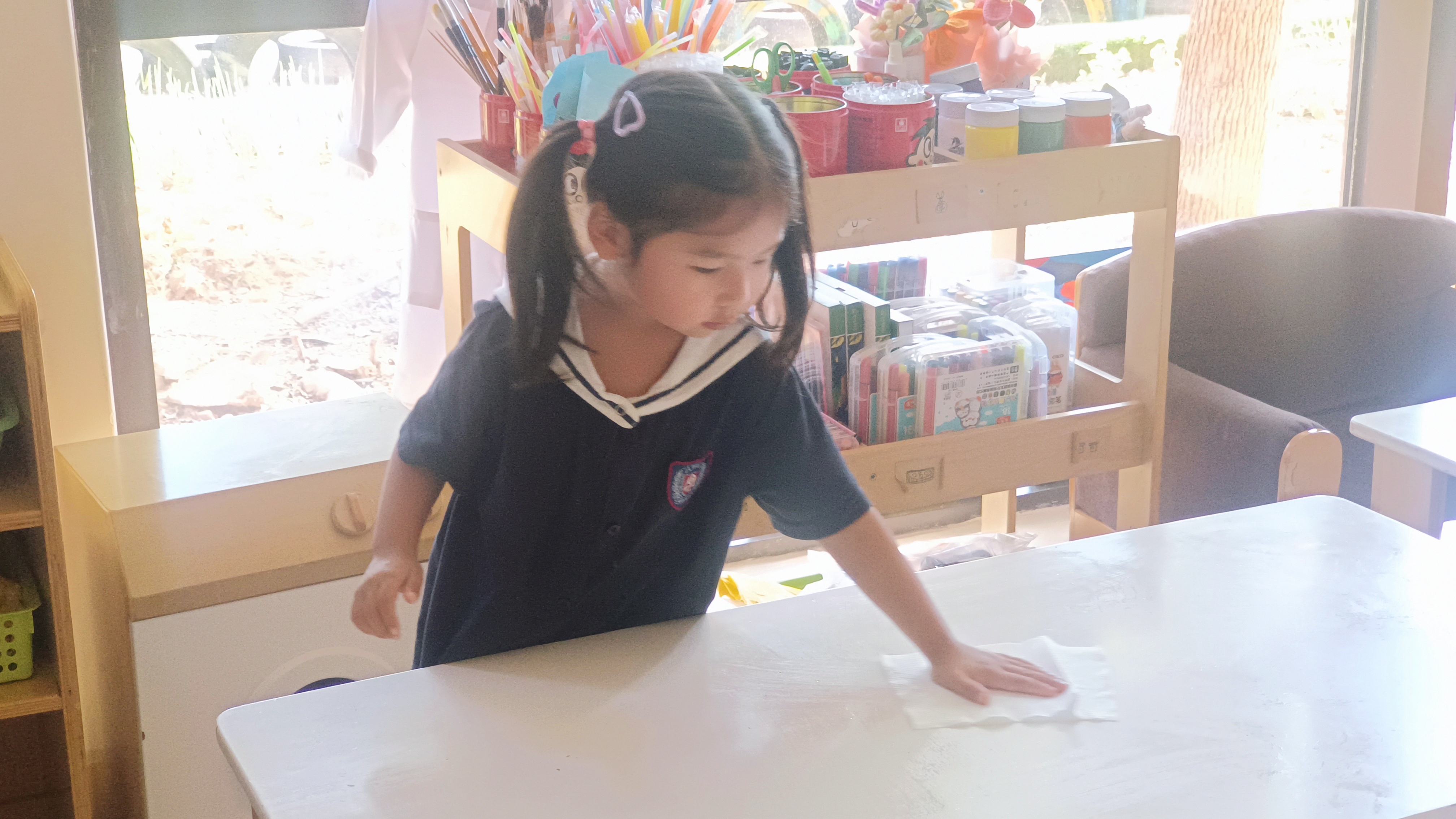 小朋友们分组合作,化身劳动小能手,干起活来认真负责、有模有样。扫地整理、清洗玩具、整理鞋柜、照护绿植,幼儿园里到处都是孩子们忙碌的身影。