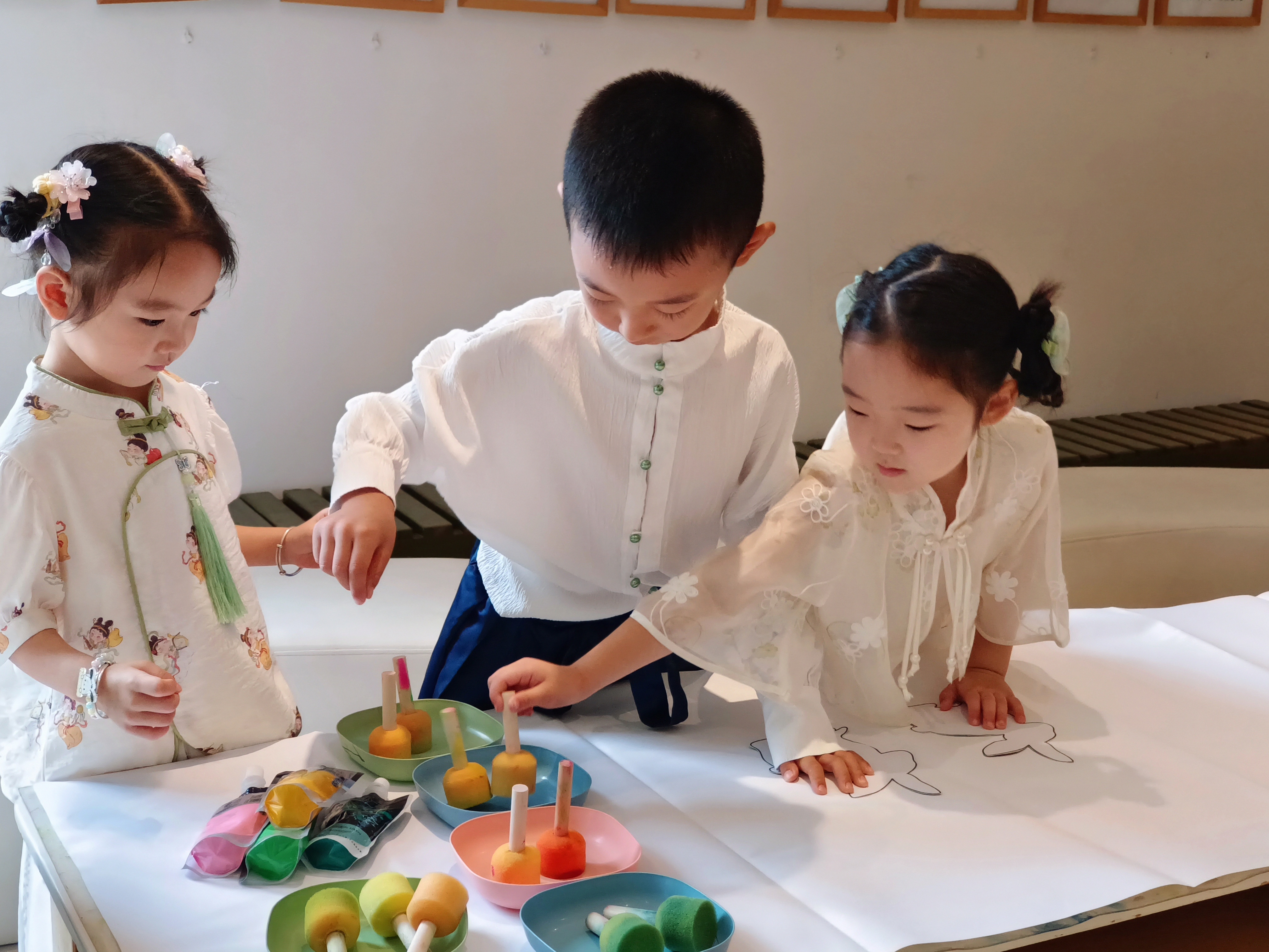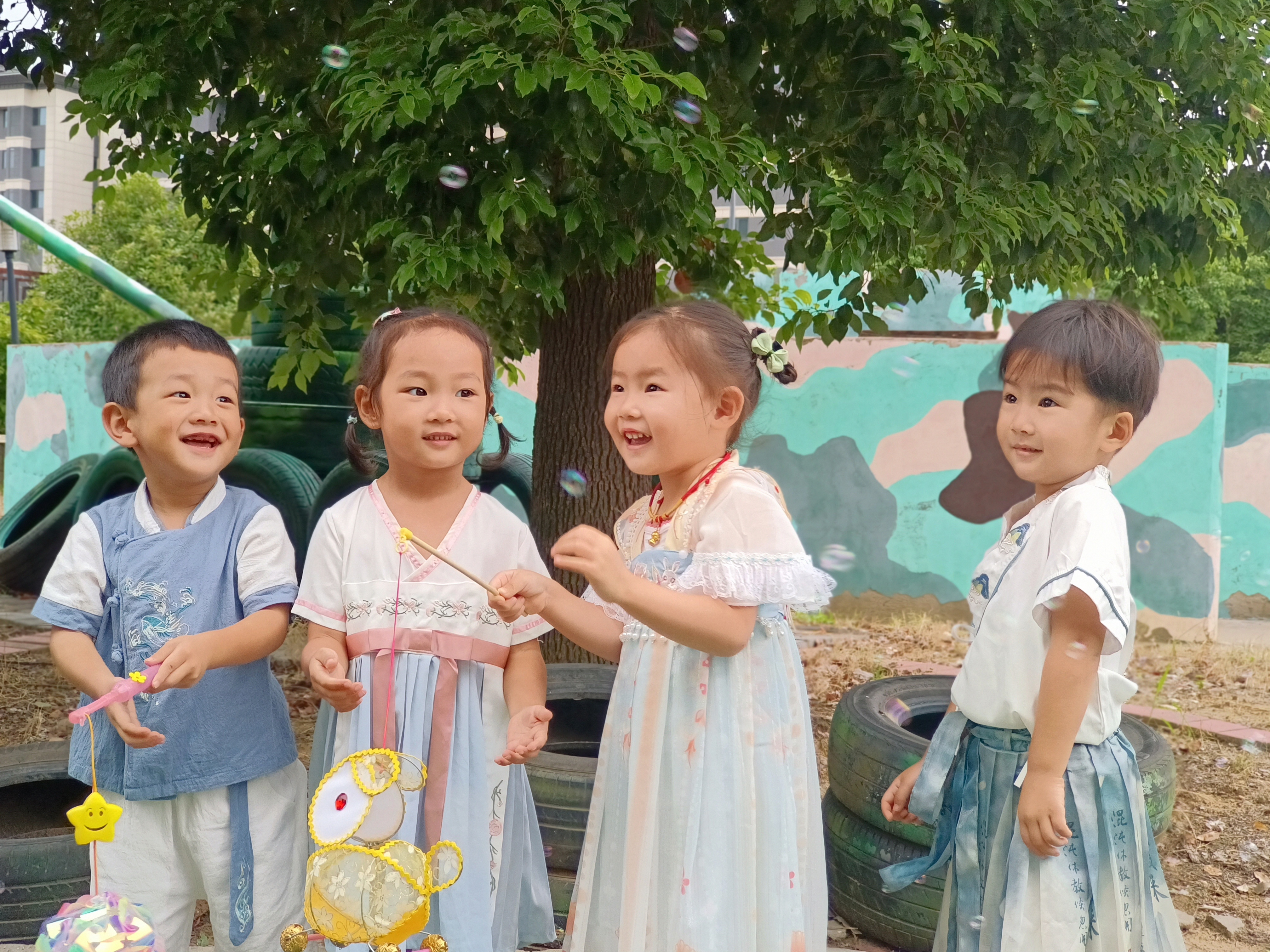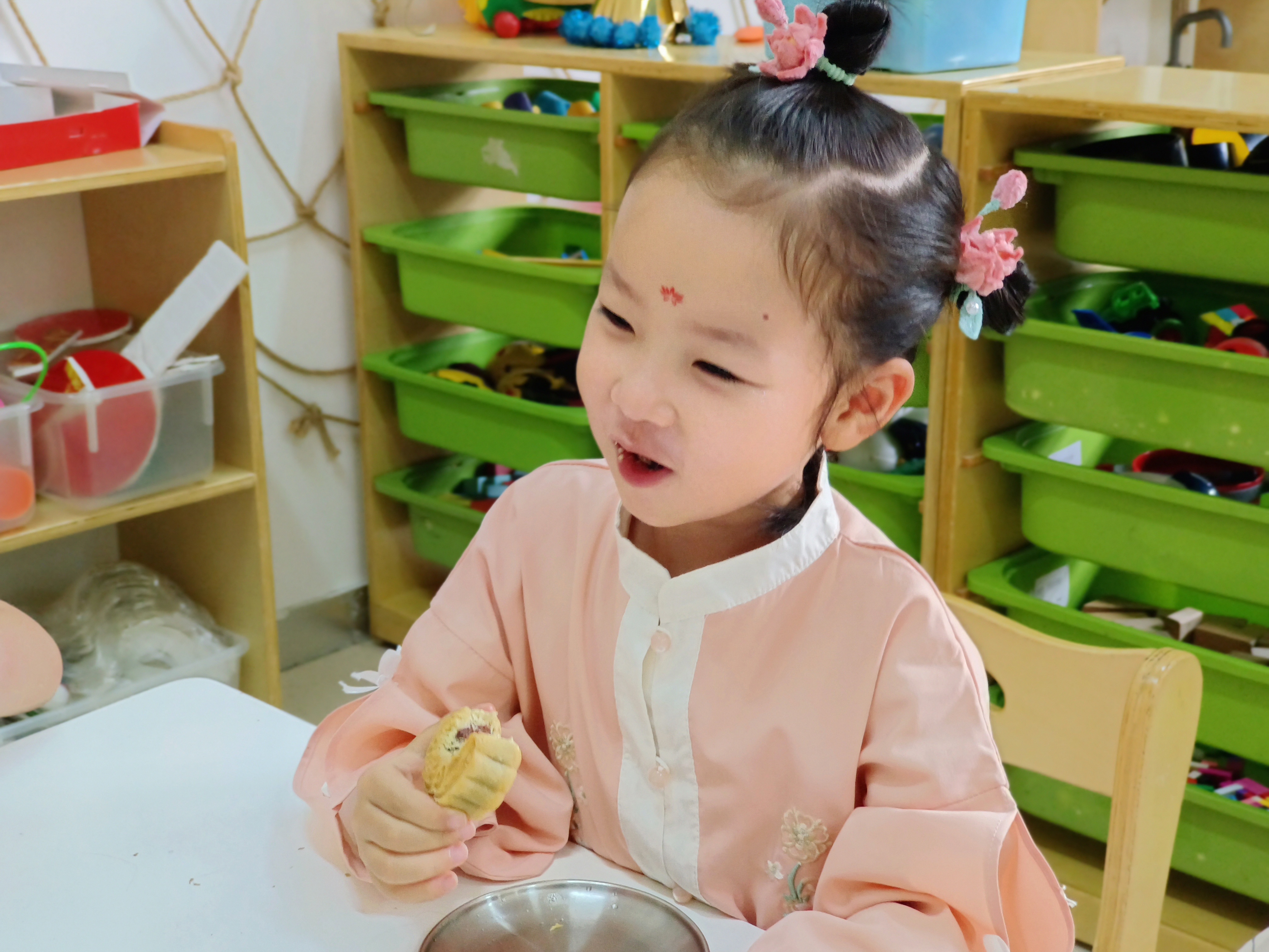 中秋节有许多的文化符号:玉兔、嫦娥、圆月、月饼、花灯、品茶、团圆......在浓浓的节日氛围中,孩子们通过游园的方式,身临其境,切身体会中秋节的文化元素