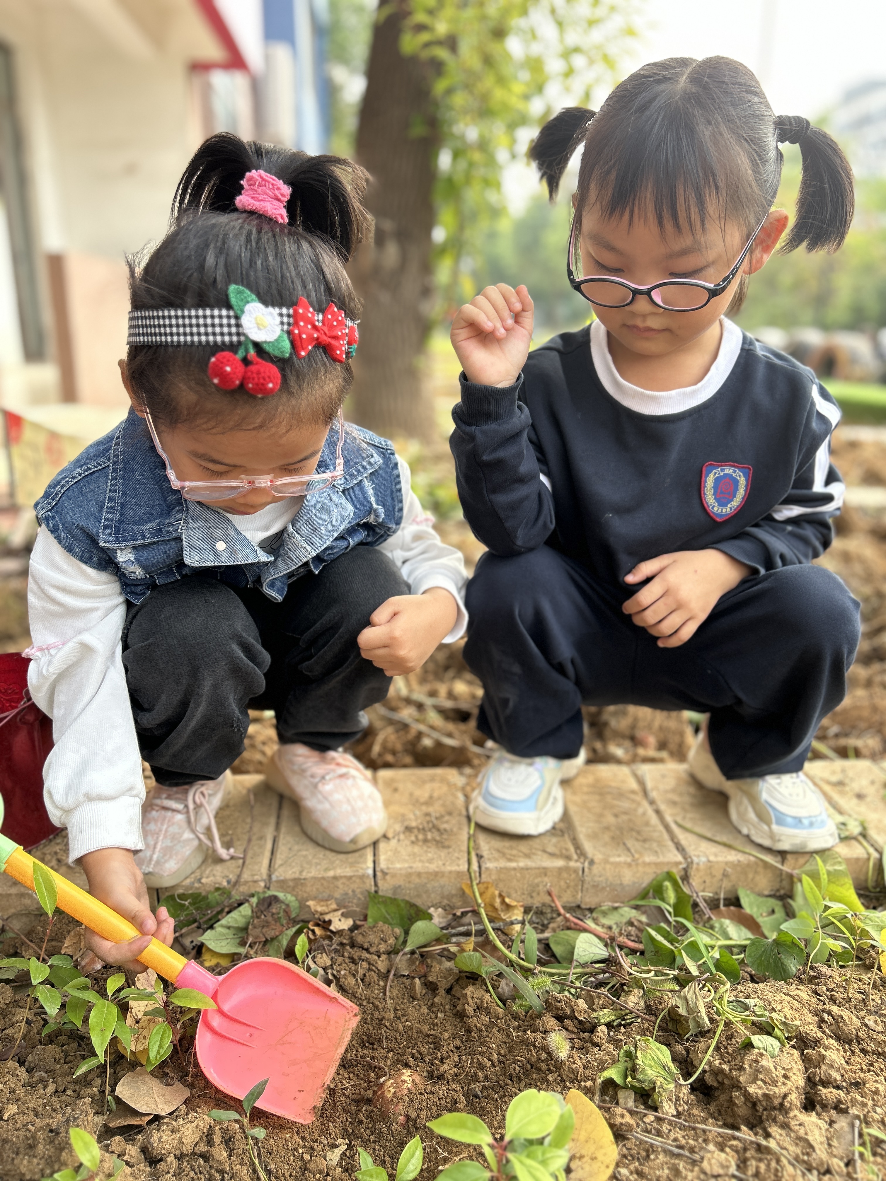 又是一年收获季,幼儿园种植园地的红薯成熟啦!藏在泥土里的红薯积蓄着力量,静待收获。孩子们扛上自己的小铲子,来一次与红薯的亲密邂逅吧!