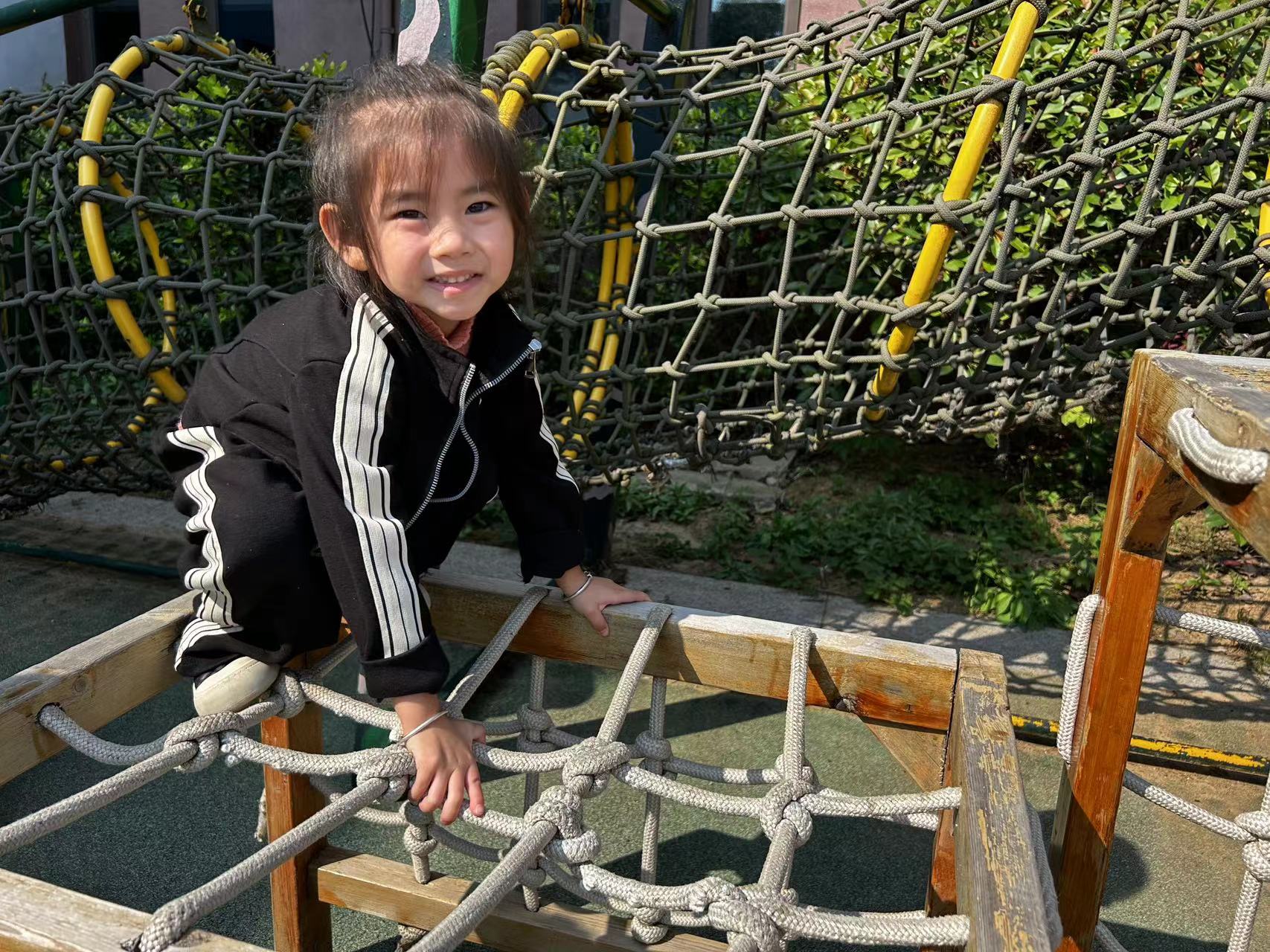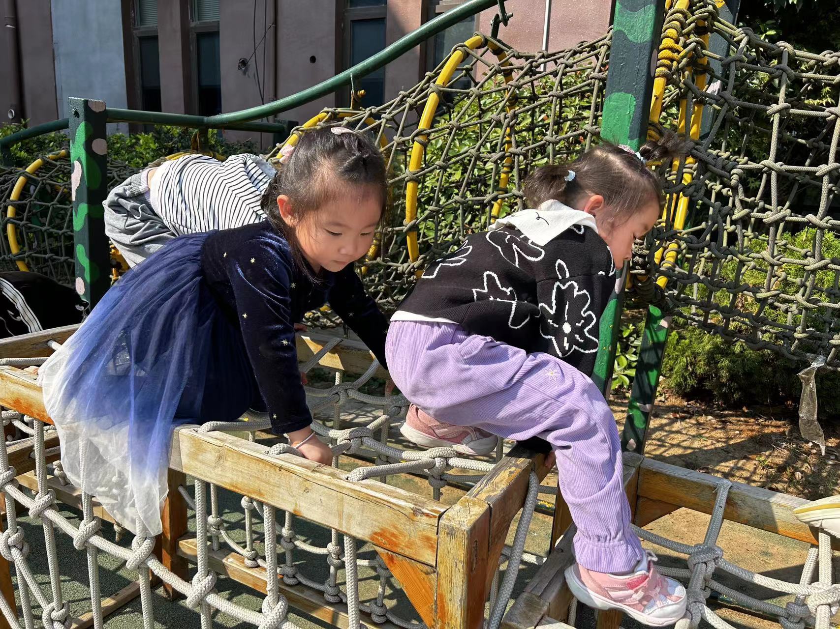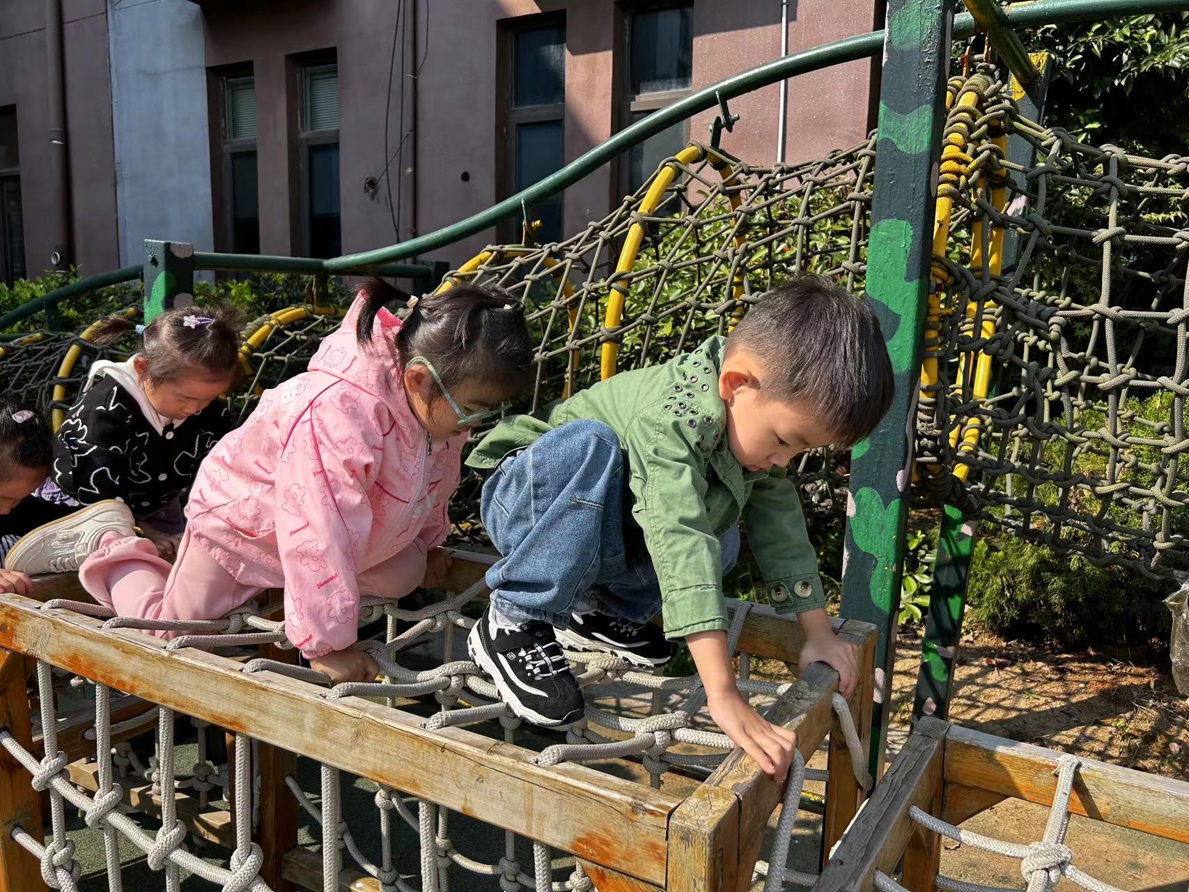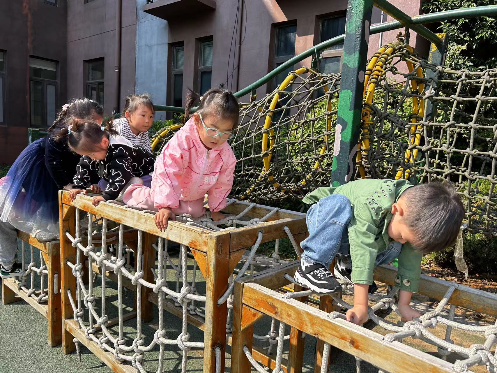 在攀爬活动中可锻炼孩子的胆大、勇敢、不怕困难