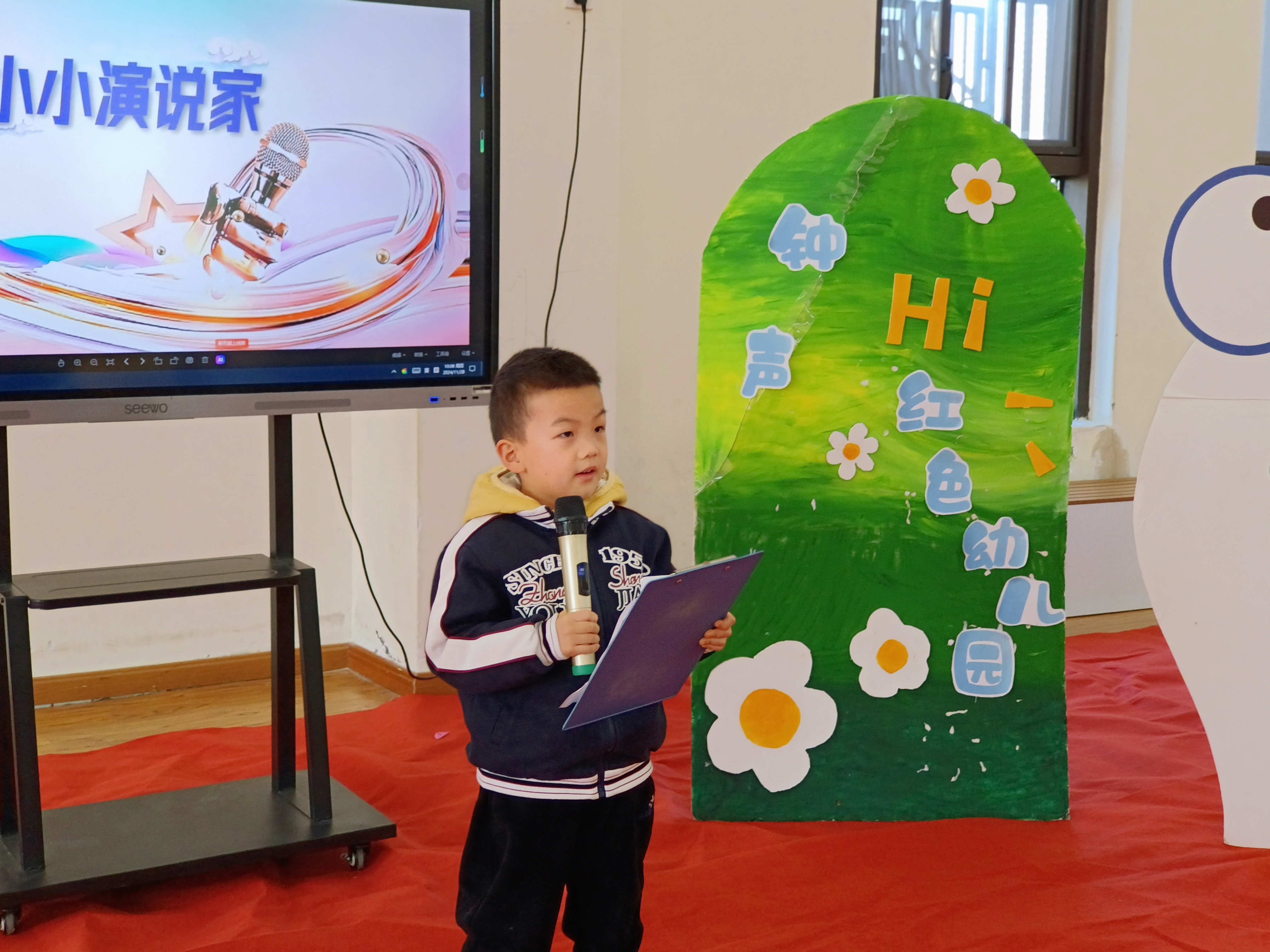 幼儿期是孩子语言发展的关键期,《3-6岁儿童学习与发展指南》在语言领域也强调“发展幼儿语言关键是创设一个能使他们想说、敢说、喜欢说、有机会说的环境”。为了丰富幼儿的生活,给幼儿提供一个展示自我的舞台,我园特组织“小小演说家”演讲活动。