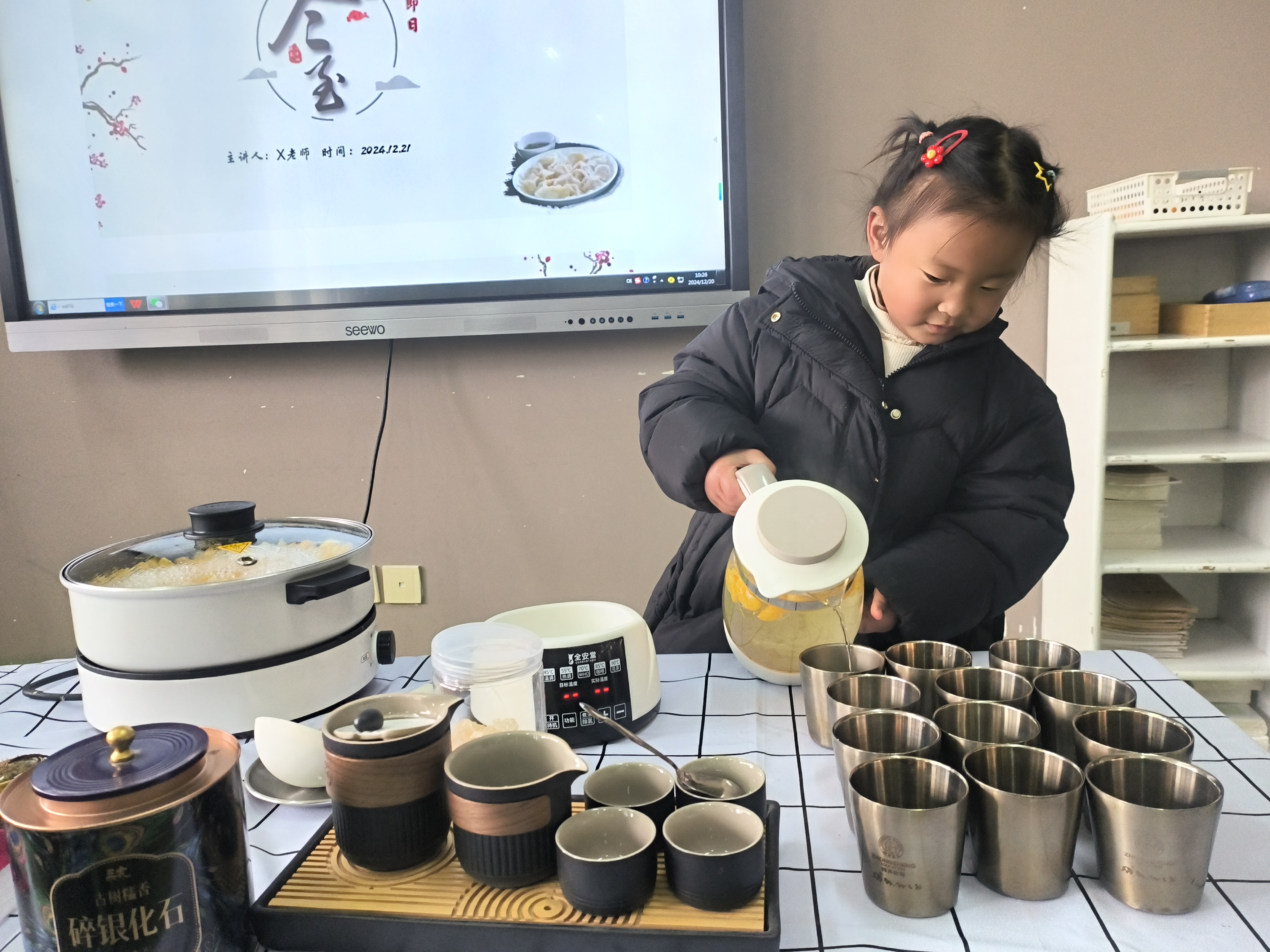孩子们一起围炉煮茶,谈笑间感受这热闹的节日,与伙伴们一起享受独属于冬日的闲适。