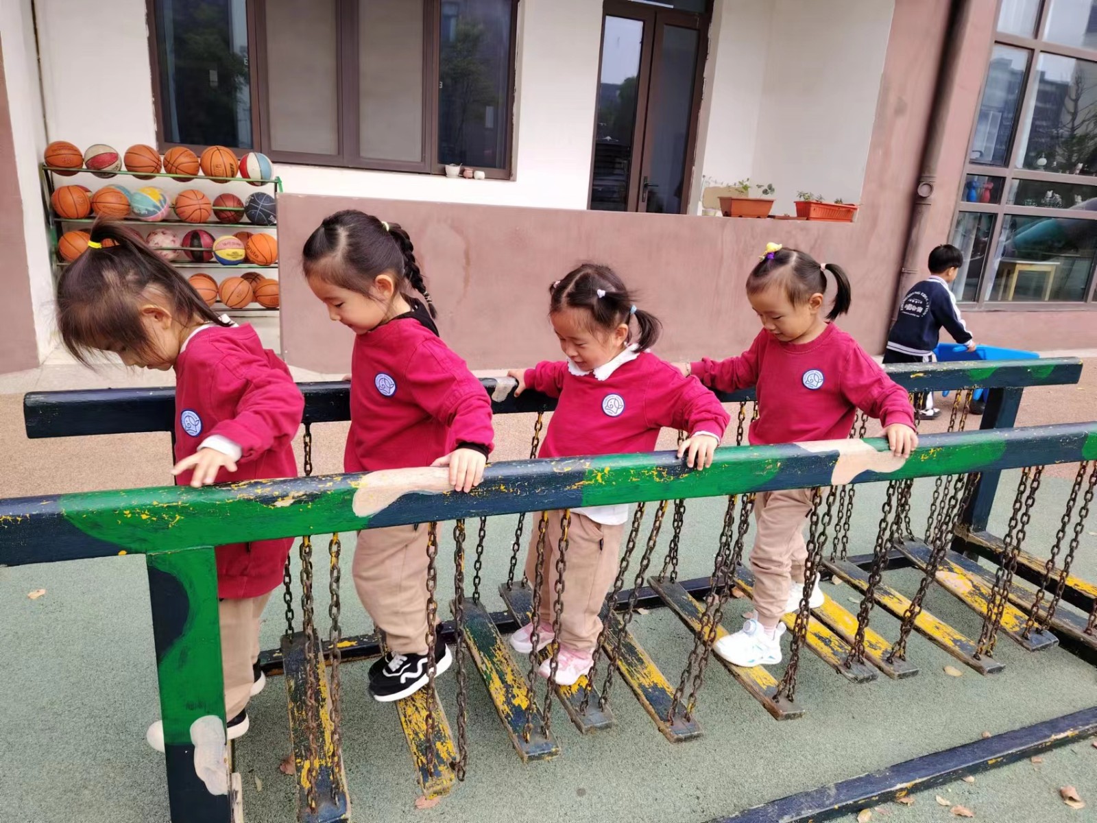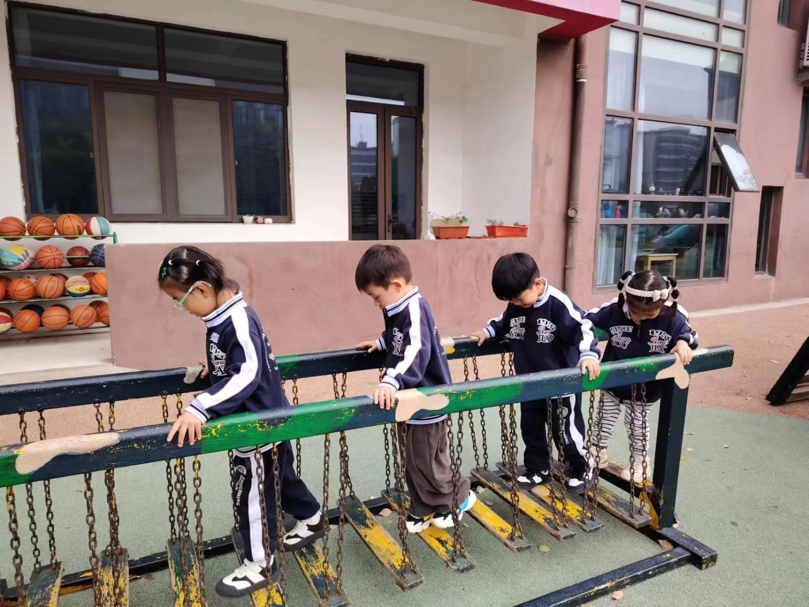 好玩的荡桥不仅可以锻炼幼儿平衡能力,