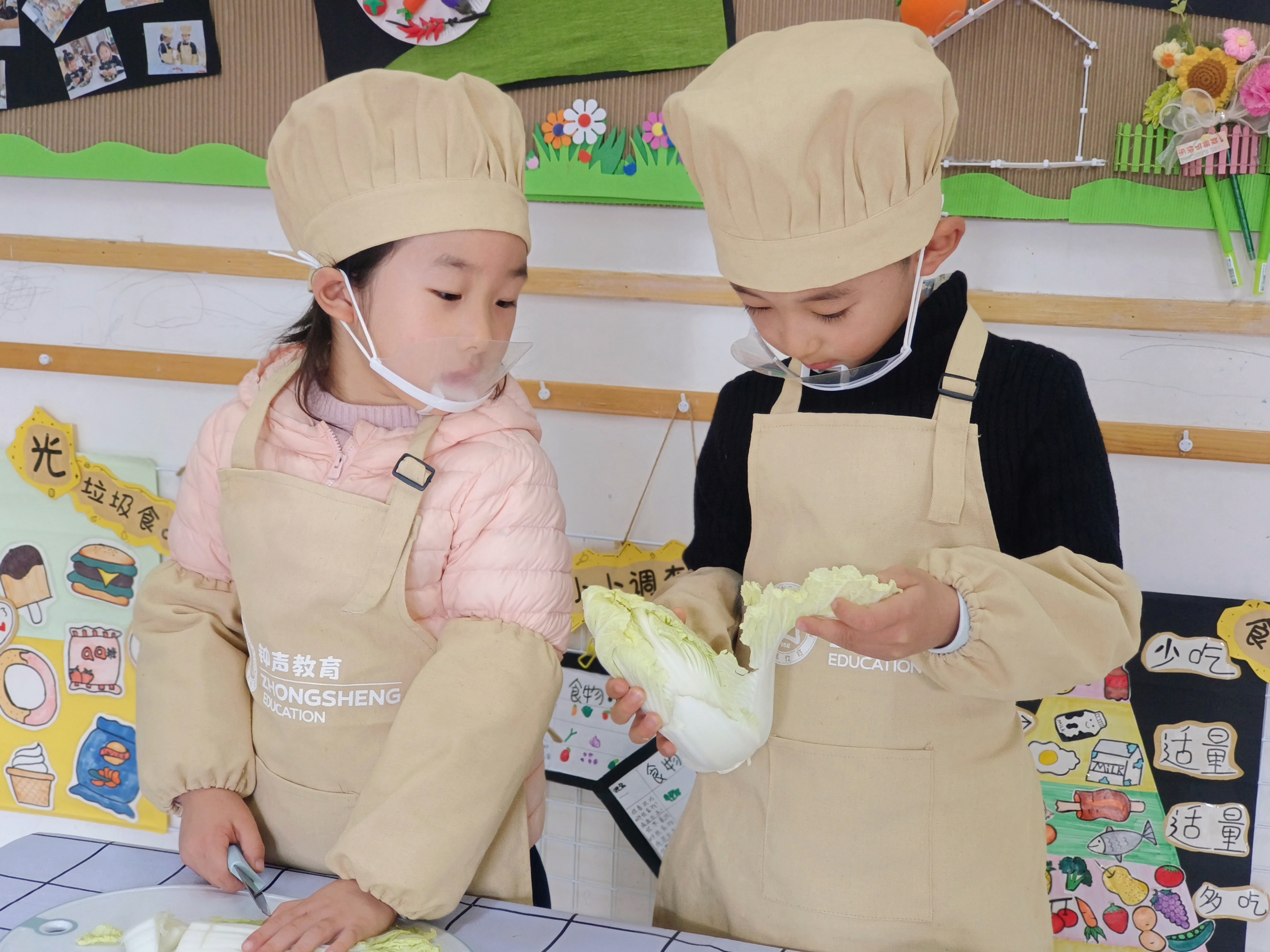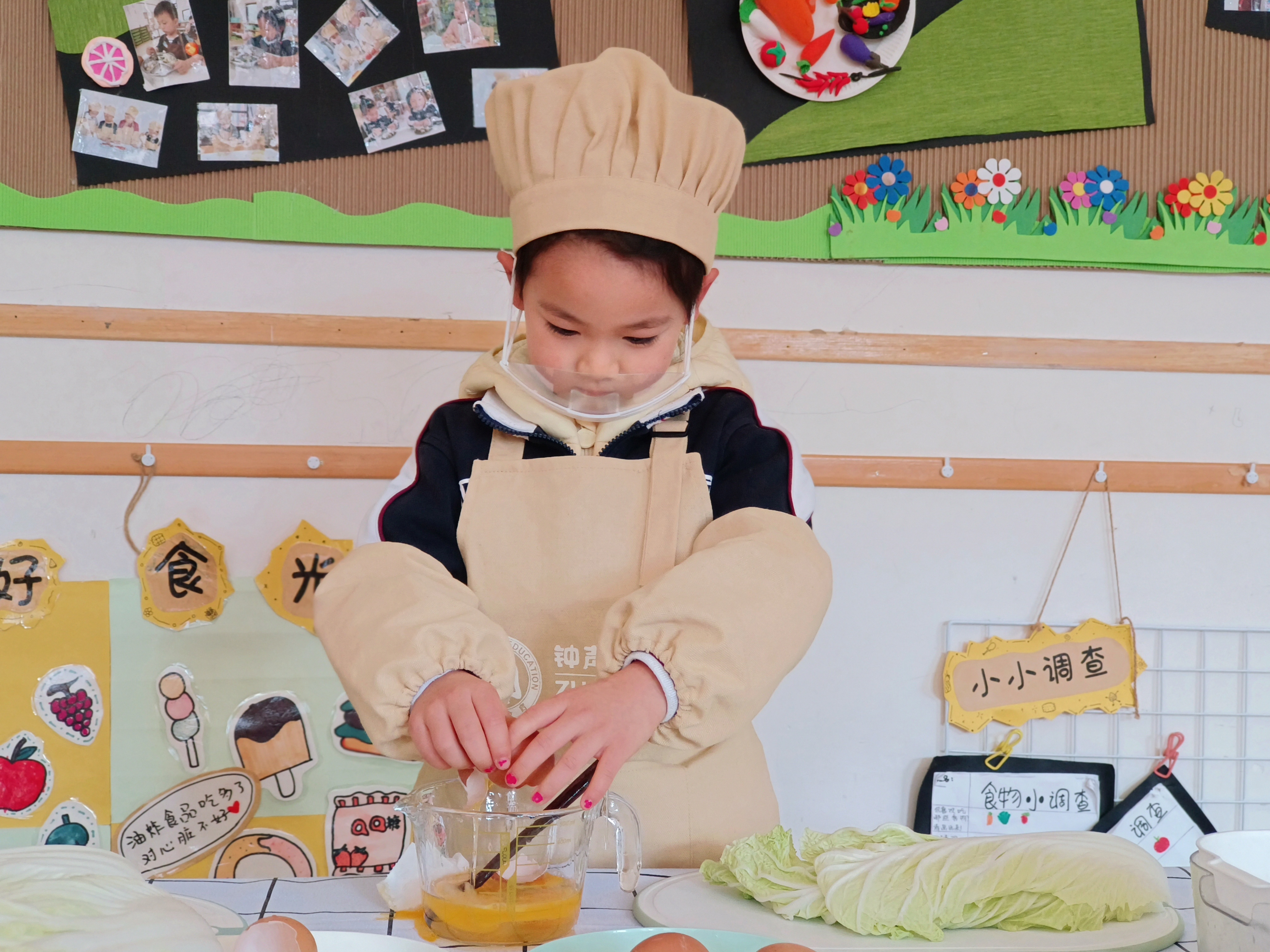 美好的幼儿园生活不仅有游戏,还有美食,食物是儿童接触自然的序幕。今天的食育课,孩子们带来的是《白菜炒鸡蛋》。
