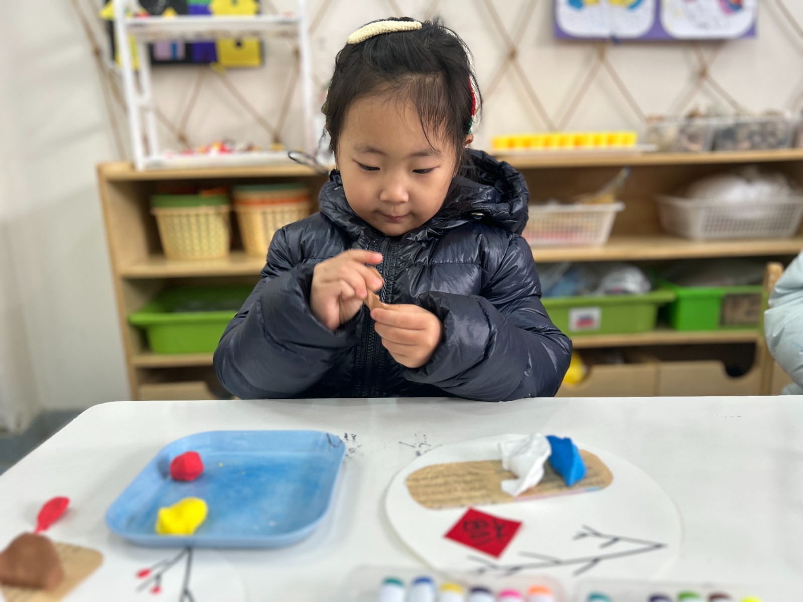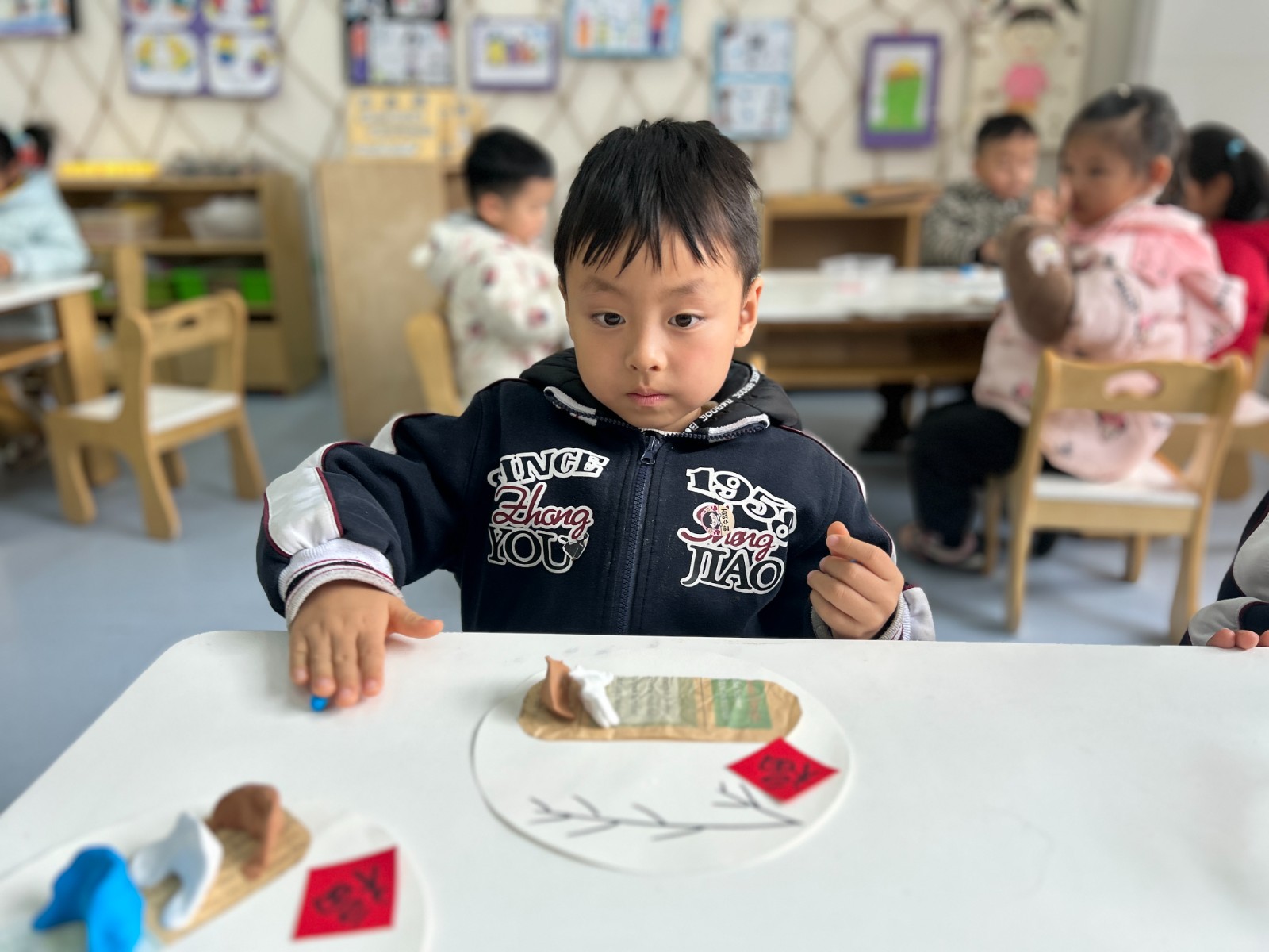 当拿到五颜六色的橡皮泥时,孩子们瞬间开启了“创作模式”。小手用力地揉捏着橡皮泥,尽管一开始包出的“饺子”形态各异,有的馅料“溢”了出来,有的花边歪歪扭扭,但那认真劲儿丝毫不减。小小的手指在橡皮泥上舞动,不仅是在练习一项技能,更是在编织着对冬至节日的美好期待。
