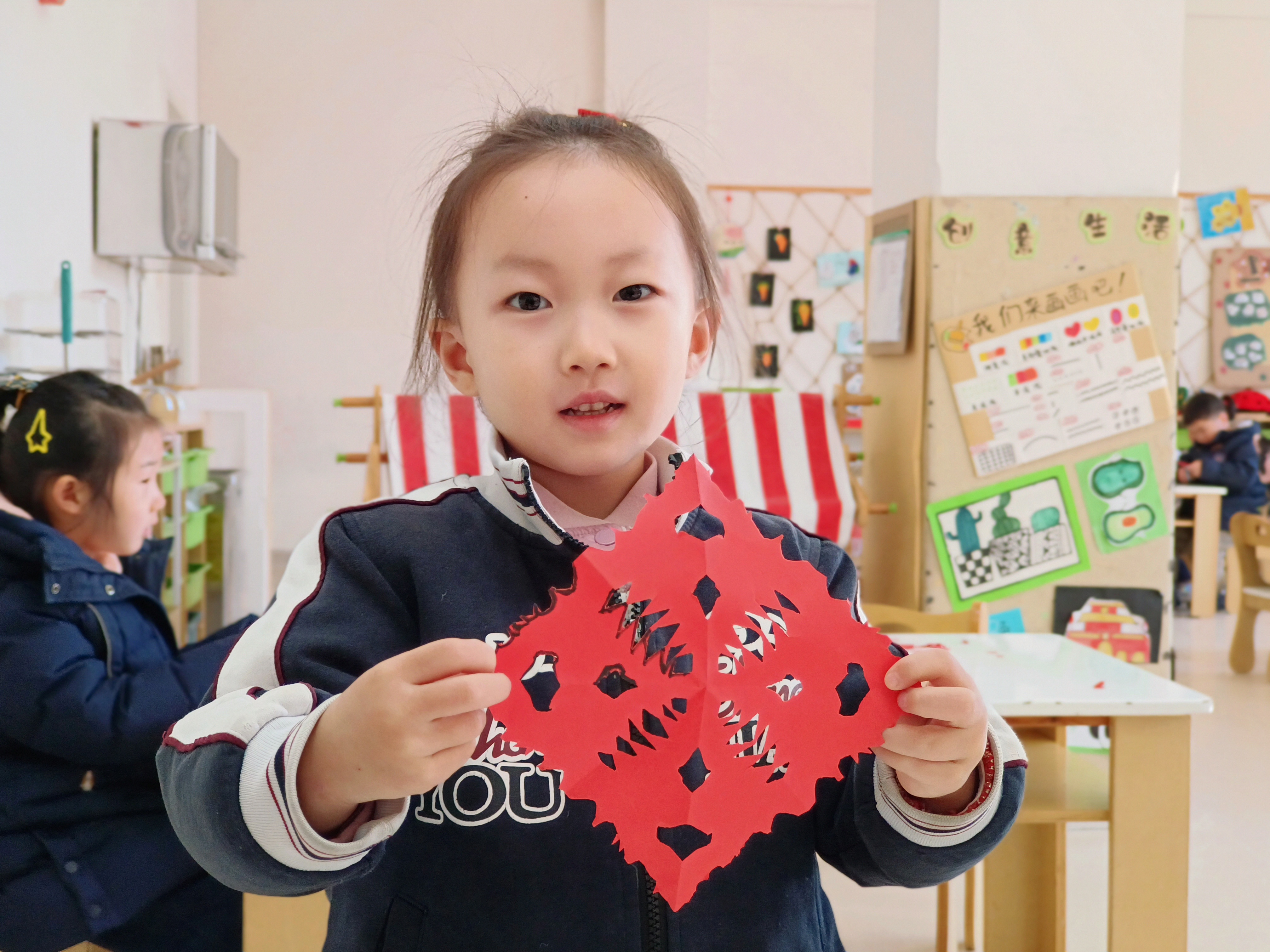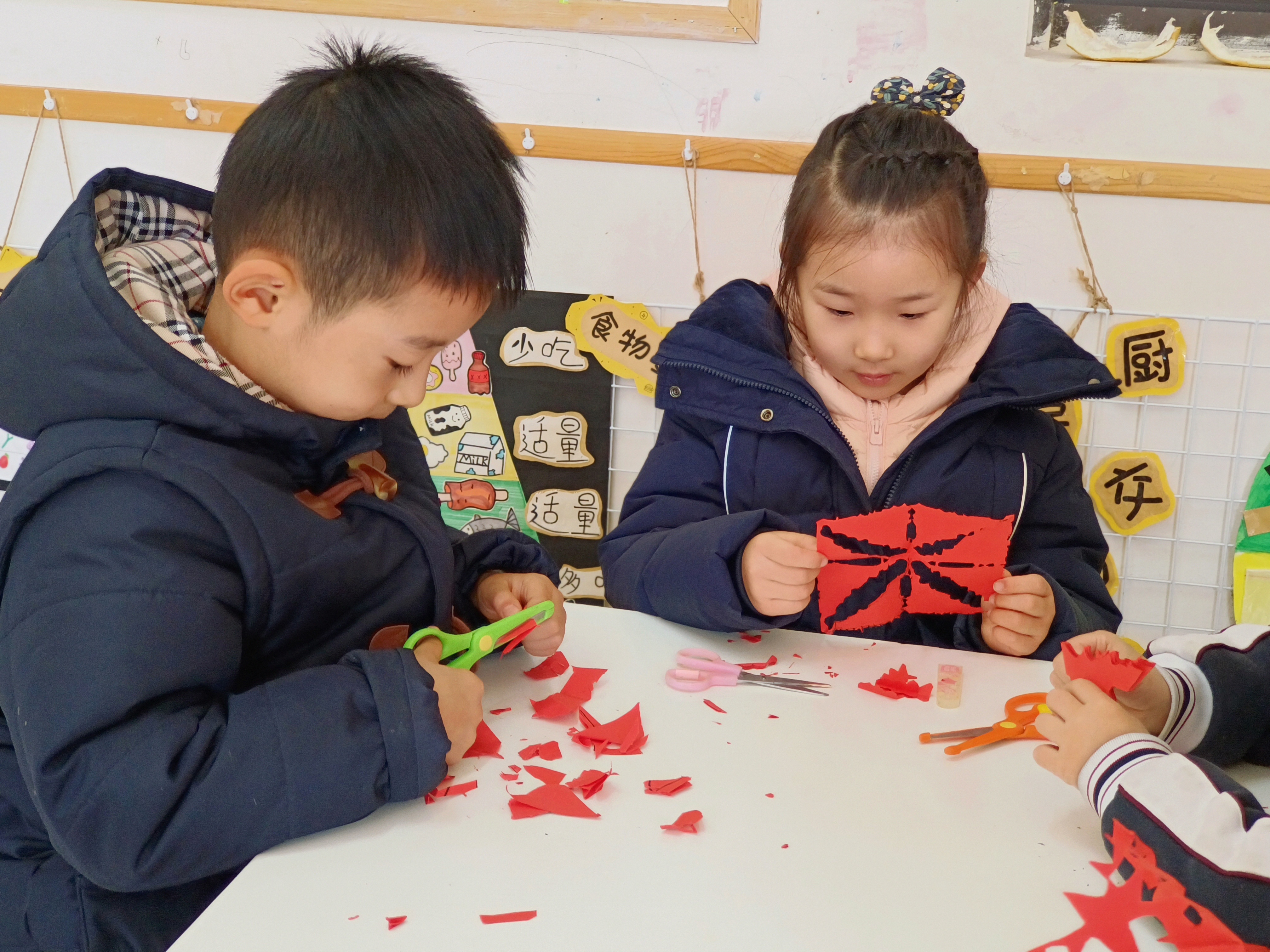 剪窗花是中国传统民间艺术,逢年过节,人们把漂亮的窗花贴在明亮的窗户上、门上、灯笼上,表达祈求丰衣足食、万事如意的淳朴愿望。孩子们也用稚嫩的小手用心裁剪,纸片飞舞间,造型各异、栩栩如生的图案展示在眼前,在腊八节的氛围中,提前感受年味儿的乐趣与喜悦。