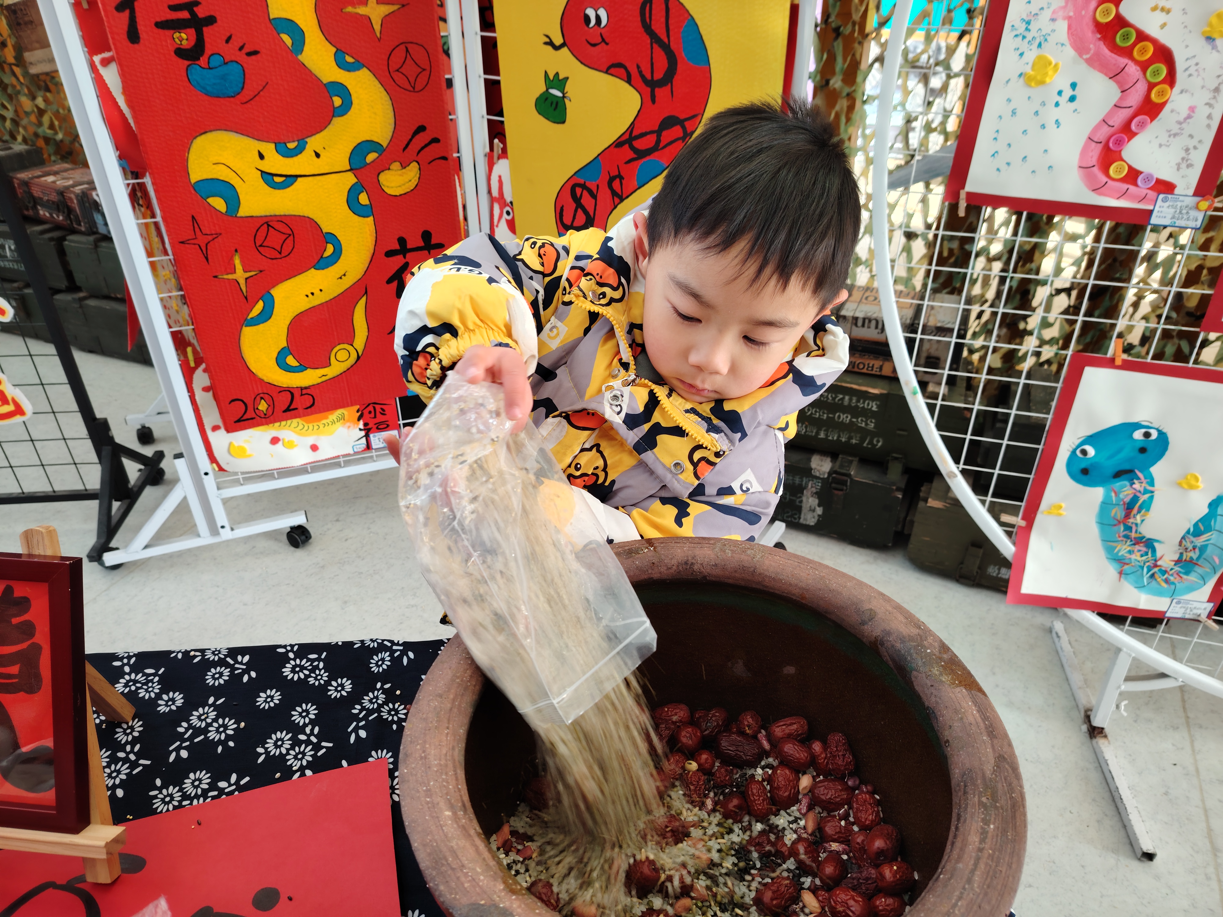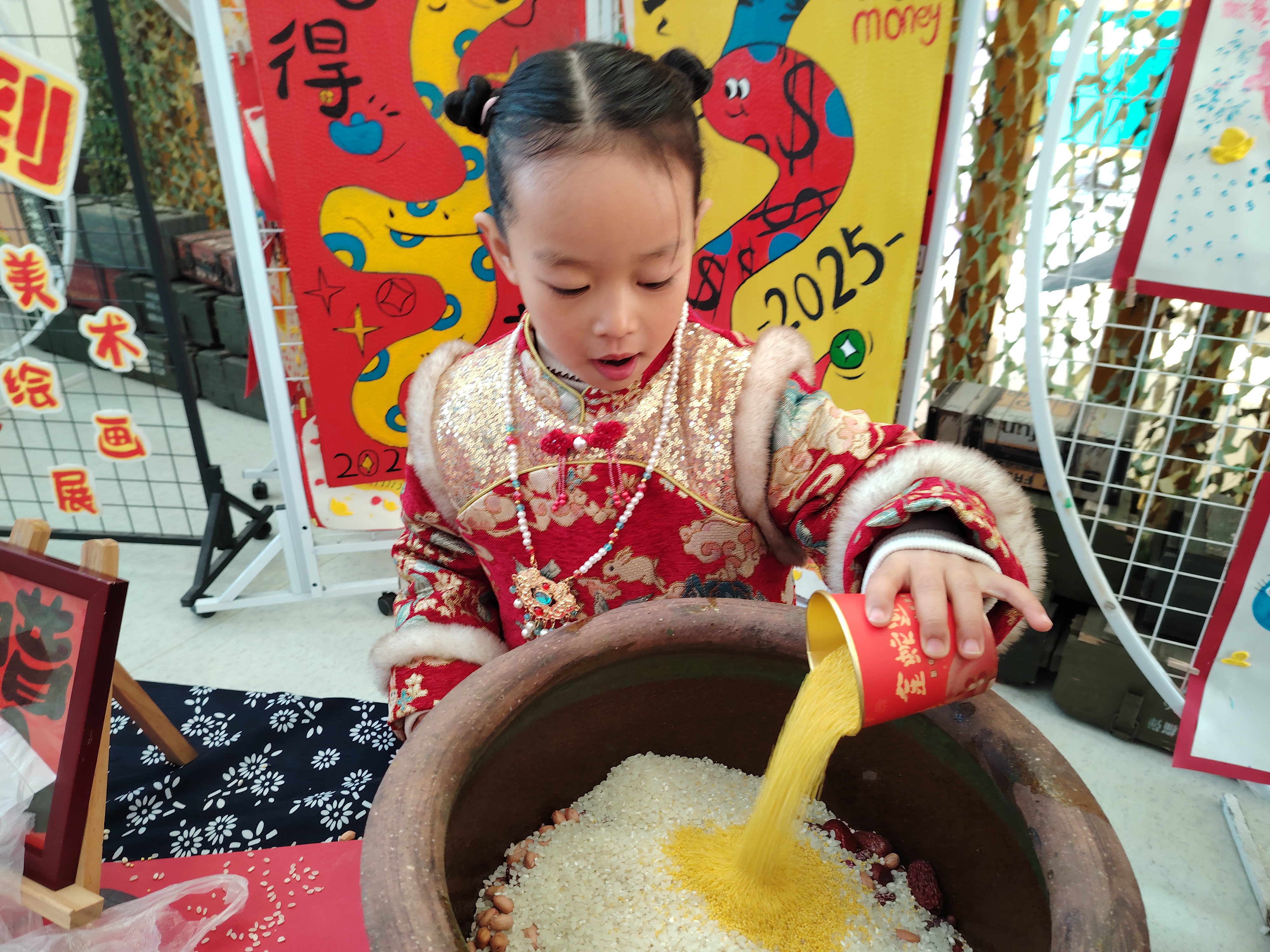 腊八这一天有吃腊八粥的习俗,幼儿园发起了“集百家米,纳百家福”的活动,古人云:一碗百家米,终身不发愁,入肚安五脏,百年病全丢。小朋友们带来各种食材,一起熬制与品尝;一碗碗甜糯的腊八粥里,有劳动的快乐与满足,也寄托着美好的希望与祝愿。