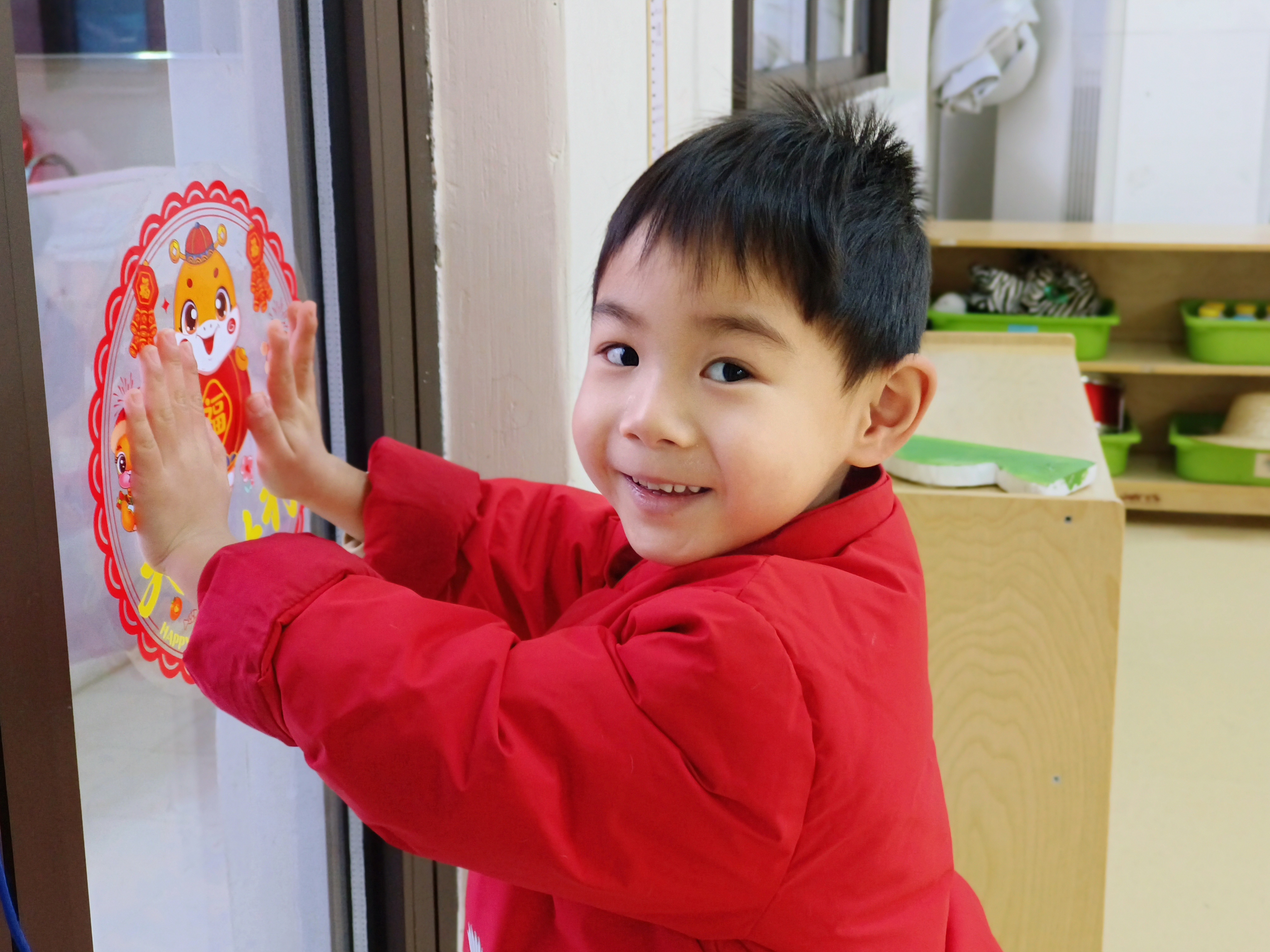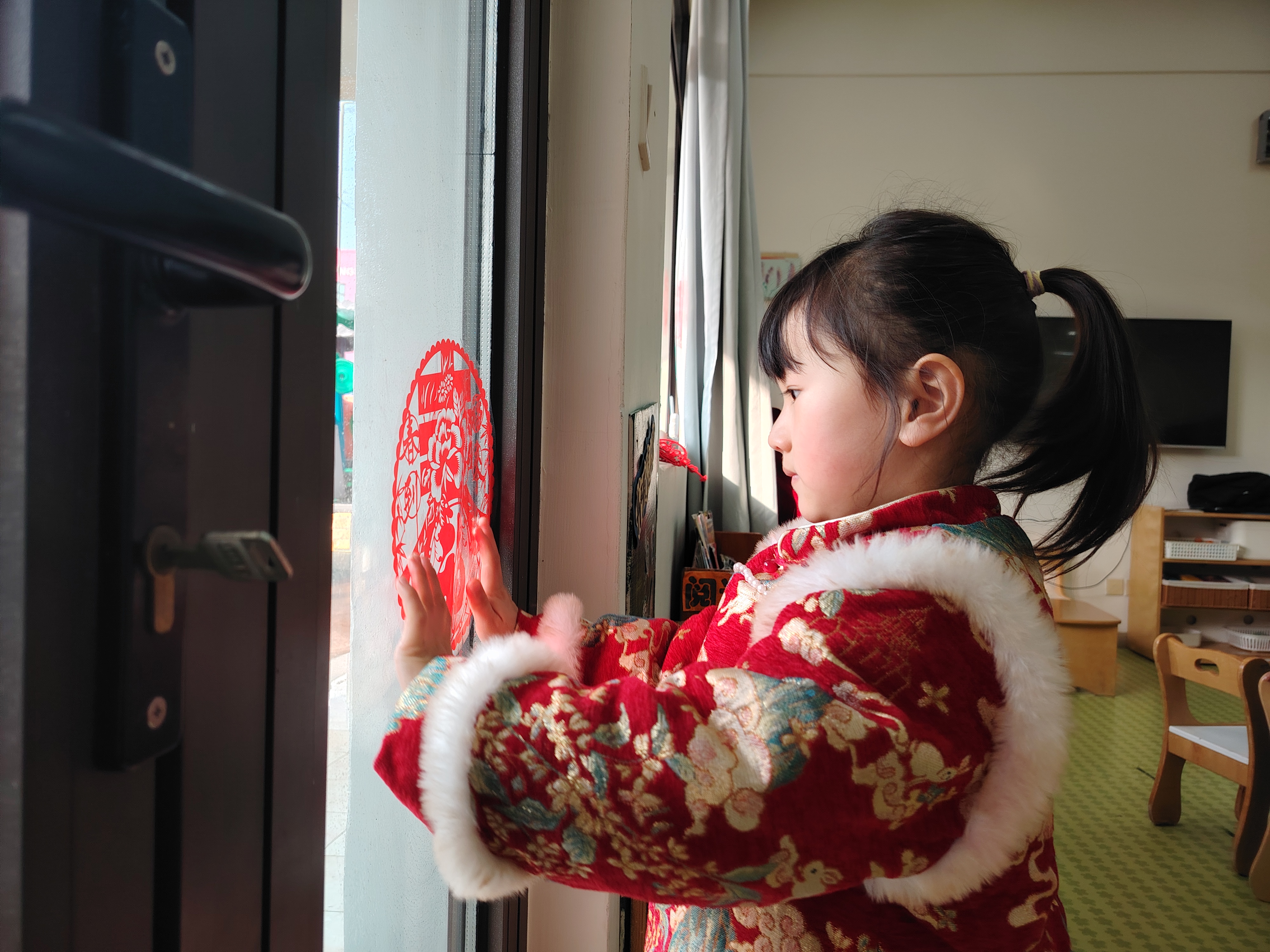 贴窗花:窗花贴上,年味儿就更浓啦!小朋友们喜气洋洋,迎接春节的到来。