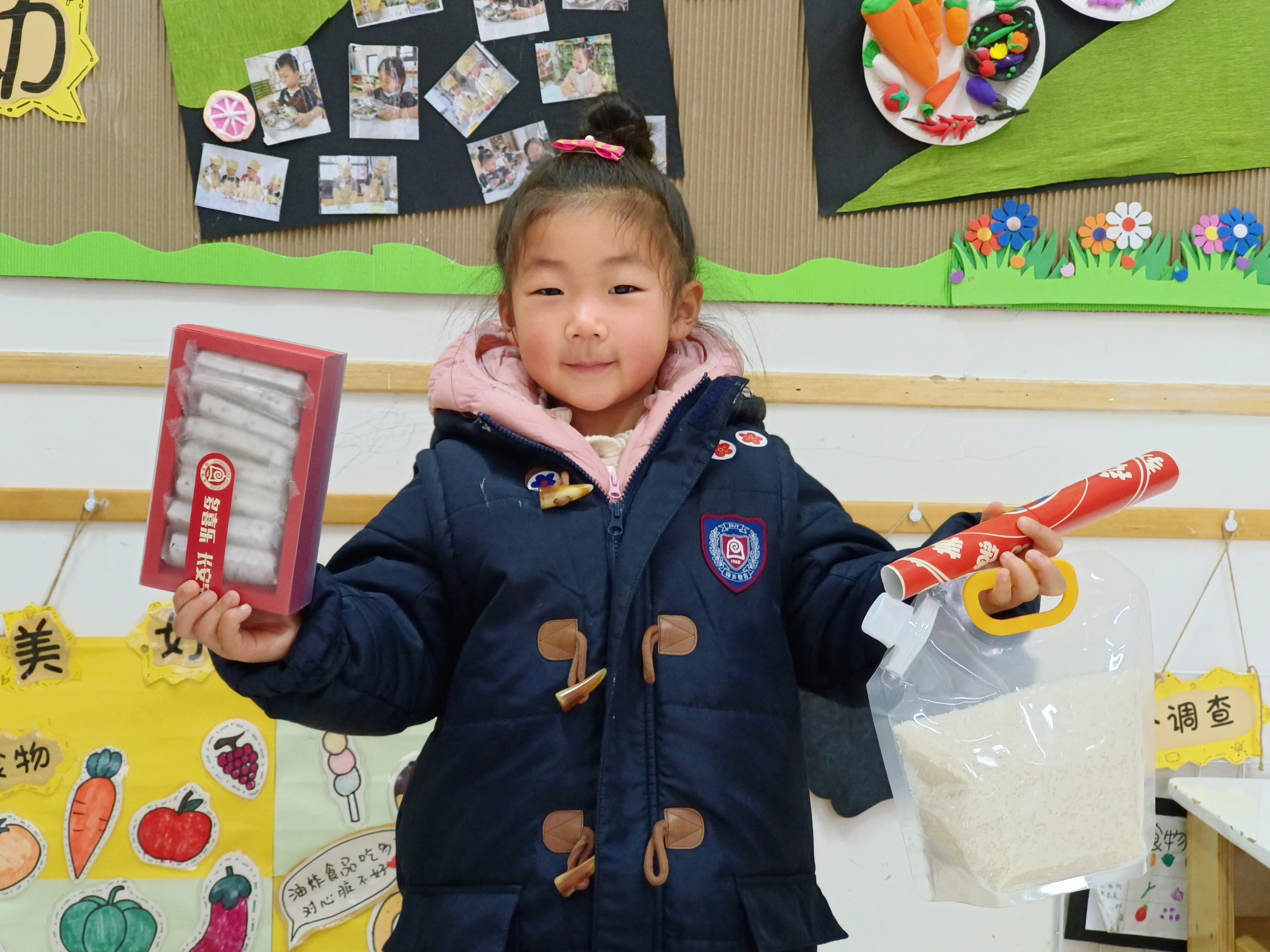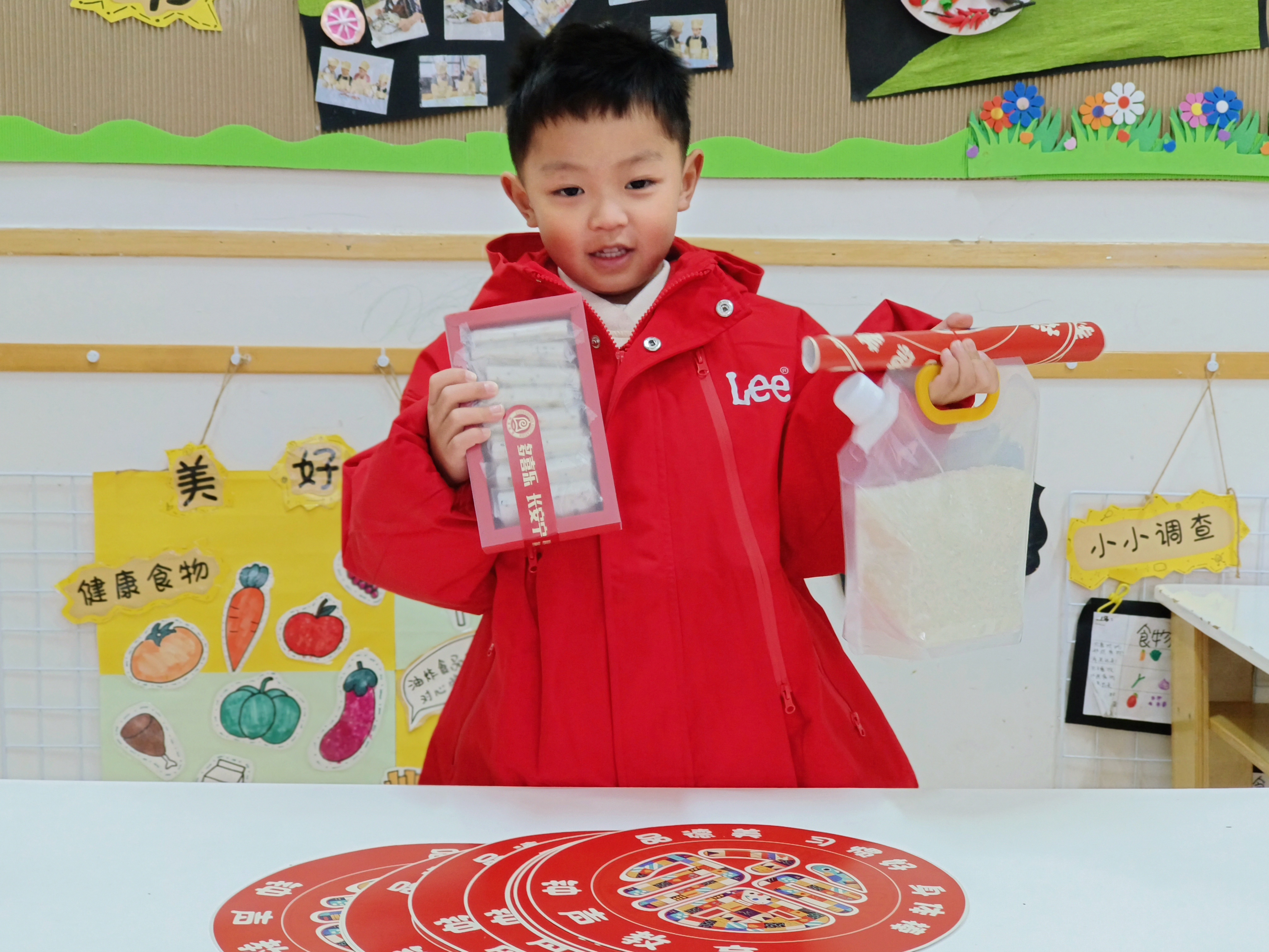 办年货:春节前,要把吃的、穿的、用的、玩儿的,所有的必需品准备好,您瞧:孩子们在幼儿园把年货也统统置办好啦!