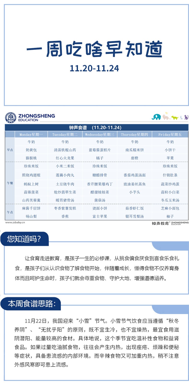 一周吃啥早知道丨钟声红色幼儿园食谱分享