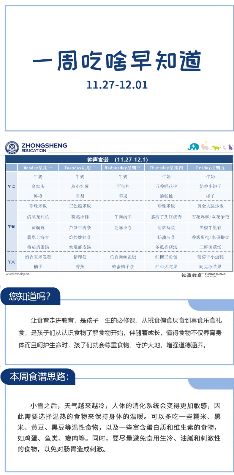 一周吃啥早知道丨钟声红色幼儿园食谱分享