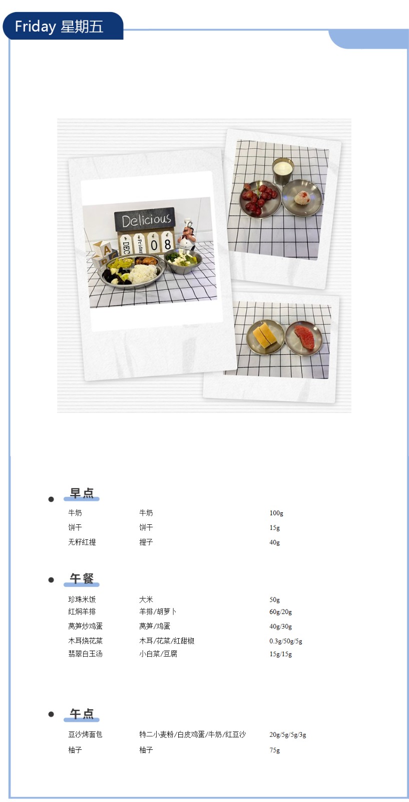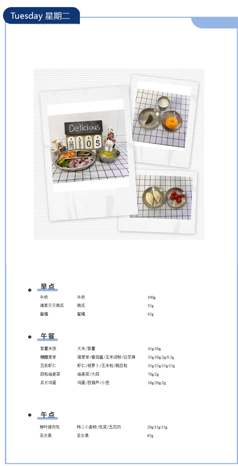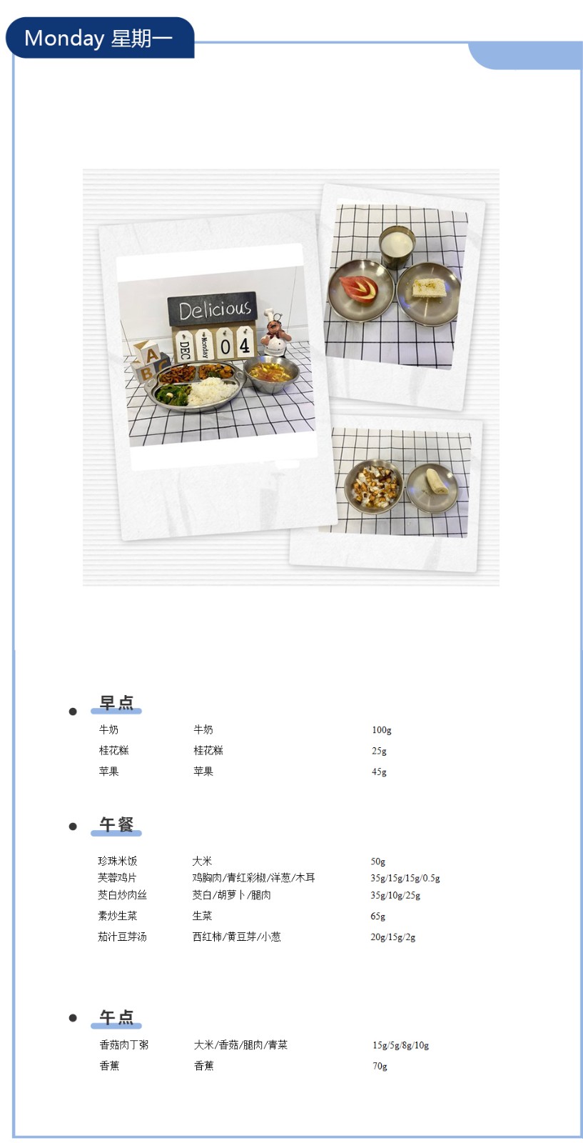 一周吃啥早知道丨钟声红色幼儿园食谱分享