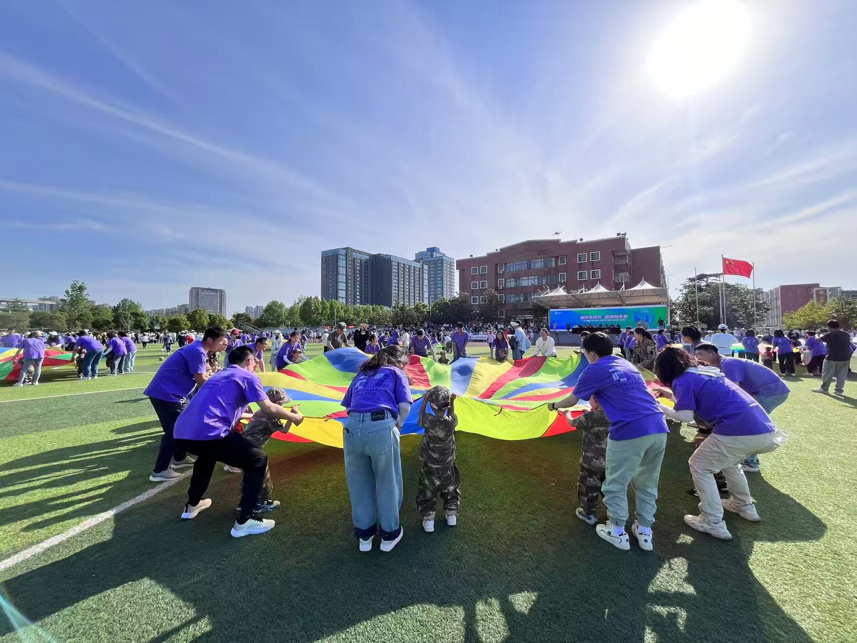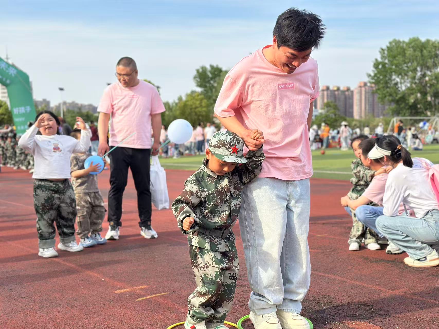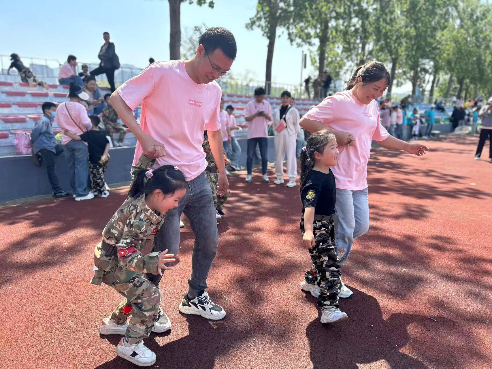 赛场上,亲子们齐心协力,共同迎接挑战。瞧那大手牵小手,共同穿越障碍的身影;看那亲子默契配合,在游戏中奋勇争先的模样。无论是家长还是孩子,都全身心投入,汗水与欢笑交织,共同谱写着运动的欢快旋律。那一张张洋溢着幸福的脸庞,展现出亲子间深厚的情感联结,也彰显了团结协作、勇于拼搏的精神。