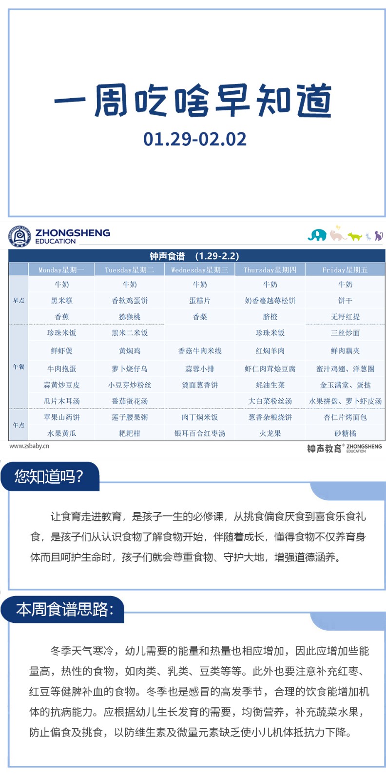 一周吃啥早知道 | 钟声红色幼儿园食谱分享