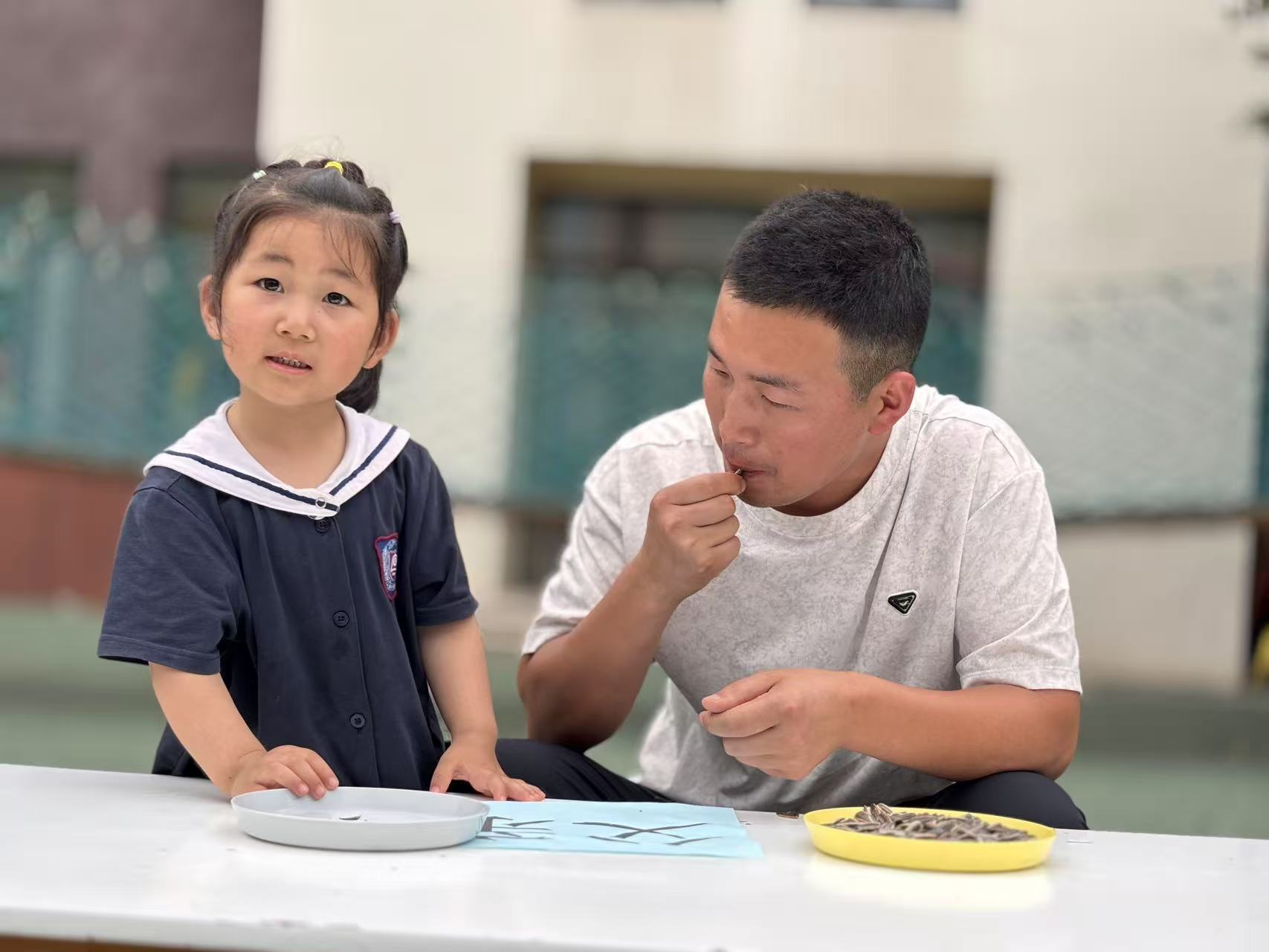 剥瓜子时,大手教小手拆解生活的纹理;喂西瓜瞬间,童真与宽厚的手掌完成爱的对接;牵手漫步,脚步丈量的不只是操场,更是陪伴的长度。