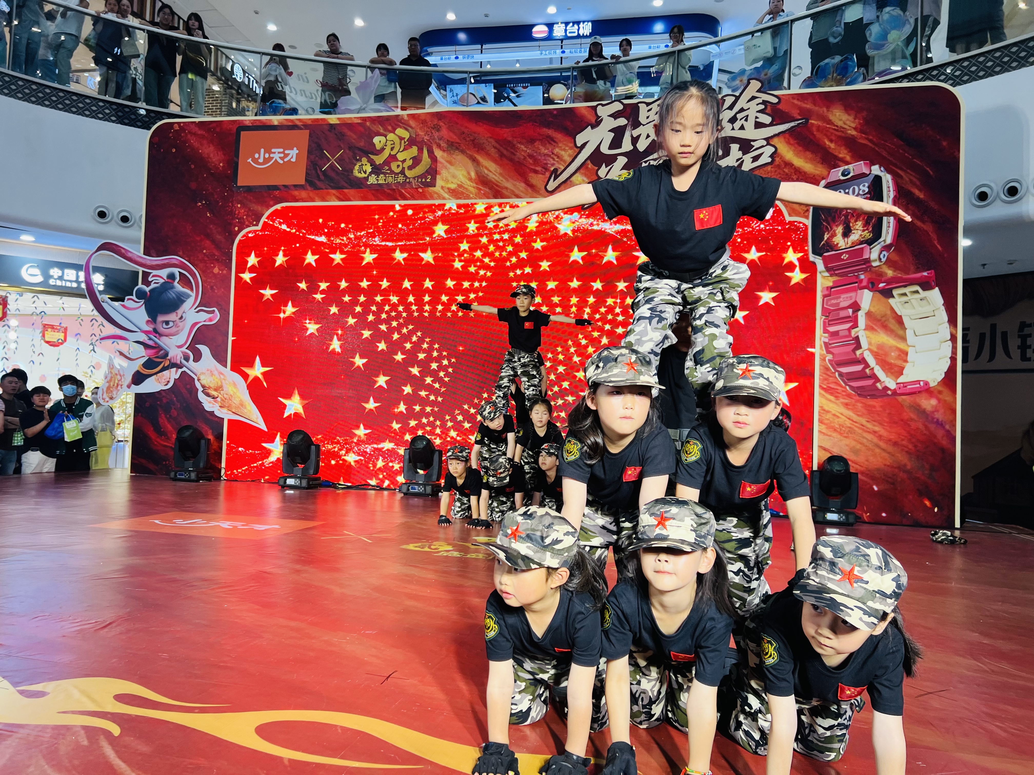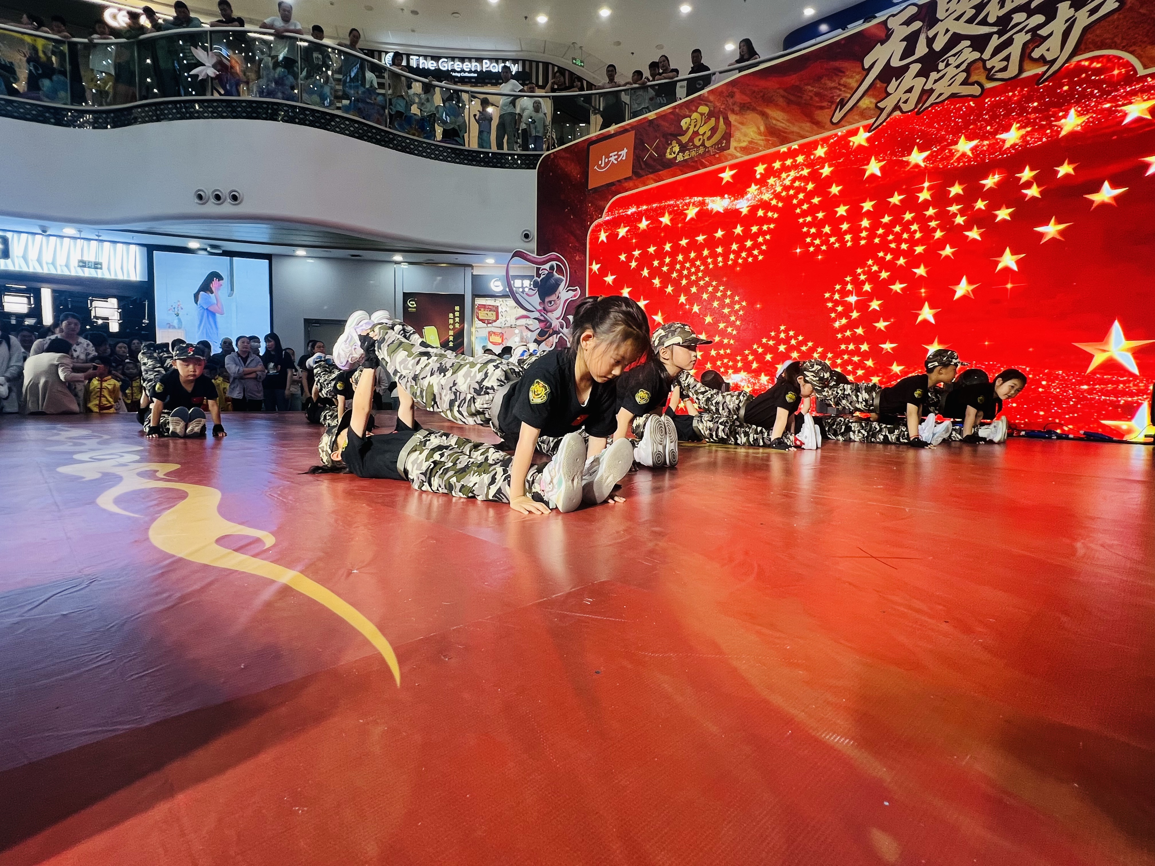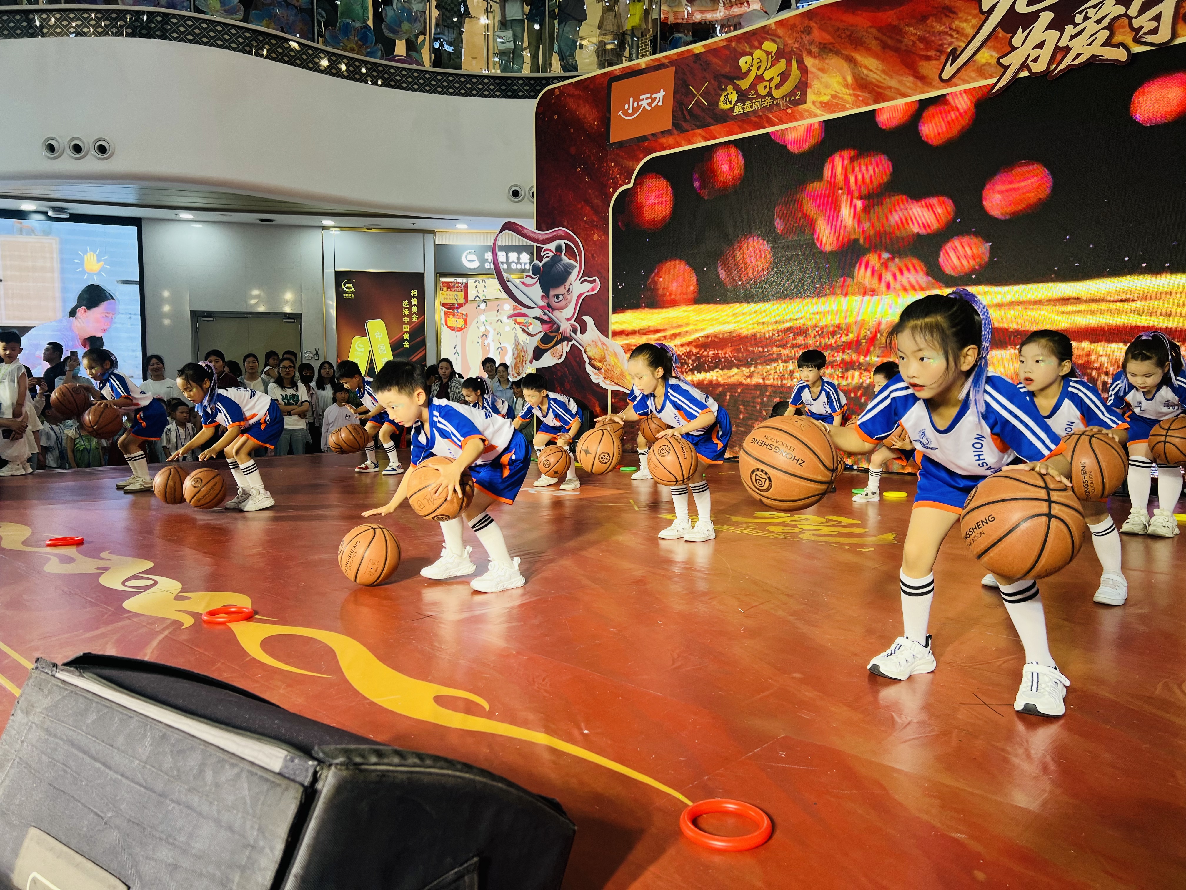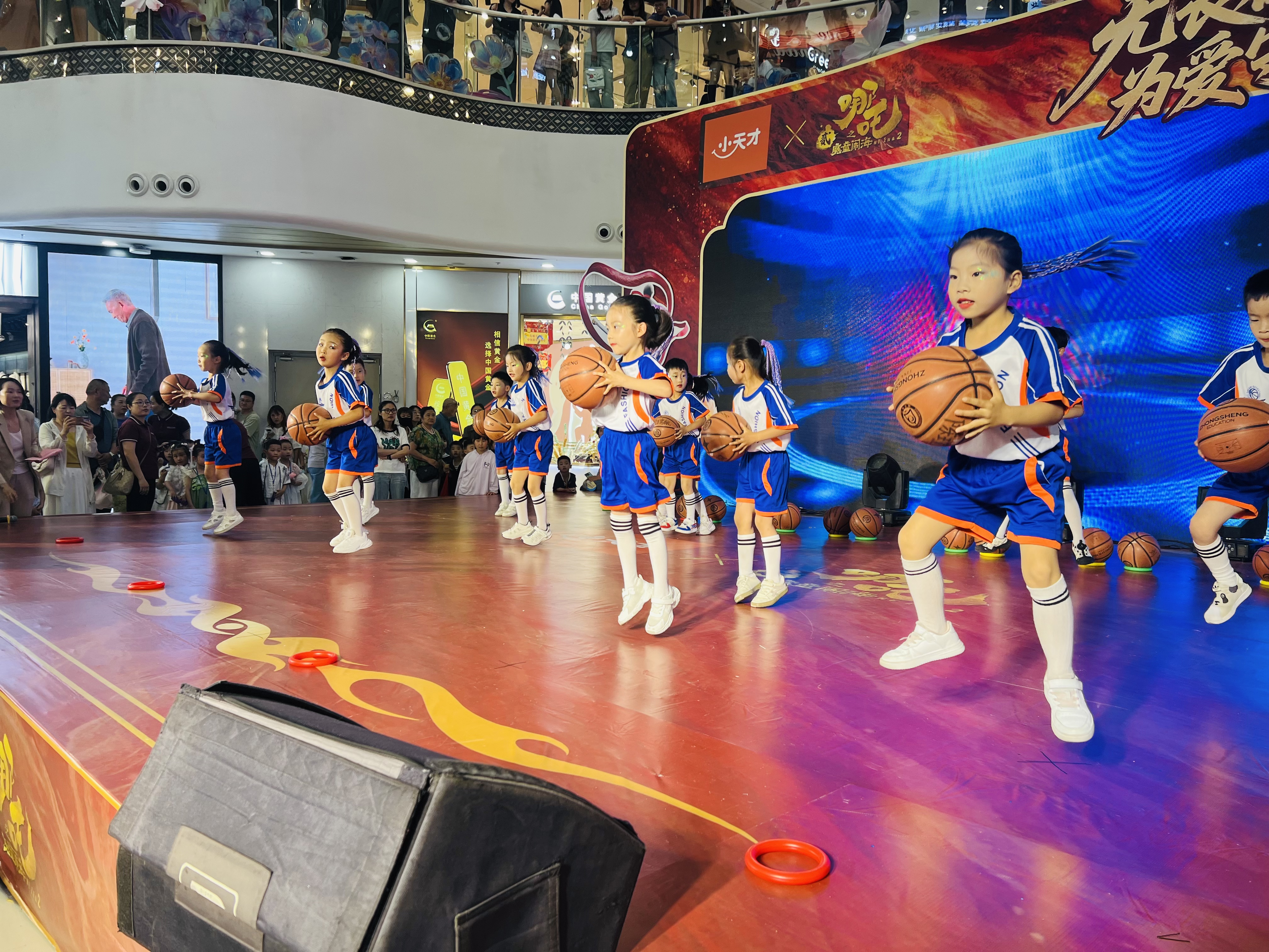 活动中,红色园宝贝展示了架子鼓、篮球操、体适能等节目,孩子们精彩的表演一度惊艳到万达广场的观众,他们精湛的球技、团队间的默契、自信的脸庞,无一不在诠释着钟声孩子健康向上的模样。今夜的我们,是万达最闪耀的明星!