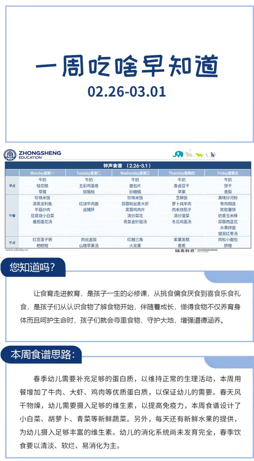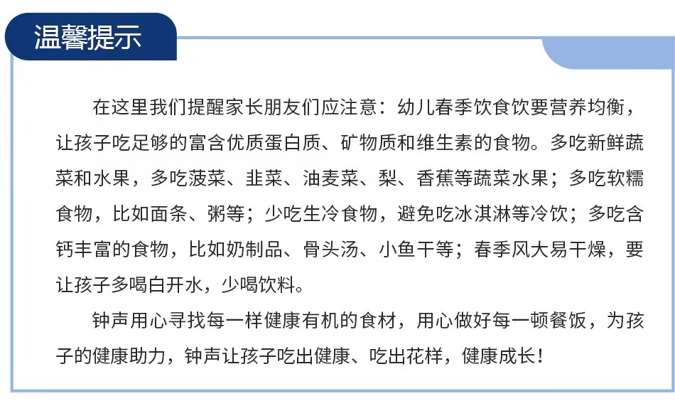 一周吃啥早知道 | 钟声红色幼儿园食谱分享
