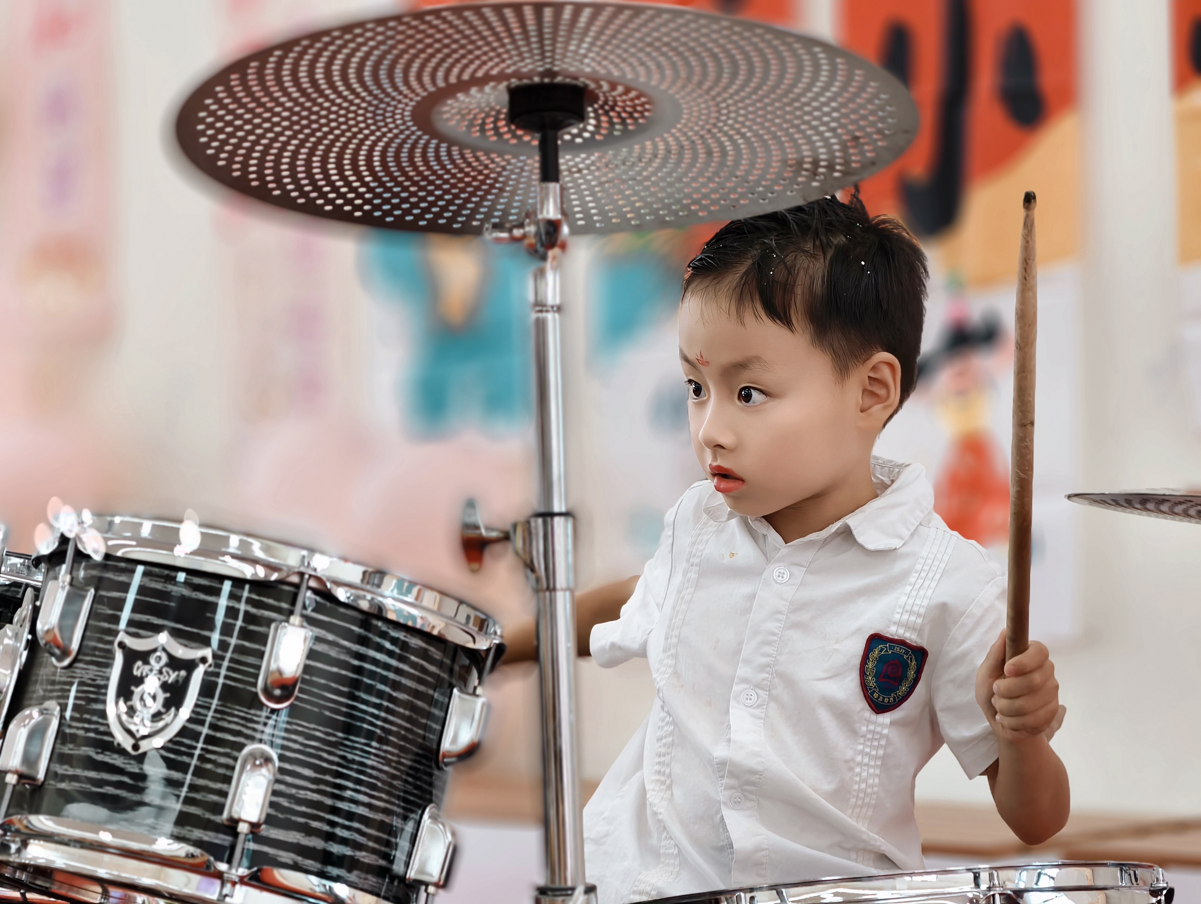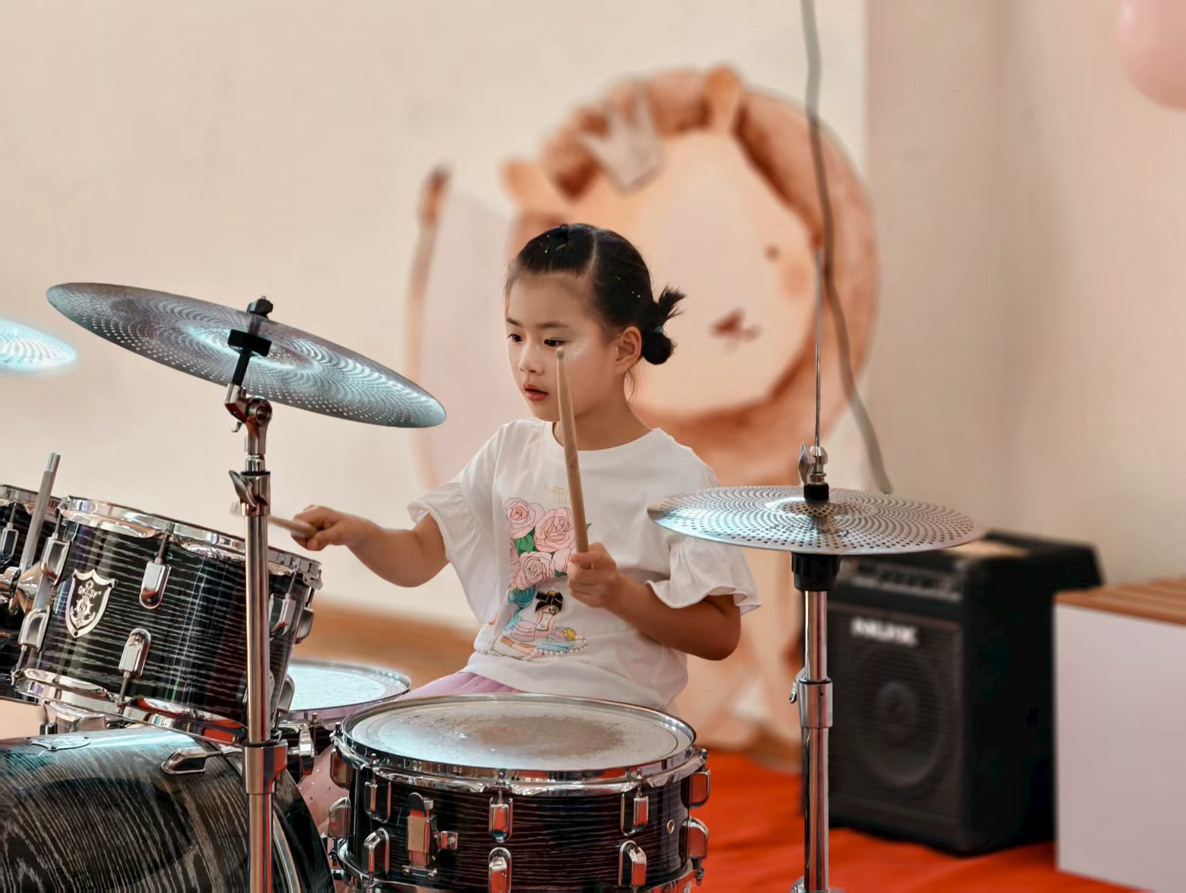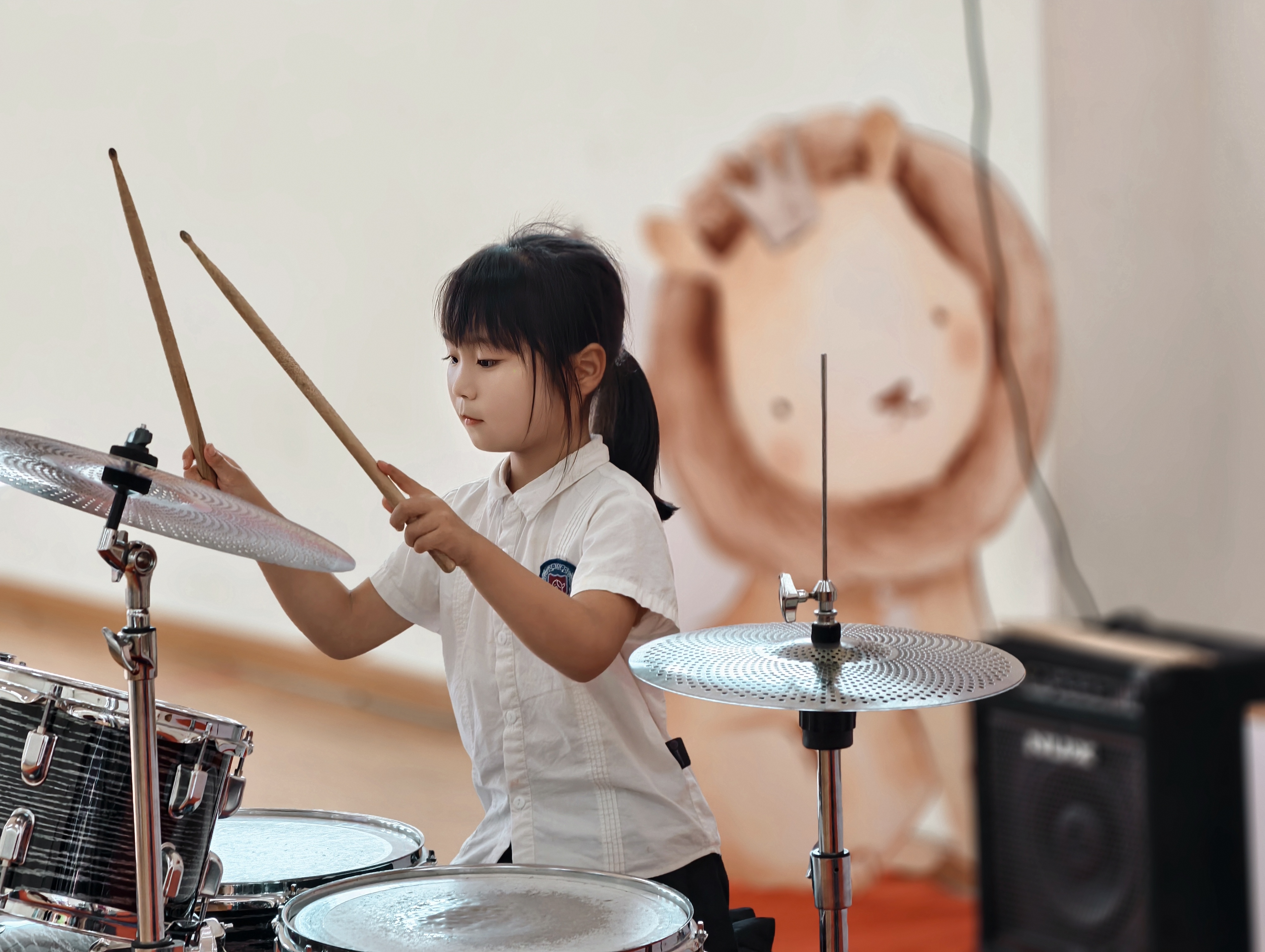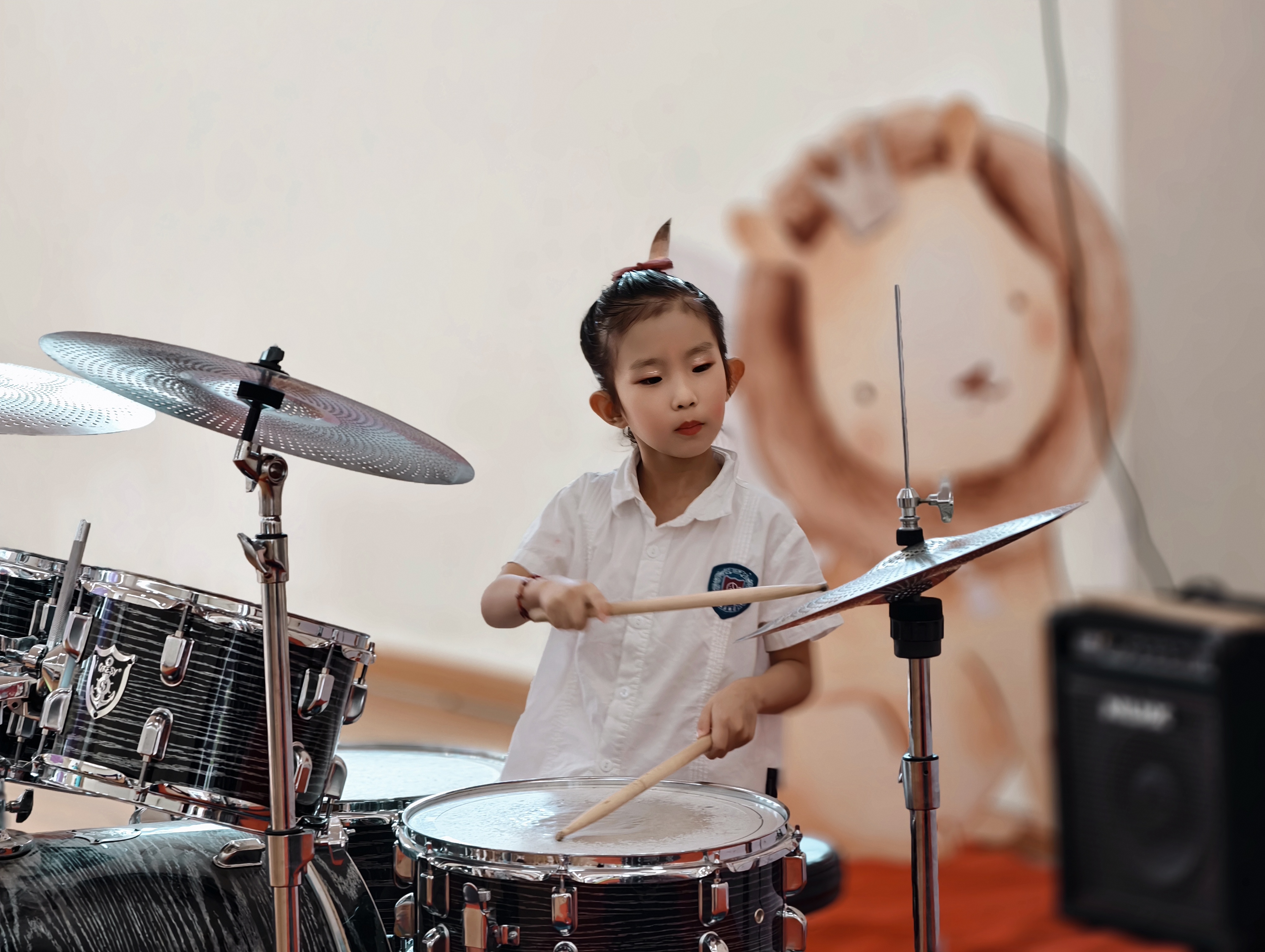 音乐一响,小鼓手瞬间上线!肉嘟嘟的小手挥舞鼓棒,眼神亮晶晶满是自信,敲击的每个节奏都充满童趣与活力。从生涩到流畅,宝贝们在鼓点中学习与成长,积累经验与才艺;此刻舞台上的小身影,是爸爸妈妈和老师心中最璀璨的星星!