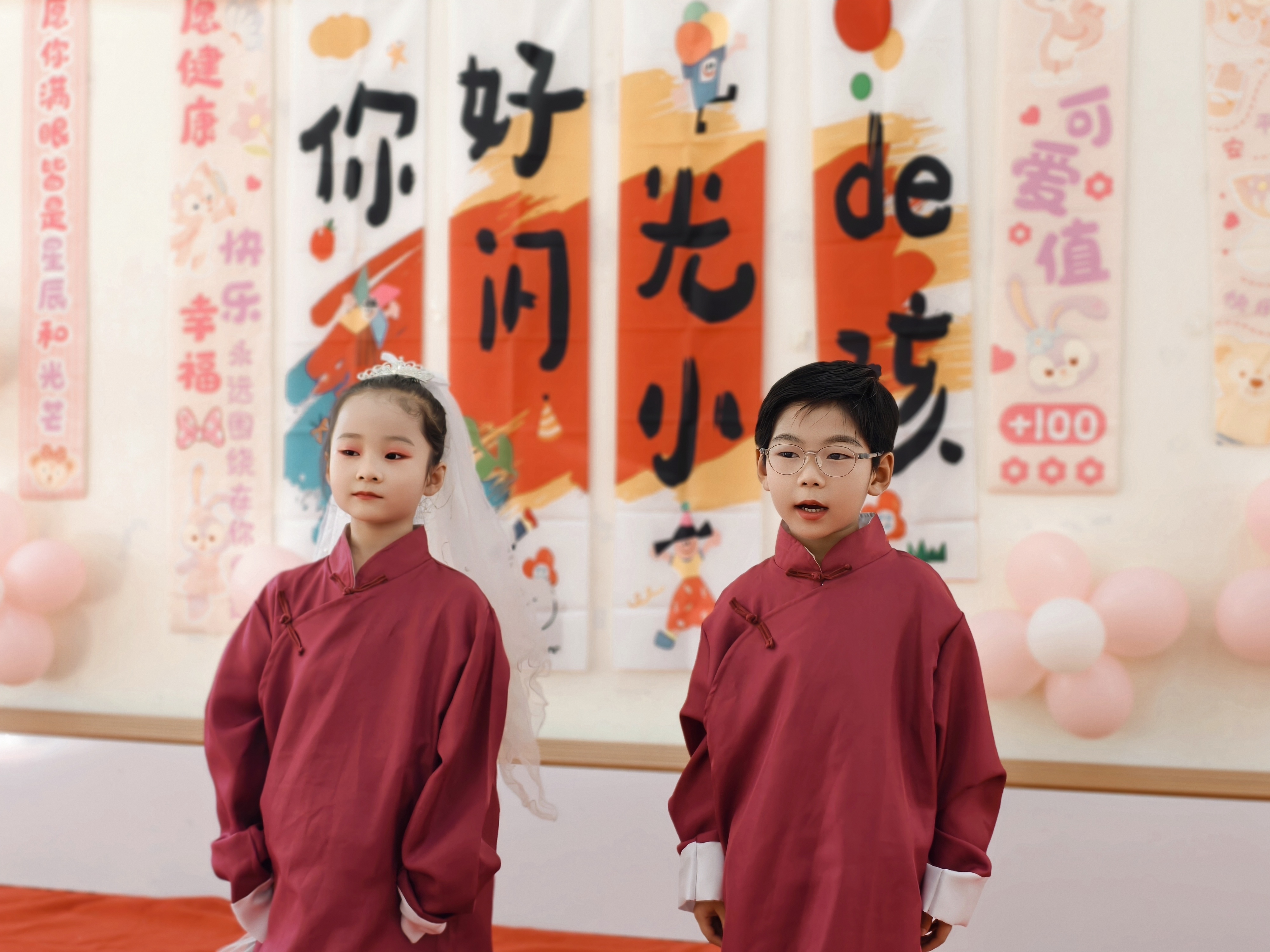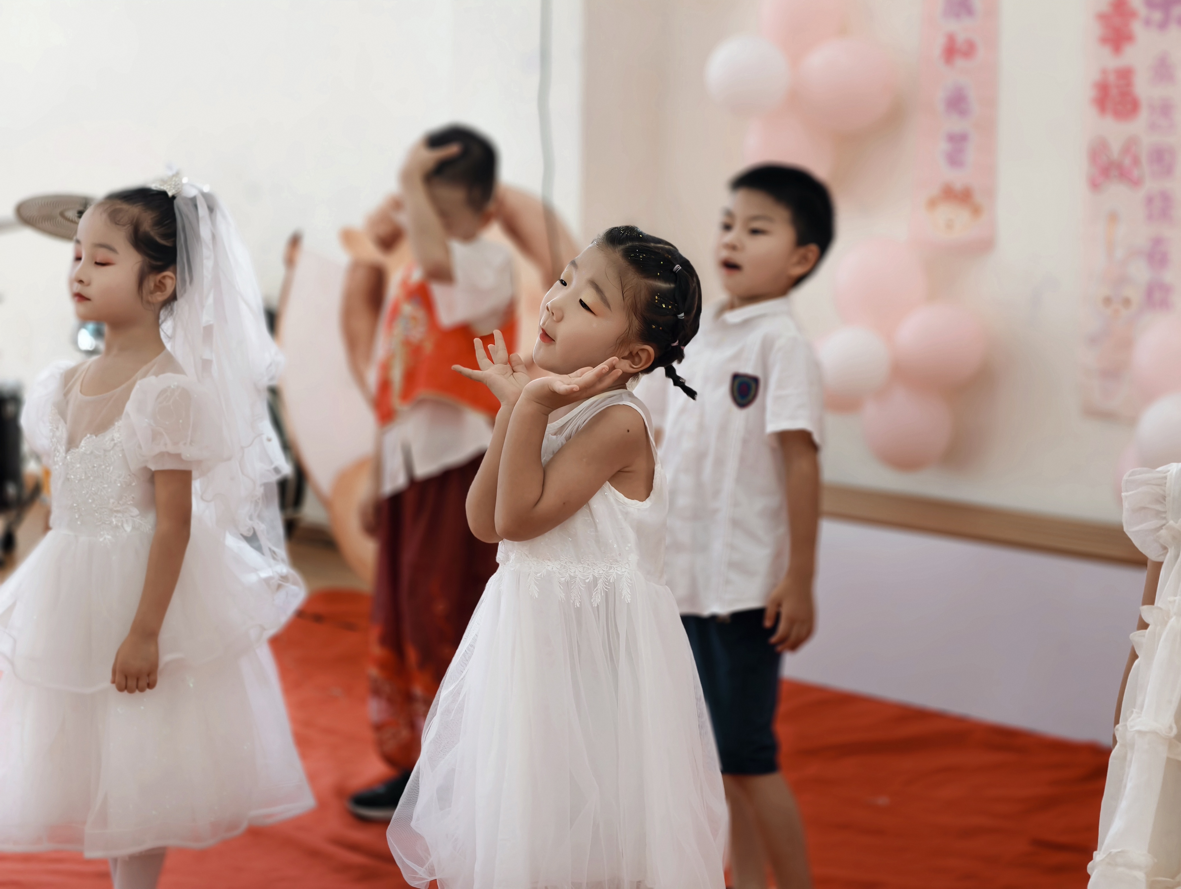 孩子们在学期汇报活动中的精彩瞬间。
