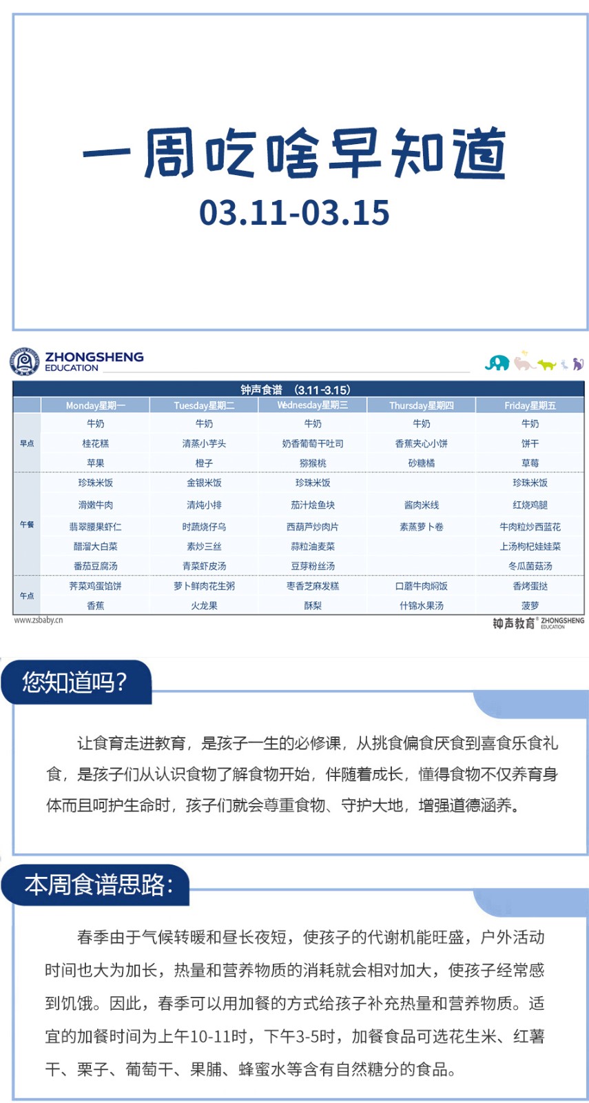一周吃啥早知道 | 钟声红色幼儿园食谱分享