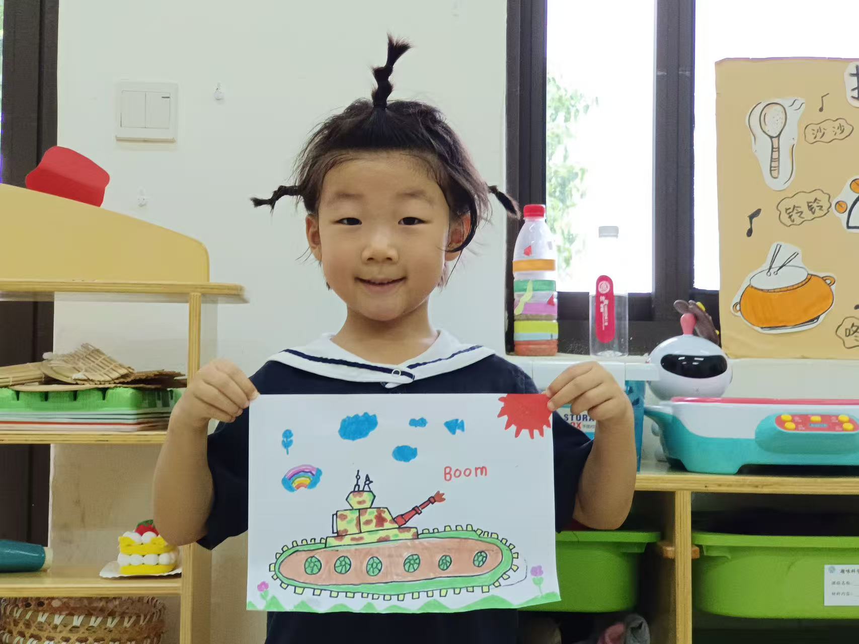在八一建军节之际,幼儿园里开展了一场特别的创意美术活动,孩子们用画笔致敬最可爱的人。