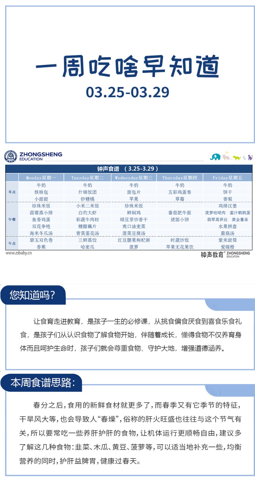 一周吃啥早知道 | 钟声红色幼儿园食谱分享