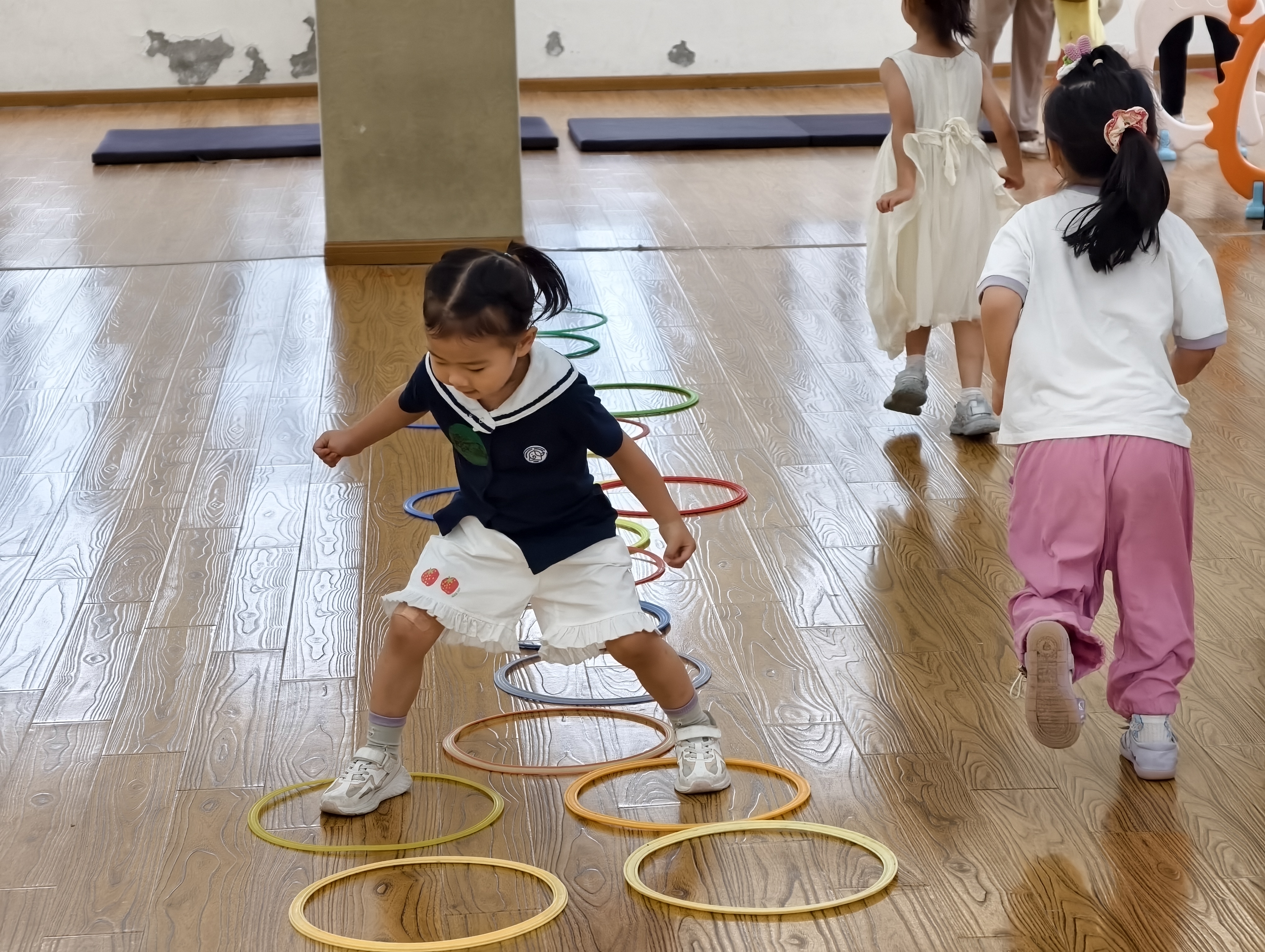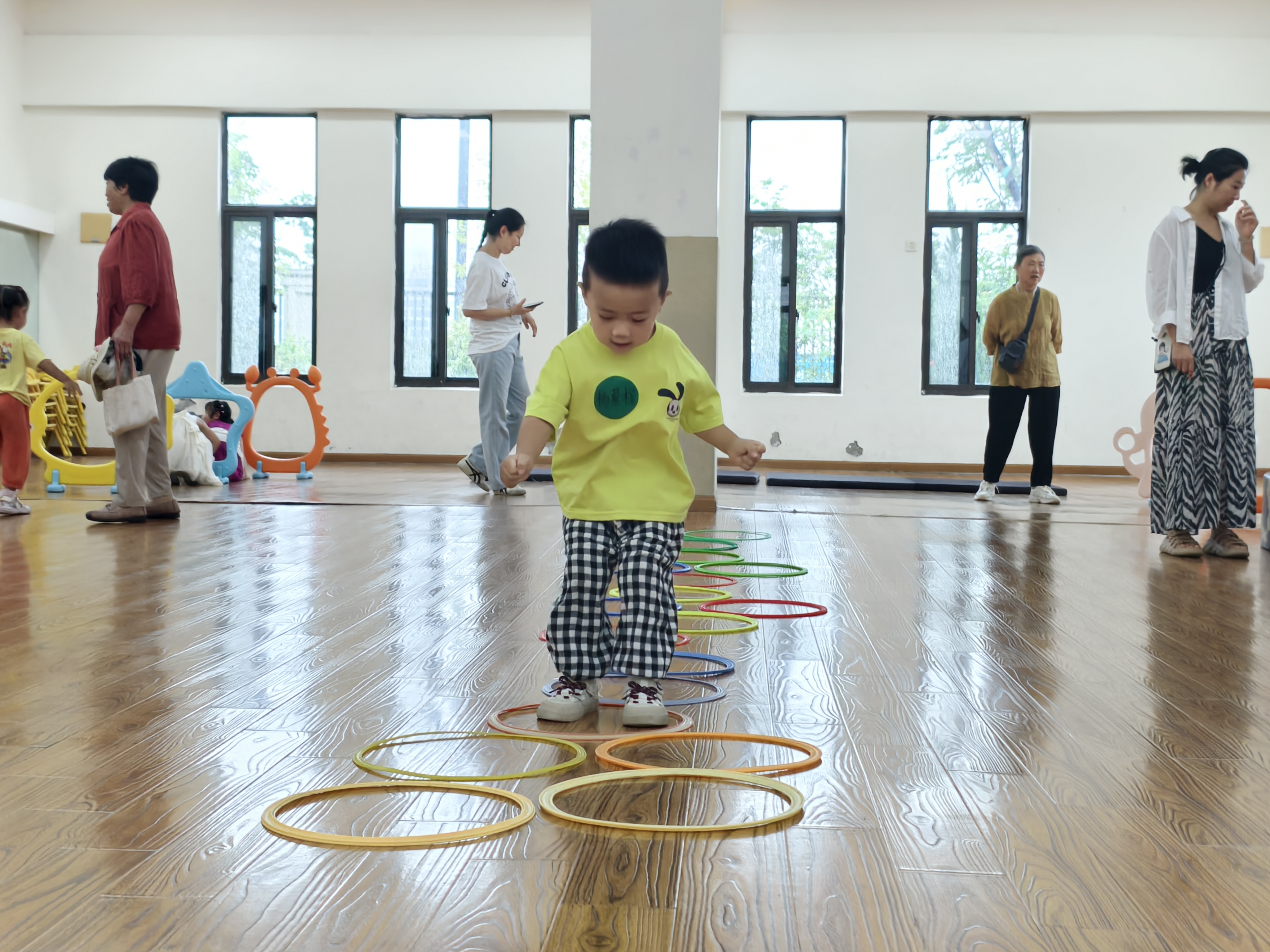 晨间活动时,孩子们在老师引导下,蹦蹦跳跳玩着感统器材,他们有序排起小队,依次开启闯关模式,时而俯身钻爬,时而快步奔跑,时而纵身跳跃,清脆的笑声随着动作此起彼伏,把清晨的朝气洒遍每个角落。