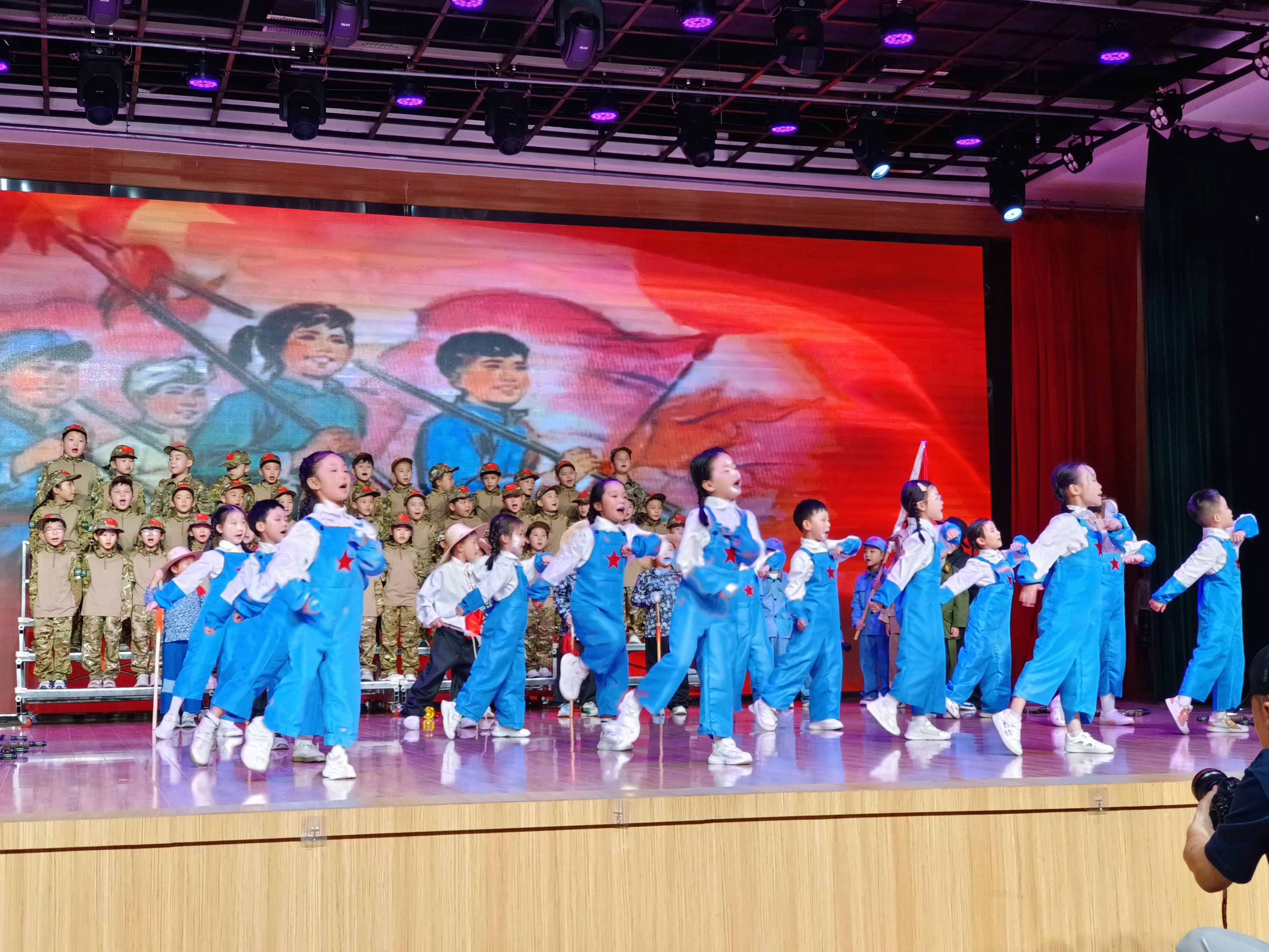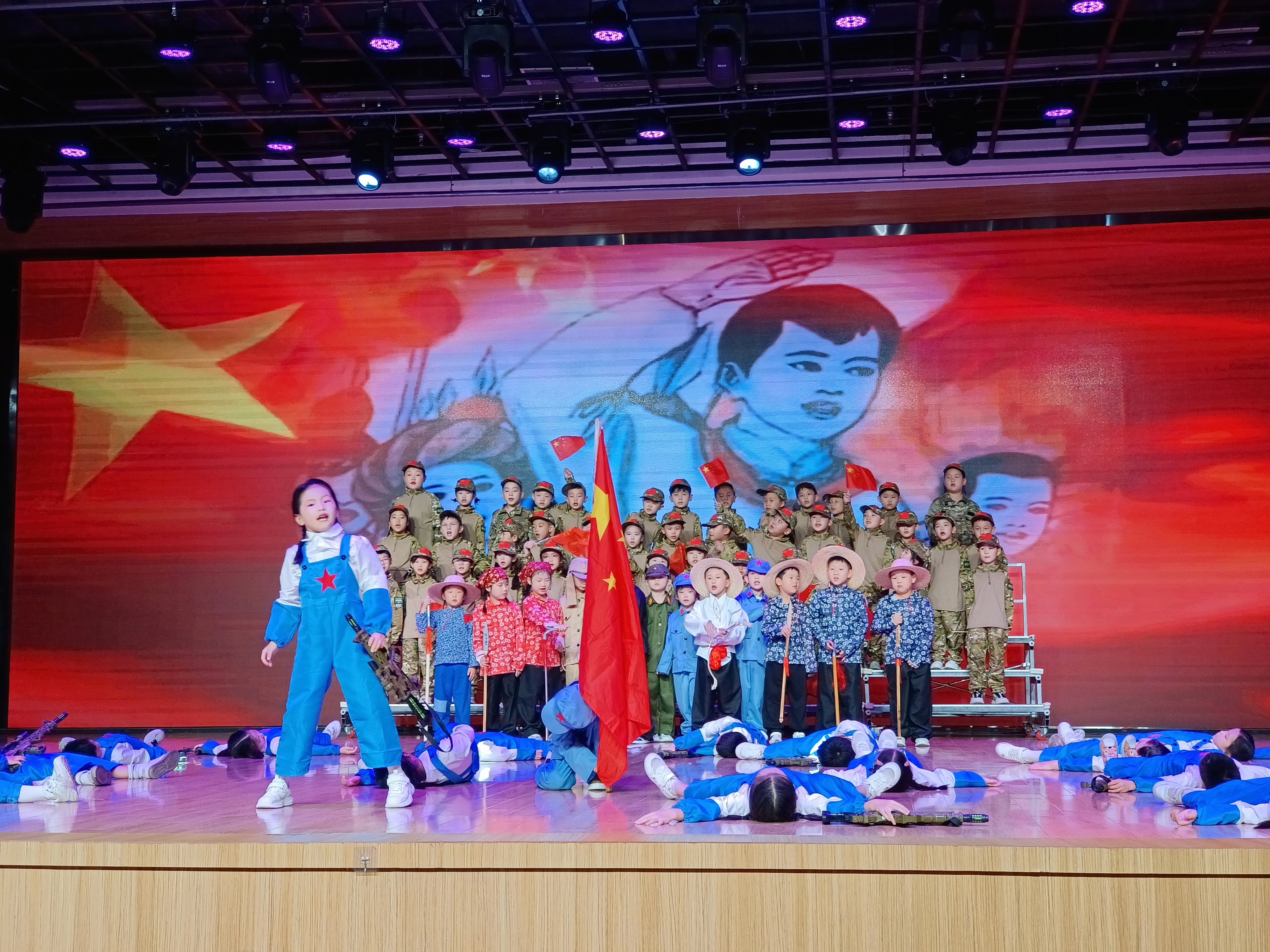 红色主题表演,厚植爱国情怀,孩子们身着红军服,用稚嫩却坚定的动作与歌声,重现革命岁月的热血与荣光,爱国的种子在心底悄然扎根。
