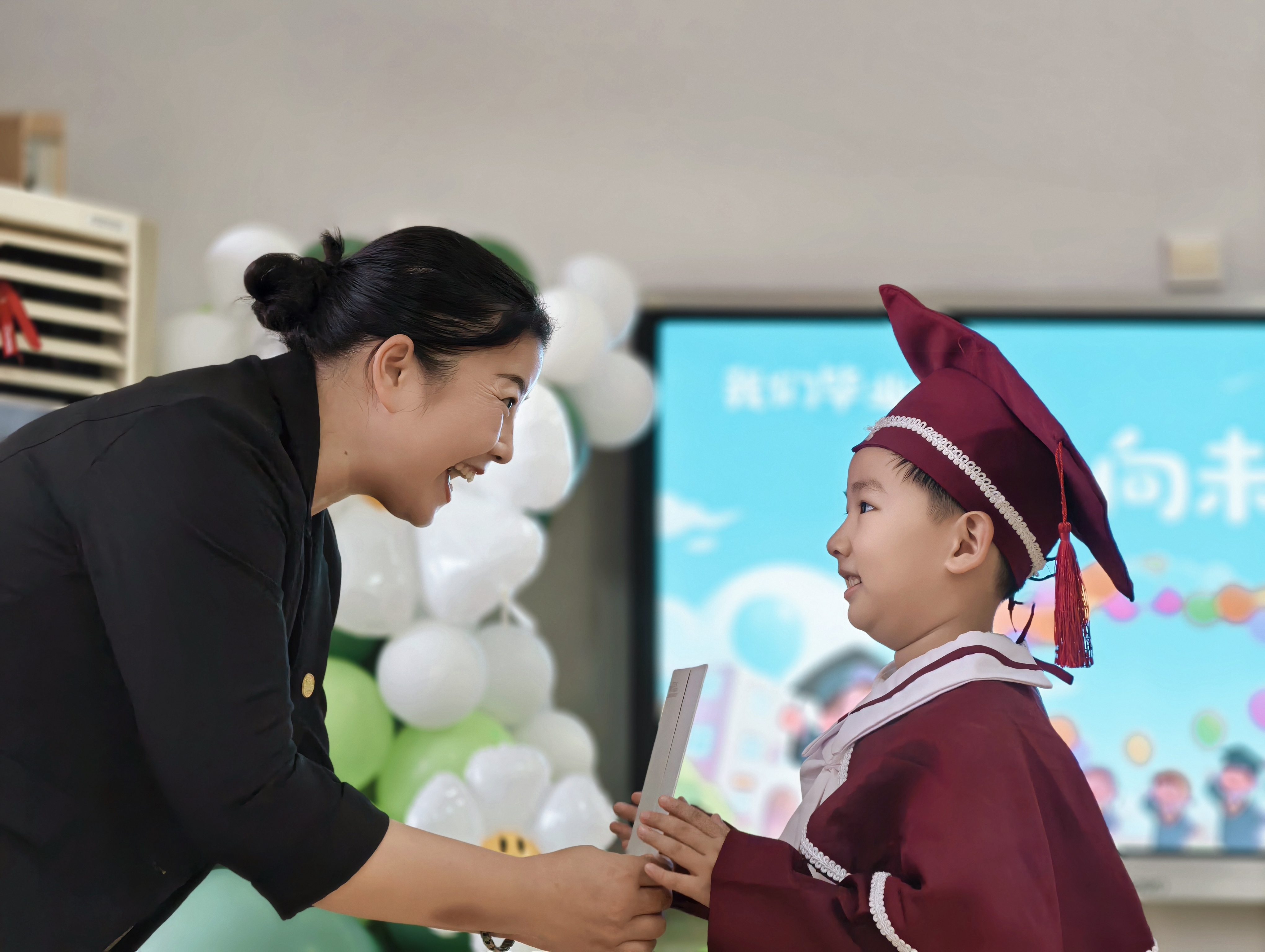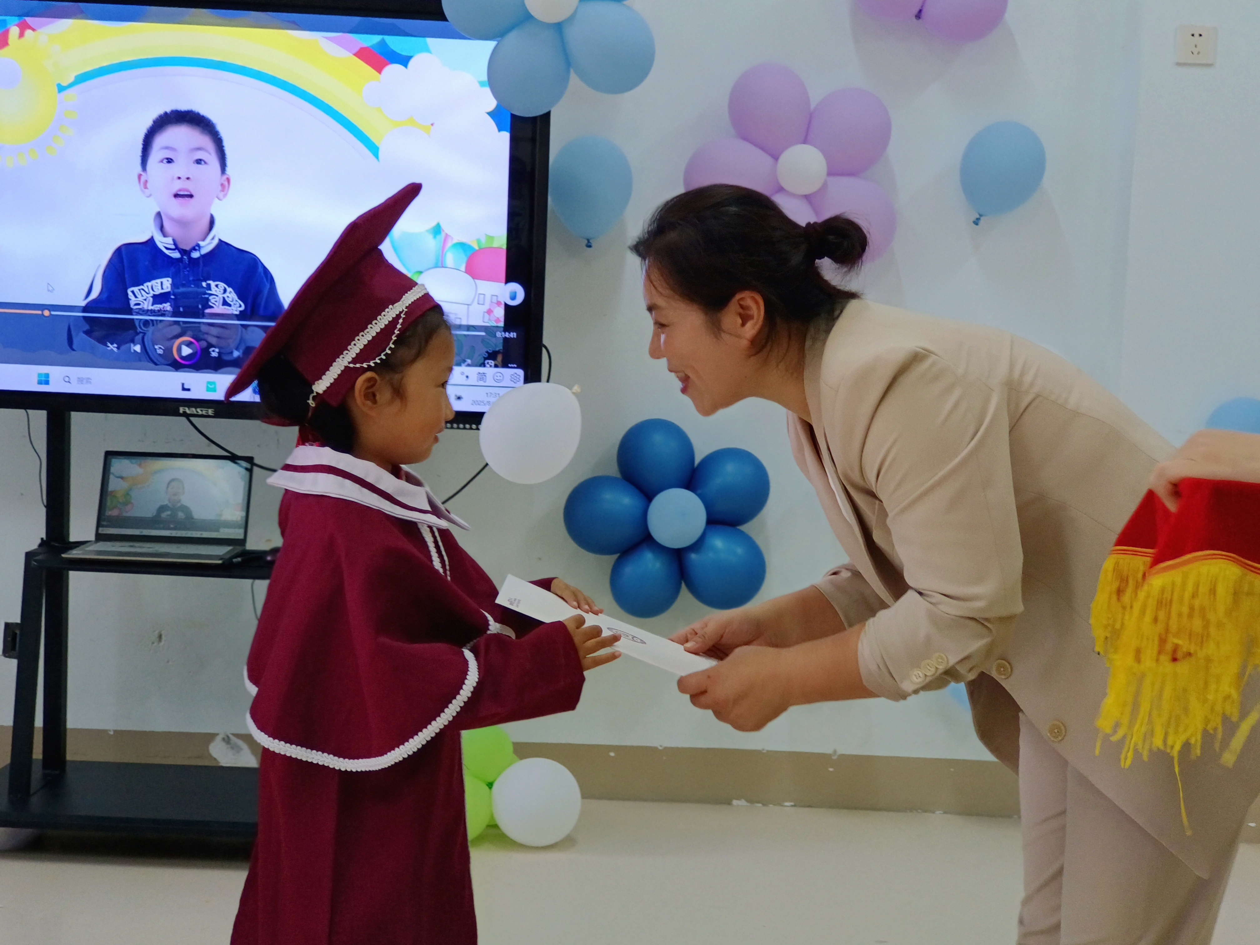 最后,孩子们穿上“小博士服”,从园长妈妈手中郑重接过毕业证书。小小的证书,是幼儿园生活的圆满句点,更是未来探索之旅的崭新起点。