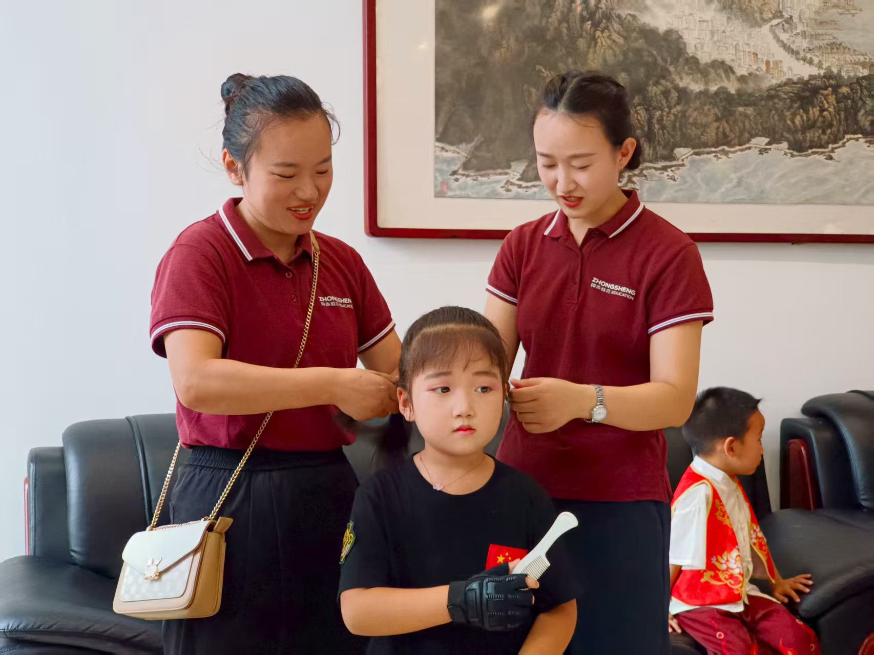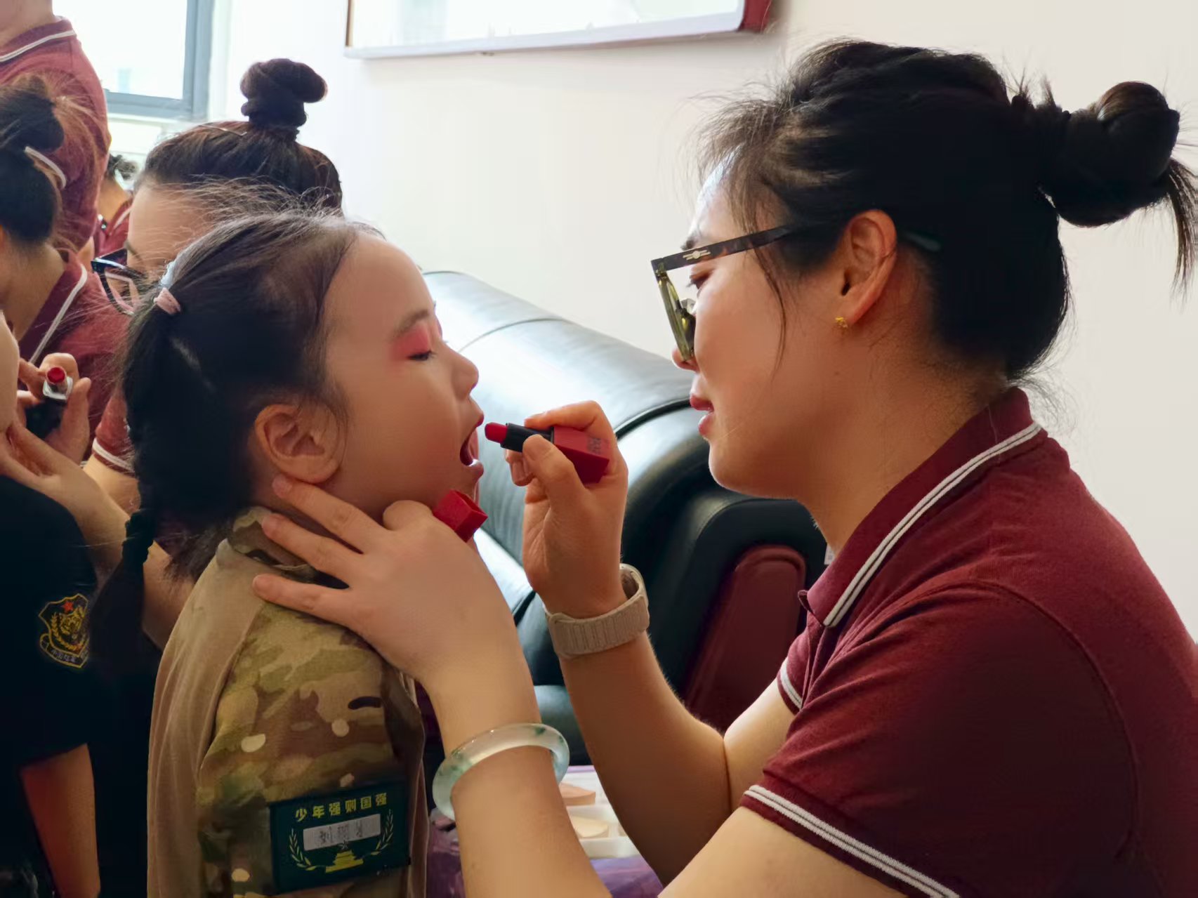 毕业典礼前,老师们早早忙碌起来,为孩子们精心化妆、编发,让每个孩子都能以最精神的模样,迎接这一重要时刻。
