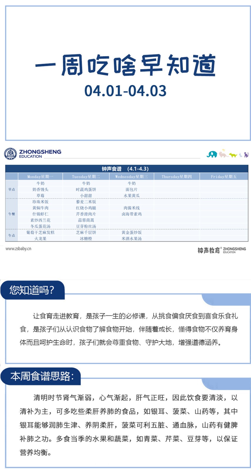 一周吃啥早知道 | 钟声红色幼儿园食谱分享