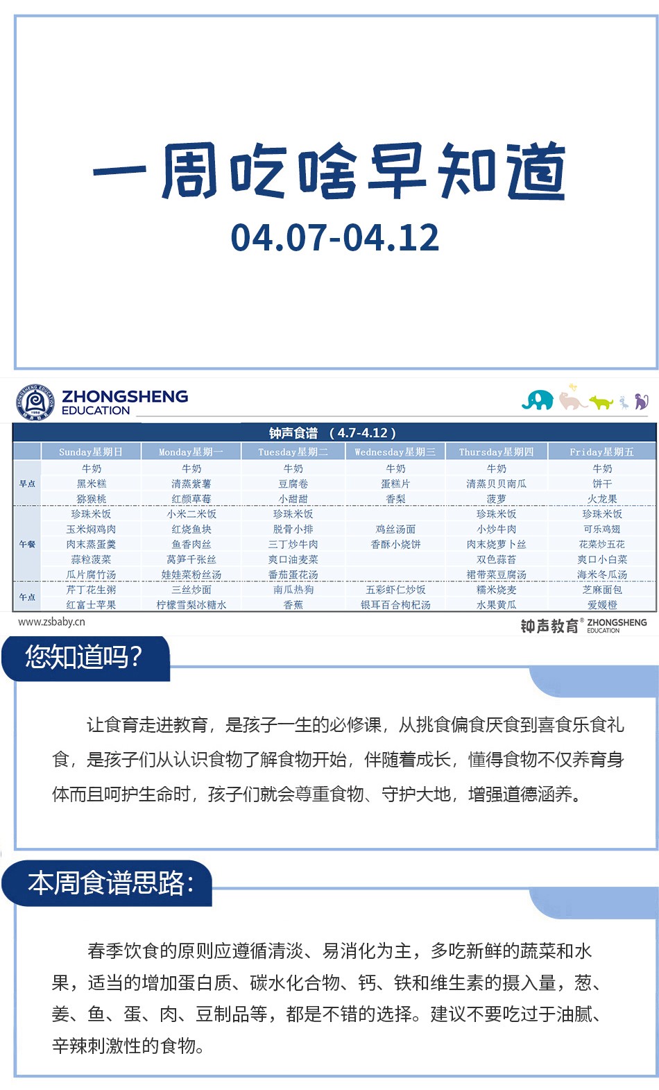 一周吃啥早知道 | 钟声红色幼儿园食谱分享