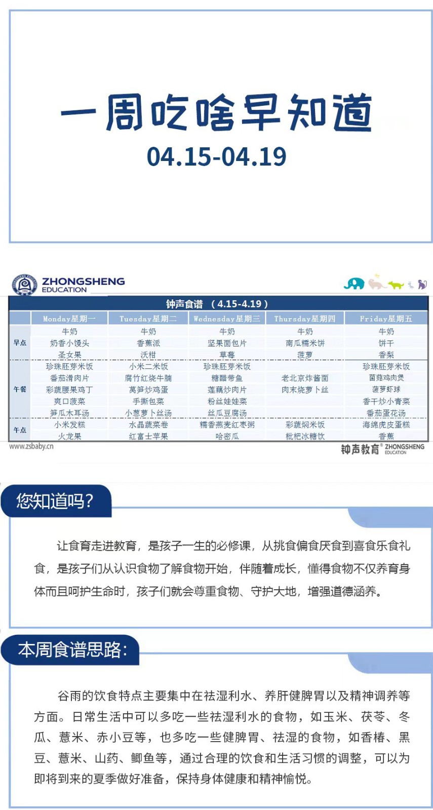 一周吃啥早知道 | 钟声红色幼儿园食谱分享