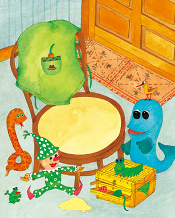 所有的玩具———狗熊、长颈鹿、没穿衣服的洋娃娃、长耳朵兔子……全都在架子上望着特兰娜,她的舞姿多美啊!