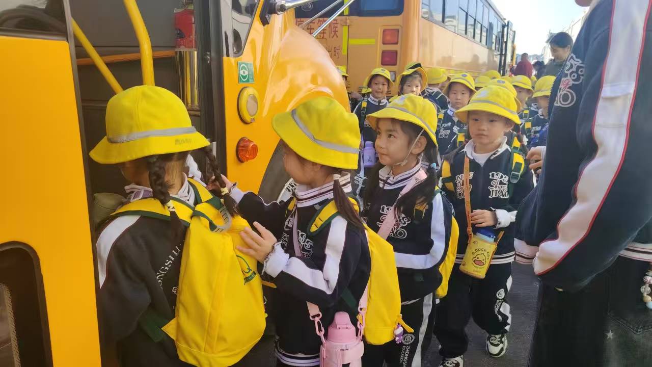 当黄色校车列队待发,钟声教育的萌娃们戴着亮黄色小帽,背着小书包,在老师的细心引导下有序踏上秋游旅程。一只只挥舞的小手,满是对未知的雀跃期待;校车上的可爱笑脸,把旅途的欢乐提前写满。