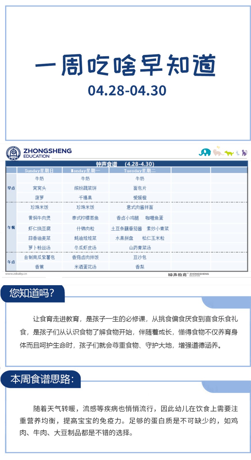 一周吃啥早知道 | 钟声红色幼儿园食谱分享