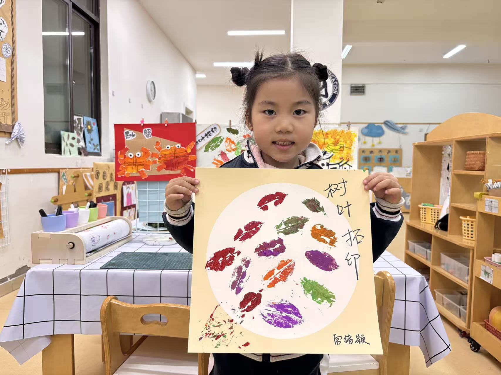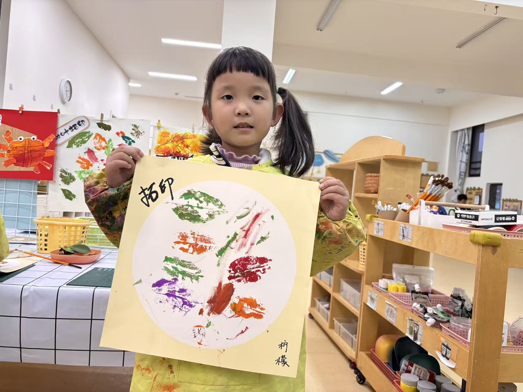 看!孩子们举着自己的拓印画,满脸骄傲。这些作品里,藏着他们对秋天的好奇与喜爱,更藏着艺术创作的快乐~