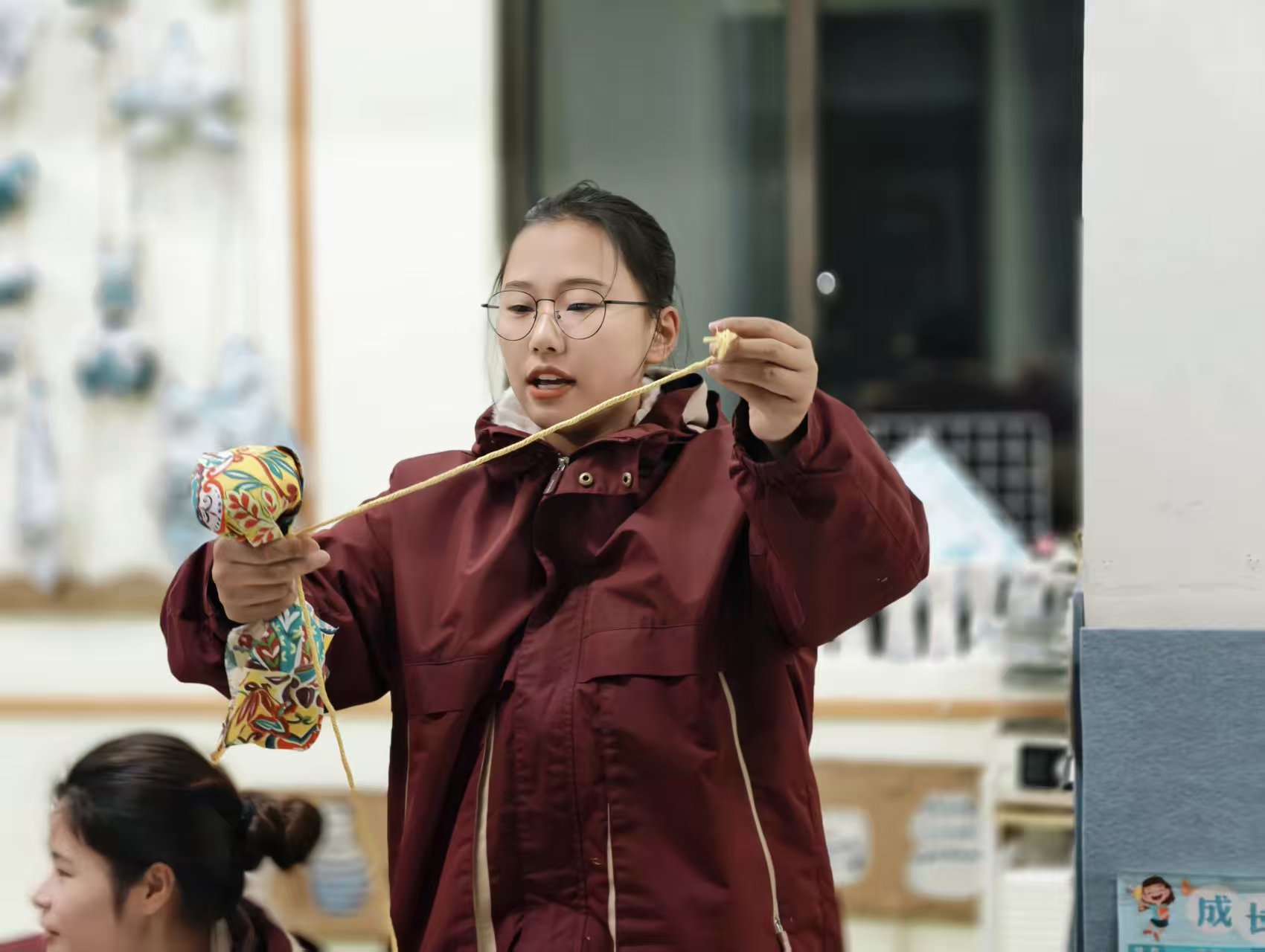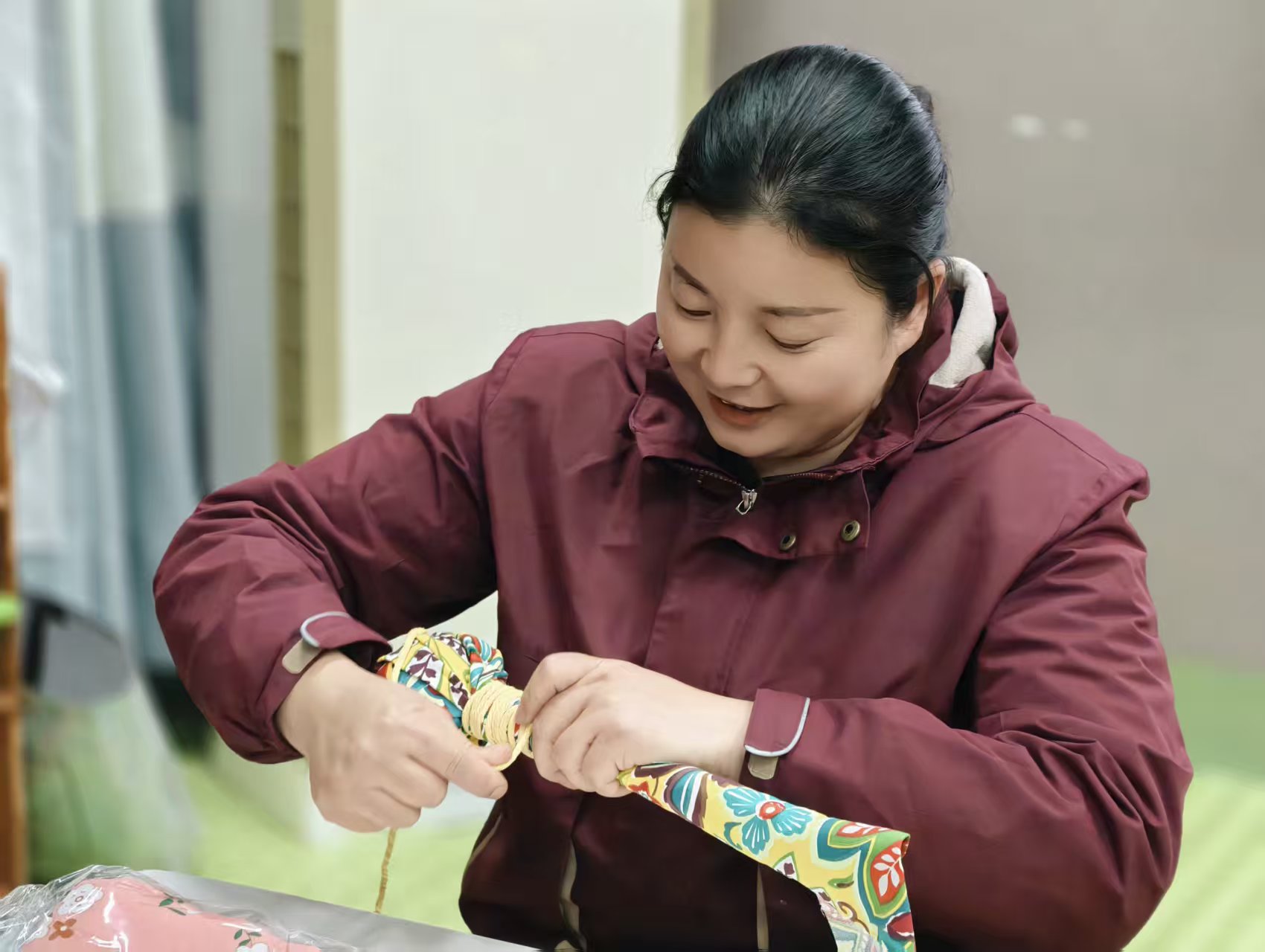 紧接着是手作艾锤的时刻:彩布裹着艾草,棉线一圈圈绕紧,指尖的温度裹着心意,准备把这份带着草木香的温暖,送给家里的长辈。穿针引线的认真里,藏着最朴素的孝心~